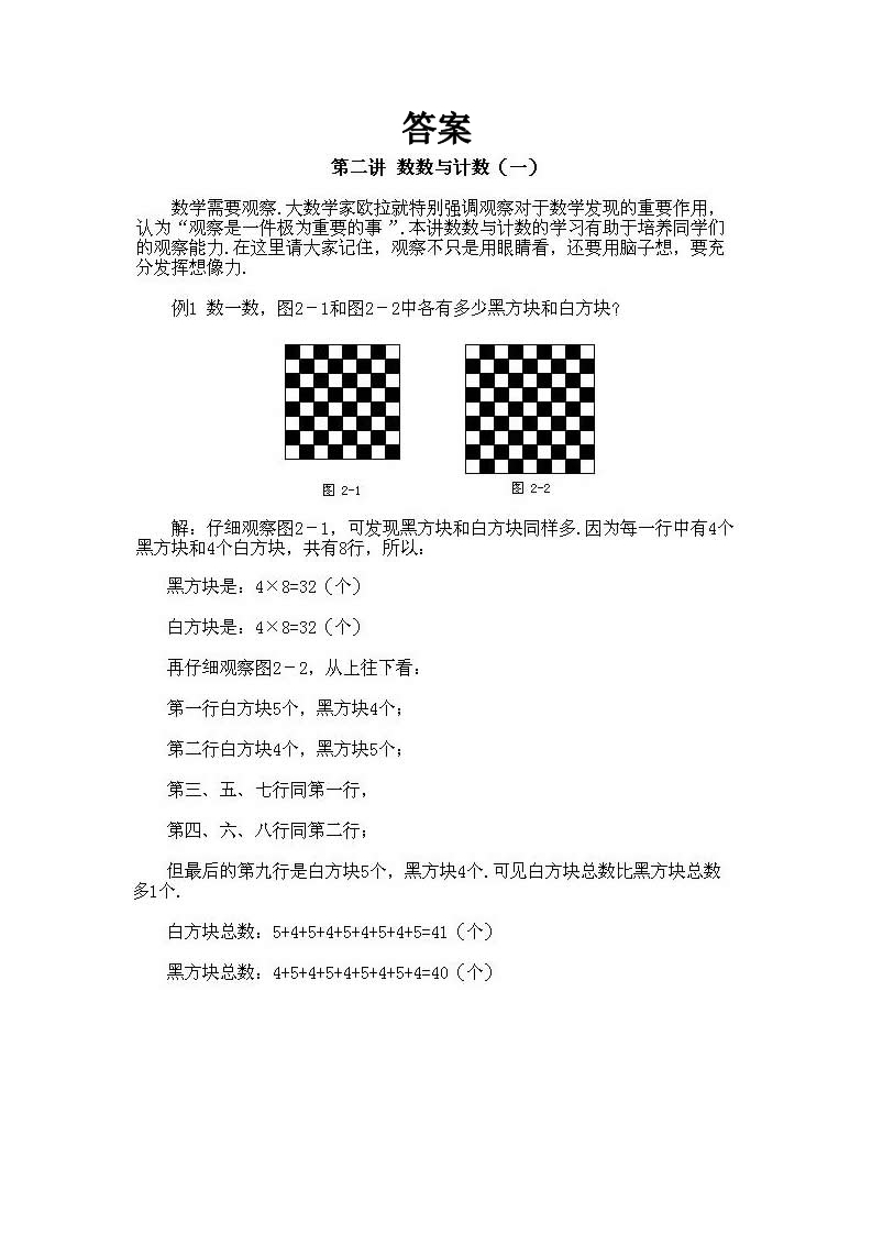 小学二年级下册数学奥数知识点讲解第2课《数数与计数2》试题附答案芝士老师1年前发布关注私信0.61MB9页516124小学二年级下册数学奥数知识点讲解第2课《数数与计数2》试题附答案此内容为免费资源,请登录后查看0积分 登录查看强烈推荐123网盘下载,非会员不限速如果下载链接失效请联系客服补发如需手机上下载打印,请用手机浏览器打开本站免费资源 第1页 / 共9页 第2页 / 共9页 第3页 / 共9页 该文档为免费文档,您可直接下载完整版进行阅读 © 版权声明 1 如果您找不到想要的资料, 点击这儿 可以查看网站使用手册! 2 可能会帮助到你: 网址导航 | 网站入门 | 获取邀请码 3 如果遇到付费才能看或下载的文章,建议您升级本站VIP会员;全站所有资源任意下,免费看。 4本站资源部分来自网络,由多位老师收集整理,如有侵犯你的权益请 联系站长,我们会第一时间进行审核删除。 5 站内资源为网友个人学习或测试研究使用,未经原版权作者许可,禁止用于任何商业途径!请在下载24小时内删除! THE END二年级资料专区 这套资料真的不错,快分享给您身边最好的朋友吧^_^点赞124 分享QQ空间微博QQ好友海报分享复制链接收藏 可以按Ctrl+D收藏此页面 HI!请登录 登录 注册 搜索 开启精彩搜索 免费内容强烈推荐123网盘下载,非会员不限速如果下载链接失效请联系客服补发如需手机上下载打印,请用手机浏览器打开本站 登录查看默写 (12)高频考点 (1)高分必刷 (0)高中语文 (5)高中英语 (7)高中生物 (5)高中数学 (12)高中地理 (5)高中历史 (5)高中化学 (5)预习 (2)音标 (1)雷锋 (0)阅读 (0)阅兵 (5)钱 (6)量词 (3)部首 (1)逻辑 (12)通用 (0) s_juan1关注 这家伙很懒,什么都没有写... 小吖麻麻关注 这家伙很懒,什么都没有写... kele关注 这家伙很懒,什么都没有写... 燕子关注 这家伙很懒,什么都没有写... 四爷关注 这家伙很懒,什么都没有写... 小豆点sun关注 这家伙很懒,什么都没有写... Mouse Dad关注 这家伙很懒,什么都没有写... kuan关注 这家伙很懒,什么都没有写... 领取5000T网盘资源 百度网盘5000T网红资源 立即领取 在手机上浏览此页面 登录没有账号?立即注册手机号或邮箱图形验证码验证码发送验证码记住登录账号密码登录 登录用户名/手机号/邮箱登录密码图形验证码记住登录找回密码 | 免密登录 登录注册已有账号,立即登录设置用户名手机号图形验证码验证码发送验证码设置密码重复密码邀请码(选填)注册已阅读并同意用户协议、隐私声明