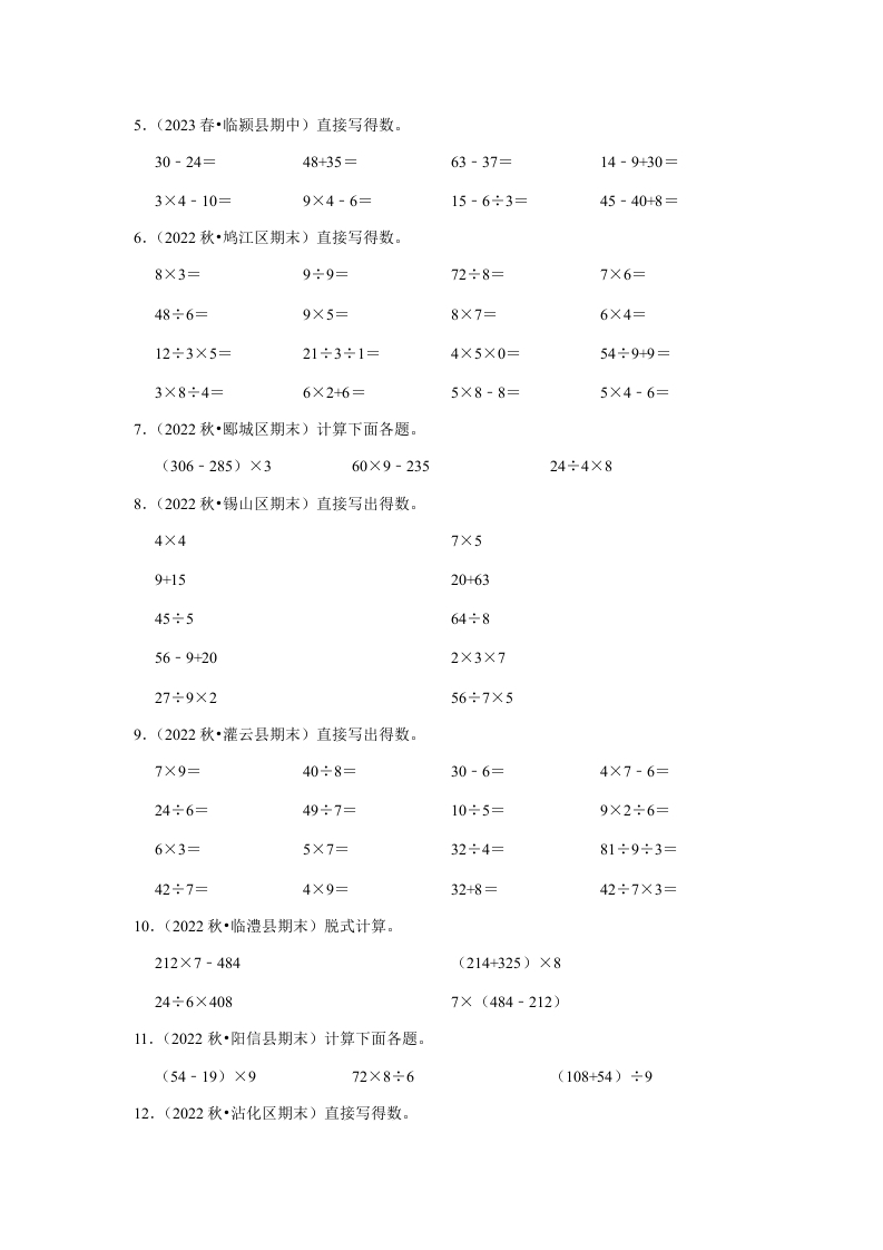 第五单元混合运算计算题二年级下册数学专项培优卷(人教版)芝士老师1年前发布关注私信0.16MB30页549180第五单元混合运算计算题二年级下册数学专项培优卷(人教版)此内容为免费资源,请登录后查看0积分 登录查看强烈推荐123网盘下载,非会员不限速如果下载链接失效请联系客服补发如需手机上下载打印,请用手机浏览器打开本站免费资源 第1页 / 共30页 第2页 / 共30页 第3页 / 共30页 该文档为免费文档,您可直接下载完整版进行阅读 © 版权声明 1 如果您找不到想要的资料, 点击这儿 可以查看网站使用手册! 2 可能会帮助到你: 网址导航 | 网站入门 | 获取邀请码 3 如果遇到付费才能看或下载的文章,建议您升级本站VIP会员;全站所有资源任意下,免费看。 4本站资源部分来自网络,由多位老师收集整理,如有侵犯你的权益请 联系站长,我们会第一时间进行审核删除。 5 站内资源为网友个人学习或测试研究使用,未经原版权作者许可,禁止用于任何商业途径!请在下载24小时内删除! THE END二年级资料专区 这套资料真的不错,快分享给您身边最好的朋友吧^_^点赞180 分享QQ空间微博QQ好友海报分享复制链接收藏 可以按Ctrl+D收藏此页面 HI!请登录 登录 注册 搜索 开启精彩搜索 免费内容强烈推荐123网盘下载,非会员不限速如果下载链接失效请联系客服补发如需手机上下载打印,请用手机浏览器打开本站 登录查看默写 (12)高频考点 (1)高分必刷 (0)高中语文 (5)高中英语 (7)高中生物 (5)高中数学 (12)高中地理 (5)高中历史 (5)高中化学 (5)预习 (2)音标 (1)雷锋 (0)阅读 (0)阅兵 (5)钱 (6)量词 (3)部首 (1)逻辑 (12)通用 (0) 小吖麻麻关注 这家伙很懒,什么都没有写... evawawawa关注 这家伙很懒,什么都没有写... s_juan1关注 这家伙很懒,什么都没有写... kele关注 这家伙很懒,什么都没有写... 燕子关注 这家伙很懒,什么都没有写... 四爷关注 这家伙很懒,什么都没有写... 小豆点sun关注 这家伙很懒,什么都没有写... Mouse Dad关注 这家伙很懒,什么都没有写... 领取5000T网盘资源 百度网盘5000T网红资源 立即领取 在手机上浏览此页面 登录没有账号?立即注册手机号或邮箱图形验证码验证码发送验证码记住登录账号密码登录 登录用户名/手机号/邮箱登录密码图形验证码记住登录找回密码 | 免密登录 登录注册已有账号,立即登录设置用户名手机号图形验证码验证码发送验证码设置密码重复密码邀请码(选填)注册已阅读并同意用户协议、隐私声明