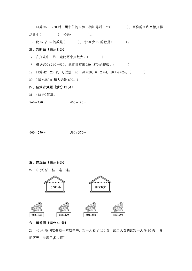 【单元AB卷】三年级上册数学分层训练A卷-第二单元万以内的加法和减法(一)(单元测试)(人教版,含答案)芝士老师1年前发布关注私信0.16MB16页541259【单元AB卷】三年级上册数学分层训练A卷-第二单元万以内的加法和减法(一)(单元测试)(人教版,含答案)此内容为免费资源,请登录后查看0积分 登录查看强烈推荐123网盘下载,非会员不限速如果下载链接失效请联系客服补发如需手机上下载打印,请用手机浏览器打开本站免费资源 第1页 / 共16页 第2页 / 共16页 第3页 / 共16页 该文档为免费文档,您可直接下载完整版进行阅读 © 版权声明 1 如果您找不到想要的资料, 点击这儿 可以查看网站使用手册! 2 可能会帮助到你: 网址导航 | 网站入门 | 获取邀请码 3 如果遇到付费才能看或下载的文章,建议您升级本站VIP会员;全站所有资源任意下,免费看。 4本站资源部分来自网络,由多位老师收集整理,如有侵犯你的权益请 联系站长,我们会第一时间进行审核删除。 5 站内资源为网友个人学习或测试研究使用,未经原版权作者许可,禁止用于任何商业途径!请在下载24小时内删除! THE END三年级资料专区 这套资料真的不错,快分享给您身边最好的朋友吧^_^点赞259 分享QQ空间微博QQ好友海报分享复制链接收藏 可以按Ctrl+D收藏此页面 HI!请登录 登录 注册 搜索 开启精彩搜索 免费内容强烈推荐123网盘下载,非会员不限速如果下载链接失效请联系客服补发如需手机上下载打印,请用手机浏览器打开本站 登录查看默写 (12)高频考点 (1)高分必刷 (0)高中语文 (5)高中英语 (7)高中生物 (5)高中数学 (12)高中地理 (5)高中历史 (5)高中化学 (5)预习 (2)音标 (1)雷锋 (0)阅读 (0)阅兵 (5)钱 (6)量词 (3)部首 (1)逻辑 (12)通用 (0) 小吖麻麻关注 这家伙很懒,什么都没有写... evawawawa关注 这家伙很懒,什么都没有写... s_juan1关注 这家伙很懒,什么都没有写... kele关注 这家伙很懒,什么都没有写... 燕子关注 这家伙很懒,什么都没有写... 四爷关注 这家伙很懒,什么都没有写... 小豆点sun关注 这家伙很懒,什么都没有写... Mouse Dad关注 这家伙很懒,什么都没有写... 领取5000T网盘资源 百度网盘5000T网红资源 立即领取 在手机上浏览此页面 登录没有账号?立即注册手机号或邮箱图形验证码验证码发送验证码记住登录账号密码登录 登录用户名/手机号/邮箱登录密码图形验证码记住登录找回密码 | 免密登录 登录注册已有账号,立即登录设置用户名手机号图形验证码验证码发送验证码设置密码重复密码邀请码(选填)注册已阅读并同意用户协议、隐私声明