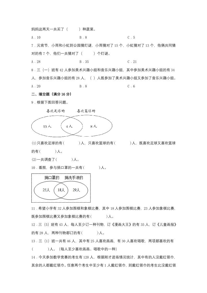 【单元AB卷】三年级上册数学分层训练A卷-第九单元数学广角—集合(单元测试)(人教版,含答案)芝士老师1年前发布关注私信0.21MB15页709179【单元AB卷】三年级上册数学分层训练A卷-第九单元数学广角—集合(单元测试)(人教版,含答案)此内容为免费资源,请登录后查看0积分 登录查看强烈推荐123网盘下载,非会员不限速如果下载链接失效请联系客服补发如需手机上下载打印,请用手机浏览器打开本站免费资源 第1页 / 共15页 第2页 / 共15页 第3页 / 共15页 该文档为免费文档,您可直接下载完整版进行阅读 © 版权声明 1 如果您找不到想要的资料, 点击这儿 可以查看网站使用手册! 2 可能会帮助到你: 网址导航 | 网站入门 | 获取邀请码 3 如果遇到付费才能看或下载的文章,建议您升级本站VIP会员;全站所有资源任意下,免费看。 4本站资源部分来自网络,由多位老师收集整理,如有侵犯你的权益请 联系站长,我们会第一时间进行审核删除。 5 站内资源为网友个人学习或测试研究使用,未经原版权作者许可,禁止用于任何商业途径!请在下载24小时内删除! THE END三年级资料专区 这套资料真的不错,快分享给您身边最好的朋友吧^_^点赞179 分享QQ空间微博QQ好友海报分享复制链接收藏 可以按Ctrl+D收藏此页面 HI!请登录 登录 注册 搜索 开启精彩搜索 免费内容强烈推荐123网盘下载,非会员不限速如果下载链接失效请联系客服补发如需手机上下载打印,请用手机浏览器打开本站 登录查看默写 (12)高频考点 (1)高分必刷 (0)高中语文 (5)高中英语 (7)高中生物 (5)高中数学 (12)高中地理 (5)高中历史 (5)高中化学 (5)预习 (2)音标 (1)雷锋 (0)阅读 (0)阅兵 (5)钱 (6)量词 (3)部首 (1)逻辑 (12)通用 (0) 小吖麻麻关注 这家伙很懒,什么都没有写... evawawawa关注 这家伙很懒,什么都没有写... s_juan1关注 这家伙很懒,什么都没有写... kele关注 这家伙很懒,什么都没有写... 燕子关注 这家伙很懒,什么都没有写... 四爷关注 这家伙很懒,什么都没有写... 小豆点sun关注 这家伙很懒,什么都没有写... Mouse Dad关注 这家伙很懒,什么都没有写... 领取5000T网盘资源 百度网盘5000T网红资源 立即领取 在手机上浏览此页面 登录没有账号?立即注册手机号或邮箱图形验证码验证码发送验证码记住登录账号密码登录 登录用户名/手机号/邮箱登录密码图形验证码记住登录找回密码 | 免密登录 登录注册已有账号,立即登录设置用户名手机号图形验证码验证码发送验证码设置密码重复密码邀请码(选填)注册已阅读并同意用户协议、隐私声明