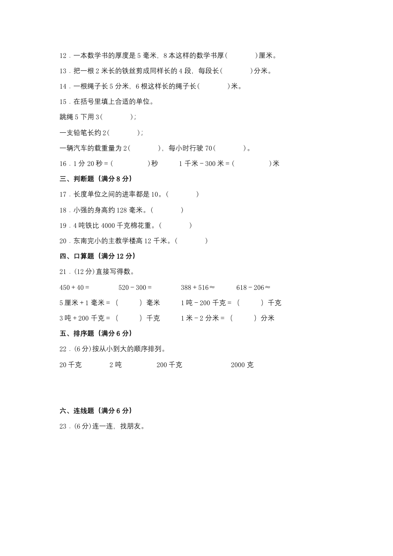 【单元AB卷】三年级上册数学分层训练A卷-第三单元测量(单元测试)(人教版,含答案)芝士老师1年前发布关注私信0.15MB16页599143【单元AB卷】三年级上册数学分层训练A卷-第三单元测量(单元测试)(人教版,含答案)此内容为免费资源,请登录后查看0积分 登录查看强烈推荐123网盘下载,非会员不限速如果下载链接失效请联系客服补发如需手机上下载打印,请用手机浏览器打开本站免费资源 第1页 / 共16页 第2页 / 共16页 第3页 / 共16页 该文档为免费文档,您可直接下载完整版进行阅读 © 版权声明 1 如果您找不到想要的资料, 点击这儿 可以查看网站使用手册! 2 可能会帮助到你: 网址导航 | 网站入门 | 获取邀请码 3 如果遇到付费才能看或下载的文章,建议您升级本站VIP会员;全站所有资源任意下,免费看。 4本站资源部分来自网络,由多位老师收集整理,如有侵犯你的权益请 联系站长,我们会第一时间进行审核删除。 5 站内资源为网友个人学习或测试研究使用,未经原版权作者许可,禁止用于任何商业途径!请在下载24小时内删除! THE END三年级资料专区 这套资料真的不错,快分享给您身边最好的朋友吧^_^点赞143 分享QQ空间微博QQ好友海报分享复制链接收藏 可以按Ctrl+D收藏此页面 HI!请登录 登录 注册 搜索 开启精彩搜索 免费内容强烈推荐123网盘下载,非会员不限速如果下载链接失效请联系客服补发如需手机上下载打印,请用手机浏览器打开本站 登录查看默写 (12)高频考点 (1)高分必刷 (0)高中语文 (5)高中英语 (7)高中生物 (5)高中数学 (12)高中地理 (5)高中历史 (5)高中化学 (5)预习 (2)音标 (1)雷锋 (0)阅读 (0)阅兵 (5)钱 (6)量词 (3)部首 (1)逻辑 (12)通用 (0) 小吖麻麻关注 这家伙很懒,什么都没有写... evawawawa关注 这家伙很懒,什么都没有写... s_juan1关注 这家伙很懒,什么都没有写... kele关注 这家伙很懒,什么都没有写... 燕子关注 这家伙很懒,什么都没有写... 四爷关注 这家伙很懒,什么都没有写... 小豆点sun关注 这家伙很懒,什么都没有写... Mouse Dad关注 这家伙很懒,什么都没有写... 领取5000T网盘资源 百度网盘5000T网红资源 立即领取 在手机上浏览此页面 登录没有账号?立即注册手机号或邮箱图形验证码验证码发送验证码记住登录账号密码登录 登录用户名/手机号/邮箱登录密码图形验证码记住登录找回密码 | 免密登录 登录注册已有账号,立即登录设置用户名手机号图形验证码验证码发送验证码设置密码重复密码邀请码(选填)注册已阅读并同意用户协议、隐私声明