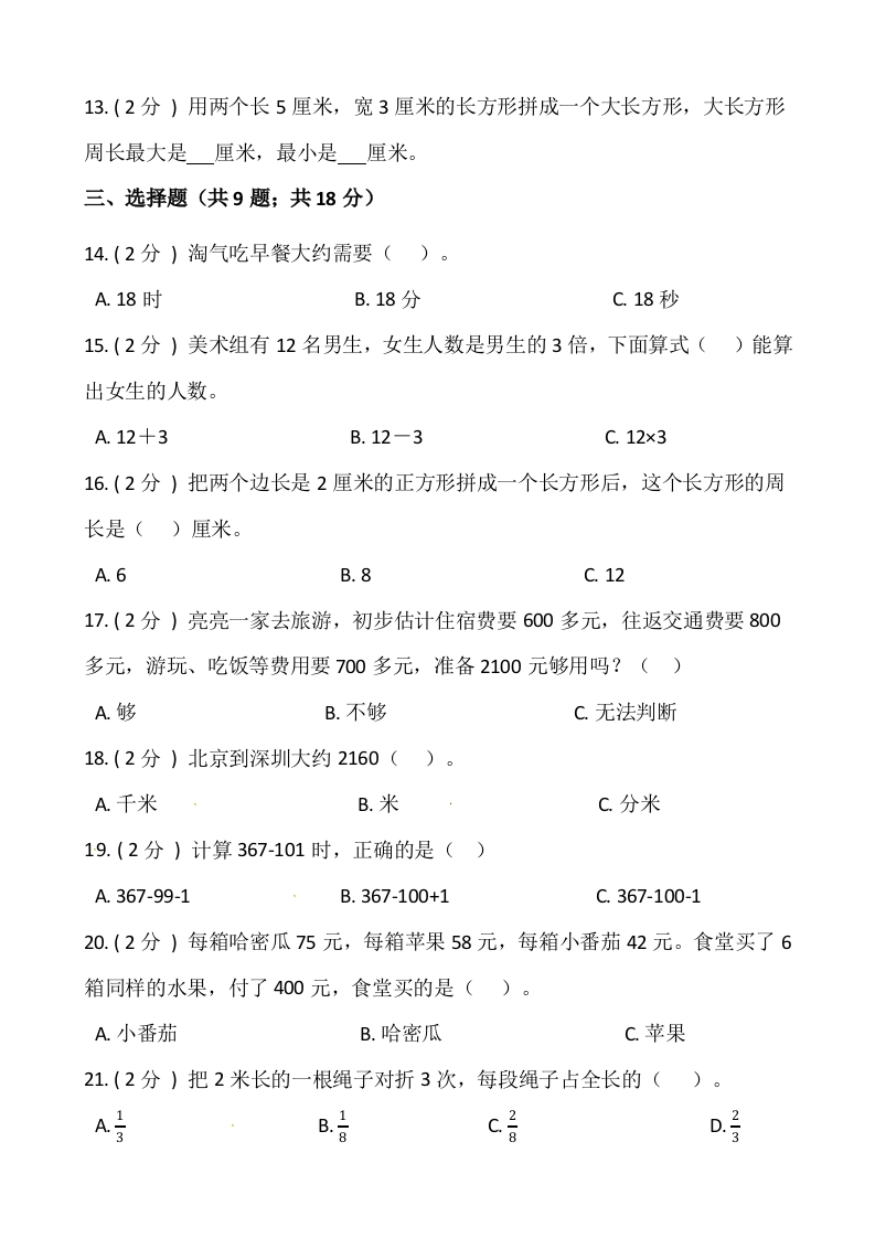 小学数学三年级上册-期末测试卷(一)含答案-人教版芝士老师1年前发布关注私信0.11MB9页663277小学数学三年级上册-期末测试卷(一)含答案-人教版此内容为免费资源,请登录后查看0积分 登录查看强烈推荐123网盘下载,非会员不限速如果下载链接失效请联系客服补发如需手机上下载打印,请用手机浏览器打开本站免费资源 第1页 / 共9页 第2页 / 共9页 第3页 / 共9页 该文档为免费文档,您可直接下载完整版进行阅读 © 版权声明 1 如果您找不到想要的资料, 点击这儿 可以查看网站使用手册! 2 可能会帮助到你: 网址导航 | 网站入门 | 获取邀请码 3 如果遇到付费才能看或下载的文章,建议您升级本站VIP会员;全站所有资源任意下,免费看。 4本站资源部分来自网络,由多位老师收集整理,如有侵犯你的权益请 联系站长,我们会第一时间进行审核删除。 5 站内资源为网友个人学习或测试研究使用,未经原版权作者许可,禁止用于任何商业途径!请在下载24小时内删除! THE END三年级资料专区 这套资料真的不错,快分享给您身边最好的朋友吧^_^点赞277 分享QQ空间微博QQ好友海报分享复制链接收藏 可以按Ctrl+D收藏此页面 HI!请登录 登录 注册 搜索 开启精彩搜索 免费内容强烈推荐123网盘下载,非会员不限速如果下载链接失效请联系客服补发如需手机上下载打印,请用手机浏览器打开本站 登录查看默写 (12)高频考点 (1)高分必刷 (0)高中语文 (5)高中英语 (7)高中生物 (5)高中数学 (12)高中地理 (5)高中历史 (5)高中化学 (5)预习 (2)音标 (1)雷锋 (0)阅读 (0)阅兵 (5)钱 (6)量词 (3)部首 (1)逻辑 (12)通用 (0) 小吖麻麻关注 这家伙很懒,什么都没有写... s_juan1关注 这家伙很懒,什么都没有写... kuan关注 这家伙很懒,什么都没有写... evawawawa关注 这家伙很懒,什么都没有写... kele关注 这家伙很懒,什么都没有写... 燕子关注 这家伙很懒,什么都没有写... 四爷关注 这家伙很懒,什么都没有写... 小豆点sun关注 这家伙很懒,什么都没有写... 领取5000T网盘资源 百度网盘5000T网红资源 立即领取 在手机上浏览此页面 登录没有账号?立即注册手机号或邮箱图形验证码验证码发送验证码记住登录账号密码登录 登录用户名/手机号/邮箱登录密码图形验证码记住登录找回密码 | 免密登录 登录注册已有账号,立即登录设置用户名手机号图形验证码验证码发送验证码设置密码重复密码邀请码(选填)注册已阅读并同意用户协议、隐私声明