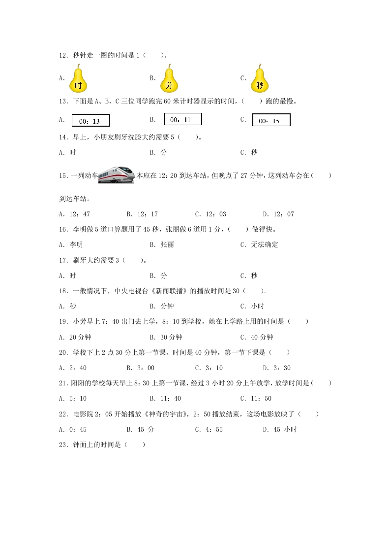 【题型专项特训】三年级数学上册第一单元时、分、秒专项训练——选择题(人教版,含答案)芝士老师1年前发布关注私信73.50KB5页539278【题型专项特训】三年级数学上册第一单元时、分、秒专项训练——选择题(人教版,含答案)此内容为免费资源,请登录后查看0积分 登录查看强烈推荐123网盘下载,非会员不限速如果下载链接失效请联系客服补发如需手机上下载打印,请用手机浏览器打开本站免费资源 第1页 / 共5页 第2页 / 共5页 第3页 / 共5页 该文档为免费文档,您可直接下载完整版进行阅读 © 版权声明 1 如果您找不到想要的资料, 点击这儿 可以查看网站使用手册! 2 可能会帮助到你: 网址导航 | 网站入门 | 获取邀请码 3 如果遇到付费才能看或下载的文章,建议您升级本站VIP会员;全站所有资源任意下,免费看。 4本站资源部分来自网络,由多位老师收集整理,如有侵犯你的权益请 联系站长,我们会第一时间进行审核删除。 5 站内资源为网友个人学习或测试研究使用,未经原版权作者许可,禁止用于任何商业途径!请在下载24小时内删除! THE END三年级资料专区 这套资料真的不错,快分享给您身边最好的朋友吧^_^点赞278 分享QQ空间微博QQ好友海报分享复制链接收藏 可以按Ctrl+D收藏此页面 HI!请登录 登录 注册 搜索 开启精彩搜索 免费内容强烈推荐123网盘下载,非会员不限速如果下载链接失效请联系客服补发如需手机上下载打印,请用手机浏览器打开本站 登录查看默写 (12)高频考点 (1)高分必刷 (0)高中语文 (5)高中英语 (7)高中生物 (5)高中数学 (12)高中地理 (5)高中历史 (5)高中化学 (5)预习 (2)音标 (1)雷锋 (0)阅读 (0)阅兵 (5)钱 (6)量词 (3)部首 (1)逻辑 (12)通用 (0) 小吖麻麻关注 这家伙很懒,什么都没有写... evawawawa关注 这家伙很懒,什么都没有写... s_juan1关注 这家伙很懒,什么都没有写... kele关注 这家伙很懒,什么都没有写... 燕子关注 这家伙很懒,什么都没有写... 四爷关注 这家伙很懒,什么都没有写... 小豆点sun关注 这家伙很懒,什么都没有写... Mouse Dad关注 这家伙很懒,什么都没有写... 领取5000T网盘资源 百度网盘5000T网红资源 立即领取 在手机上浏览此页面 登录没有账号?立即注册手机号或邮箱图形验证码验证码发送验证码记住登录账号密码登录 登录用户名/手机号/邮箱登录密码图形验证码记住登录找回密码 | 免密登录 登录注册已有账号,立即登录设置用户名手机号图形验证码验证码发送验证码设置密码重复密码邀请码(选填)注册已阅读并同意用户协议、隐私声明