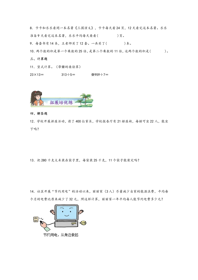 4.2两位数乘两位数(不进位)-三年级数学下册课时练分层作业(人教版)芝士老师1年前发布关注私信0.51MB9页7991294.2两位数乘两位数(不进位)-三年级数学下册课时练分层作业(人教版)此内容为免费资源,请登录后查看0积分 登录查看强烈推荐123网盘下载,非会员不限速如果下载链接失效请联系客服补发如需手机上下载打印,请用手机浏览器打开本站免费资源 第1页 / 共9页 第2页 / 共9页 第3页 / 共9页 该文档为免费文档,您可直接下载完整版进行阅读 © 版权声明 1 如果您找不到想要的资料, 点击这儿 可以查看网站使用手册! 2 可能会帮助到你: 网址导航 | 网站入门 | 获取邀请码 3 如果遇到付费才能看或下载的文章,建议您升级本站VIP会员;全站所有资源任意下,免费看。 4本站资源部分来自网络,由多位老师收集整理,如有侵犯你的权益请 联系站长,我们会第一时间进行审核删除。 5 站内资源为网友个人学习或测试研究使用,未经原版权作者许可,禁止用于任何商业途径!请在下载24小时内删除! THE END三年级资料专区 这套资料真的不错,快分享给您身边最好的朋友吧^_^点赞129 分享QQ空间微博QQ好友海报分享复制链接收藏 可以按Ctrl+D收藏此页面 HI!请登录 登录 注册 搜索 开启精彩搜索 免费内容强烈推荐123网盘下载,非会员不限速如果下载链接失效请联系客服补发如需手机上下载打印,请用手机浏览器打开本站 登录查看默写 (12)高频考点 (1)高分必刷 (0)高中语文 (5)高中英语 (7)高中生物 (5)高中数学 (12)高中地理 (5)高中历史 (5)高中化学 (5)预习 (2)音标 (1)雷锋 (0)阅读 (0)阅兵 (5)钱 (6)量词 (3)部首 (1)逻辑 (12)通用 (0) 小吖麻麻关注 这家伙很懒,什么都没有写... evawawawa关注 这家伙很懒,什么都没有写... s_juan1关注 这家伙很懒,什么都没有写... kele关注 这家伙很懒,什么都没有写... 燕子关注 这家伙很懒,什么都没有写... 四爷关注 这家伙很懒,什么都没有写... 小豆点sun关注 这家伙很懒,什么都没有写... Mouse Dad关注 这家伙很懒,什么都没有写... 领取5000T网盘资源 百度网盘5000T网红资源 立即领取 在手机上浏览此页面 登录没有账号?立即注册手机号或邮箱图形验证码验证码发送验证码记住登录账号密码登录 登录用户名/手机号/邮箱登录密码图形验证码记住登录找回密码 | 免密登录 登录注册已有账号,立即登录设置用户名手机号图形验证码验证码发送验证码设置密码重复密码邀请码(选填)注册已阅读并同意用户协议、隐私声明