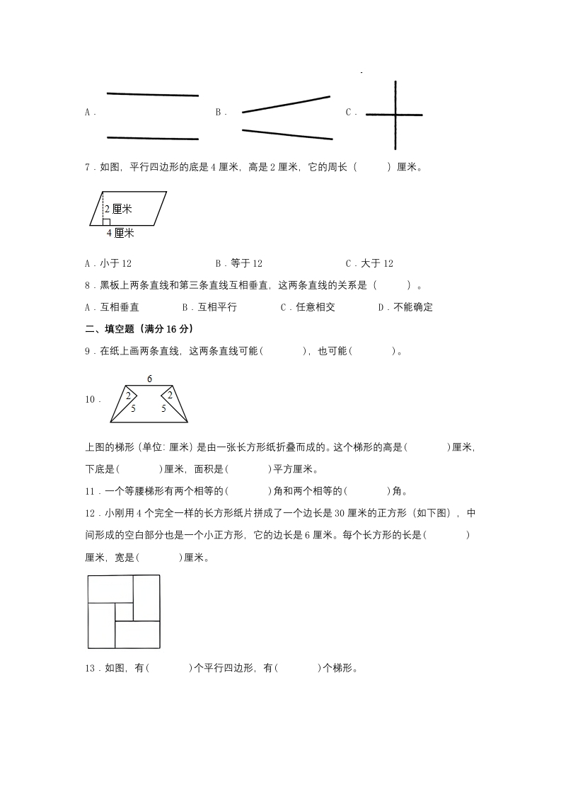 【单元AB卷】四年级上册数学分层训练B卷-第五单元平行四边形和梯形(单元测试)(人教版,含答案)芝士老师1年前发布关注私信0.38MB17页556197【单元AB卷】四年级上册数学分层训练B卷-第五单元平行四边形和梯形(单元测试)(人教版,含答案)此内容为免费资源,请登录后查看芝士0 登录查看强烈推荐123网盘下载,非会员不限速如果下载链接失效请联系客服补发如需手机上下载打印,请用手机浏览器打开本站免费资源 第1页 / 共17页 第2页 / 共17页 第3页 / 共17页 该文档为免费文档,您可直接下载完整版进行阅读 © 版权声明 1 如果您找不到想要的资料, 点击这儿 可以查看网站使用手册! 2 可能会帮助到你: 网址导航 | 网站入门 | 获取邀请码 3 如果遇到付费才能看或下载的文章,建议您升级本站VIP会员;全站所有资源任意下,免费看。 4本站资源部分来自网络,由多位老师收集整理,如有侵犯你的权益请 联系站长,我们会第一时间进行审核删除。 5 站内资源为网友个人学习或测试研究使用,未经原版权作者许可,禁止用于任何商业途径!请在下载24小时内删除! THE END四年级资料专区 这套资料真的不错,快分享给您身边最好的朋友吧^_^点赞197 分享QQ空间微博QQ好友海报分享复制链接收藏 可以按Ctrl+D收藏此页面 HI!请登录 登录 注册 搜索 开启精彩搜索 免费内容强烈推荐123网盘下载,非会员不限速如果下载链接失效请联系客服补发如需手机上下载打印,请用手机浏览器打开本站 登录查看默写 (12)高频考点 (1)高分必刷 (0)高中语文 (5)高中英语 (7)高中生物 (5)高中数学 (12)高中地理 (5)高中历史 (5)高中化学 (5)预习 (2)音标 (1)雷锋 (0)阅读 (0)阅兵 (5)钱 (6)量词 (3)部首 (1)逻辑 (12)通用 (0) 小吖麻麻关注 这家伙很懒,什么都没有写... s_juan1关注 这家伙很懒,什么都没有写... kele关注 这家伙很懒,什么都没有写... 燕子关注 这家伙很懒,什么都没有写... 四爷关注 这家伙很懒,什么都没有写... 小豆点sun关注 这家伙很懒,什么都没有写... Mouse Dad关注 这家伙很懒,什么都没有写... kuan关注 这家伙很懒,什么都没有写... 领取5000T网盘资源 百度网盘5000T网红资源 立即领取 在手机上浏览此页面 登录没有账号?立即注册手机号或邮箱图形验证码验证码发送验证码记住登录账号密码登录 登录用户名/手机号/邮箱登录密码图形验证码记住登录找回密码 | 免密登录 登录注册已有账号,立即登录设置用户名手机号图形验证码验证码发送验证码设置密码重复密码邀请码(选填)注册已阅读并同意用户协议、隐私声明
