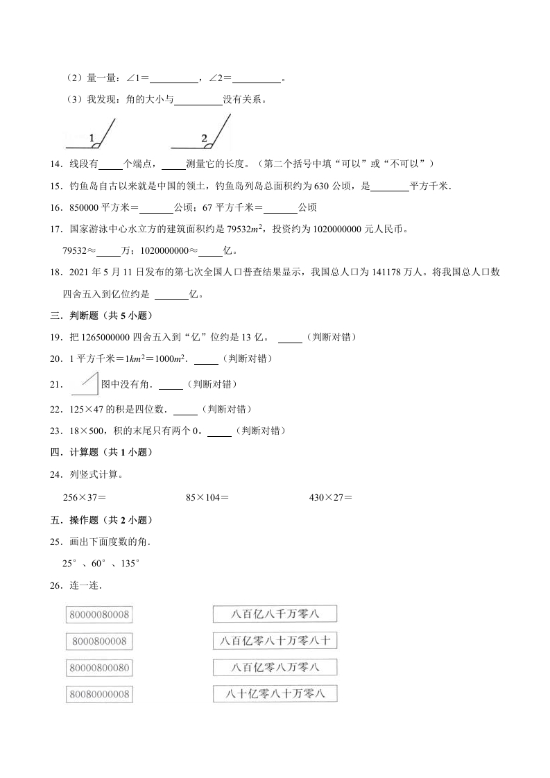 【精品】期中试卷(试题)【重点卷】-数学四年级上册-人教版(含解析)芝士老师1年前发布关注私信85KB12页511113【精品】期中试卷(试题)【重点卷】-数学四年级上册-人教版(含解析)此内容为免费资源,请登录后查看芝士0 登录查看强烈推荐123网盘下载,非会员不限速如果下载链接失效请联系客服补发如需手机上下载打印,请用手机浏览器打开本站免费资源 第1页 / 共12页 第2页 / 共12页 第3页 / 共12页 该文档为免费文档,您可直接下载完整版进行阅读 © 版权声明 1 如果您找不到想要的资料, 点击这儿 可以查看网站使用手册! 2 可能会帮助到你: 网址导航 | 网站入门 | 获取邀请码 3 如果遇到付费才能看或下载的文章,建议您升级本站VIP会员;全站所有资源任意下,免费看。 4本站资源部分来自网络,由多位老师收集整理,如有侵犯你的权益请 联系站长,我们会第一时间进行审核删除。 5 站内资源为网友个人学习或测试研究使用,未经原版权作者许可,禁止用于任何商业途径!请在下载24小时内删除! THE END四年级资料专区 这套资料真的不错,快分享给您身边最好的朋友吧^_^点赞113 分享QQ空间微博QQ好友海报分享复制链接收藏 可以按Ctrl+D收藏此页面 HI!请登录 登录 注册 搜索 开启精彩搜索 免费内容强烈推荐123网盘下载,非会员不限速如果下载链接失效请联系客服补发如需手机上下载打印,请用手机浏览器打开本站 登录查看默写 (12)高频考点 (1)高分必刷 (0)高中语文 (5)高中英语 (7)高中生物 (5)高中数学 (12)高中地理 (5)高中历史 (5)高中化学 (5)预习 (2)音标 (1)雷锋 (0)阅读 (0)阅兵 (5)钱 (6)量词 (3)部首 (1)逻辑 (12)通用 (0) 小吖麻麻关注 这家伙很懒,什么都没有写... s_juan1关注 这家伙很懒,什么都没有写... kele关注 这家伙很懒,什么都没有写... 燕子关注 这家伙很懒,什么都没有写... 四爷关注 这家伙很懒,什么都没有写... 小豆点sun关注 这家伙很懒,什么都没有写... Mouse Dad关注 这家伙很懒,什么都没有写... kuan关注 这家伙很懒,什么都没有写... 领取5000T网盘资源 百度网盘5000T网红资源 立即领取 在手机上浏览此页面 登录没有账号?立即注册手机号或邮箱图形验证码验证码发送验证码记住登录账号密码登录 登录用户名/手机号/邮箱登录密码图形验证码记住登录找回密码 | 免密登录 登录注册已有账号,立即登录设置用户名手机号图形验证码验证码发送验证码设置密码重复密码邀请码(选填)注册已阅读并同意用户协议、隐私声明