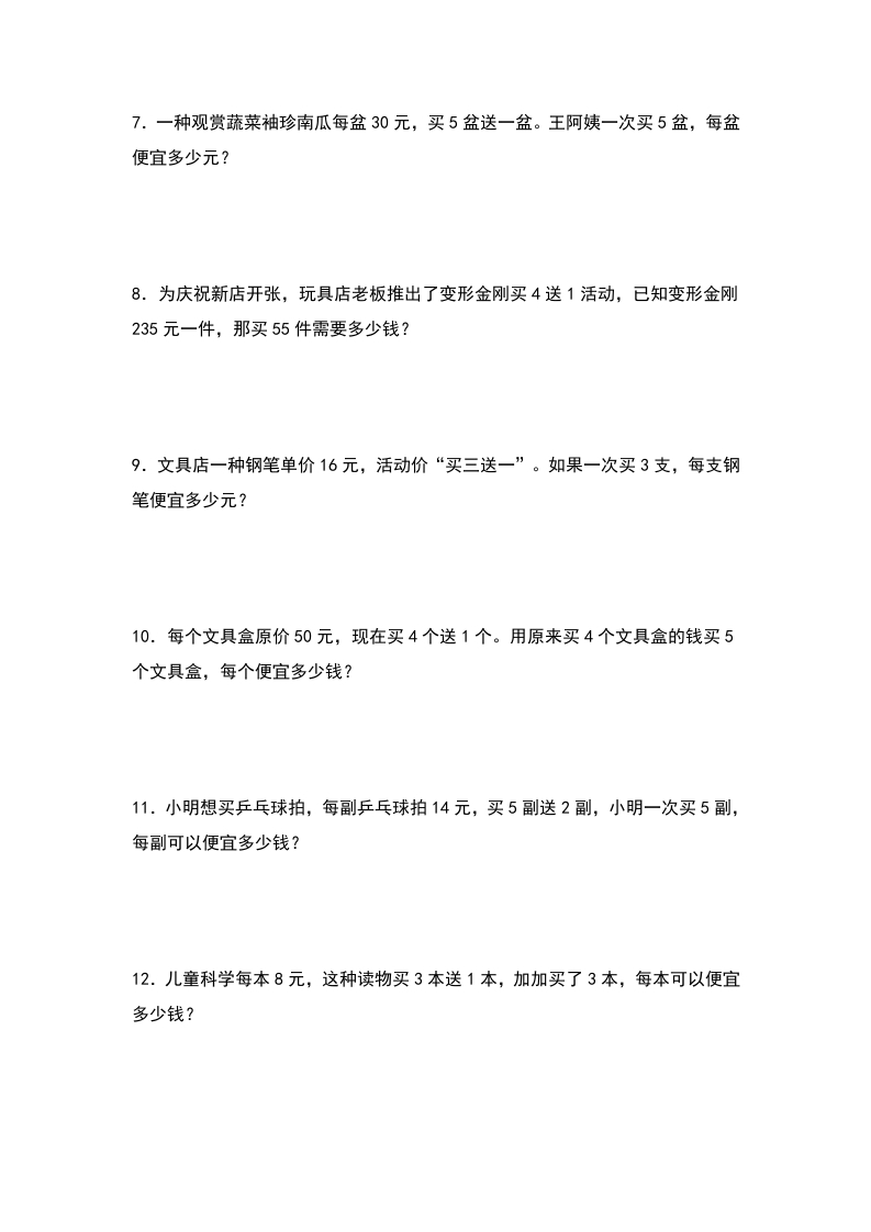 四年级数学上册典型例题系列之第4单元:“买几送几”促销问题专项练习(原卷版)人教版芝士老师1年前发布关注私信40.39KB5页698240四年级数学上册典型例题系列之第4单元:“买几送几”促销问题专项练习(原卷版)人教版此内容为免费资源,请登录后查看芝士0 登录查看强烈推荐123网盘下载,非会员不限速如果下载链接失效请联系客服补发如需手机上下载打印,请用手机浏览器打开本站免费资源 第1页 / 共5页 第2页 / 共5页 第3页 / 共5页 该文档为免费文档,您可直接下载完整版进行阅读 © 版权声明 1 如果您找不到想要的资料, 点击这儿 可以查看网站使用手册! 2 可能会帮助到你: 网址导航 | 网站入门 | 获取邀请码 3 如果遇到付费才能看或下载的文章,建议您升级本站VIP会员;全站所有资源任意下,免费看。 4本站资源部分来自网络,由多位老师收集整理,如有侵犯你的权益请 联系站长,我们会第一时间进行审核删除。 5 站内资源为网友个人学习或测试研究使用,未经原版权作者许可,禁止用于任何商业途径!请在下载24小时内删除! THE END四年级资料专区 这套资料真的不错,快分享给您身边最好的朋友吧^_^点赞240 分享QQ空间微博QQ好友海报分享复制链接收藏 可以按Ctrl+D收藏此页面 HI!请登录 登录 注册 搜索 开启精彩搜索 免费内容强烈推荐123网盘下载,非会员不限速如果下载链接失效请联系客服补发如需手机上下载打印,请用手机浏览器打开本站 登录查看默写 (12)高频考点 (1)高分必刷 (0)高中语文 (5)高中英语 (7)高中生物 (5)高中数学 (12)高中地理 (5)高中历史 (5)高中化学 (5)预习 (2)音标 (1)雷锋 (0)阅读 (0)阅兵 (5)钱 (6)量词 (3)部首 (1)逻辑 (12)通用 (0) 小吖麻麻关注 这家伙很懒,什么都没有写... s_juan1关注 这家伙很懒,什么都没有写... kuan关注 这家伙很懒,什么都没有写... evawawawa关注 这家伙很懒,什么都没有写... kele关注 这家伙很懒,什么都没有写... 燕子关注 这家伙很懒,什么都没有写... 四爷关注 这家伙很懒,什么都没有写... 小豆点sun关注 这家伙很懒,什么都没有写... 领取5000T网盘资源 百度网盘5000T网红资源 立即领取 在手机上浏览此页面 登录没有账号?立即注册手机号或邮箱图形验证码验证码发送验证码记住登录账号密码登录 登录用户名/手机号/邮箱登录密码图形验证码记住登录找回密码 | 免密登录 登录注册已有账号,立即登录设置用户名手机号图形验证码验证码发送验证码设置密码重复密码邀请码(选填)注册已阅读并同意用户协议、隐私声明