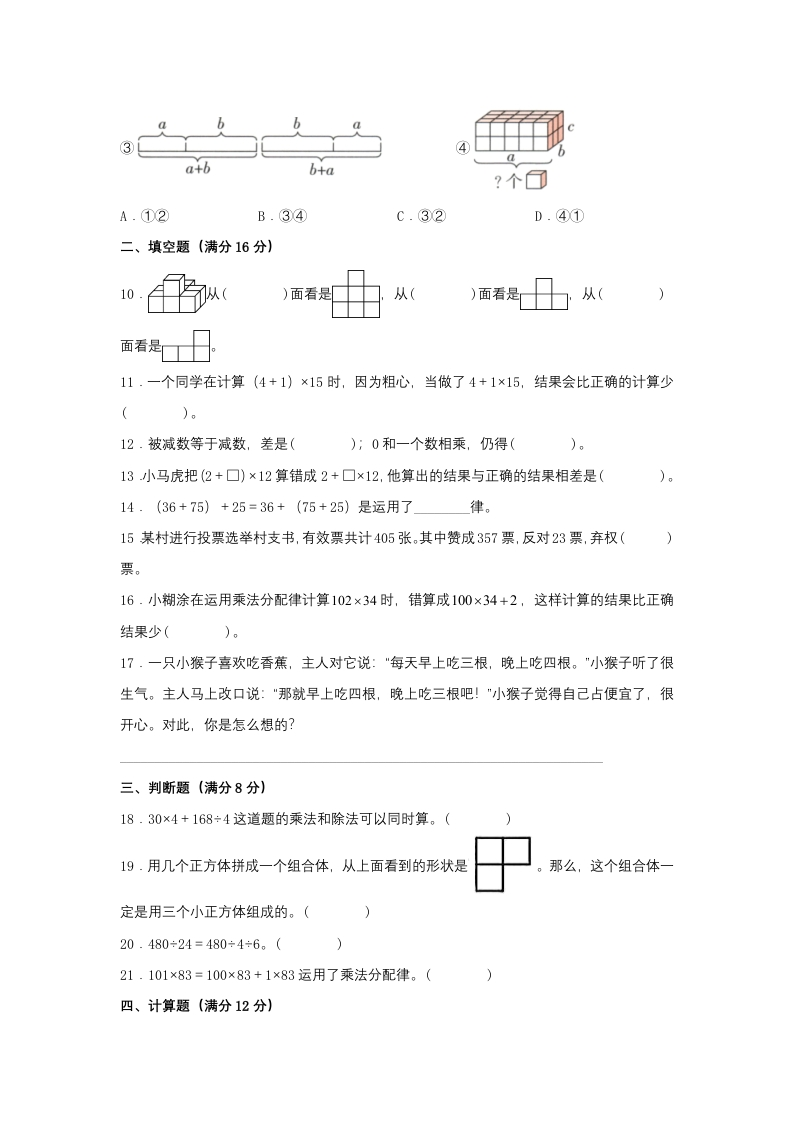 【分层训练】四年级下册数学单元测试-第三单元运算定律(培优卷)人教版(含答案)芝士老师1年前发布关注私信0.12MB9页722203【分层训练】四年级下册数学单元测试-第三单元运算定律(培优卷)人教版(含答案)此内容为免费资源,请登录后查看芝士0 登录查看强烈推荐123网盘下载,非会员不限速如果下载链接失效请联系客服补发如需手机上下载打印,请用手机浏览器打开本站免费资源 第1页 / 共9页 第2页 / 共9页 第3页 / 共9页 该文档为免费文档,您可直接下载完整版进行阅读 © 版权声明 1 如果您找不到想要的资料, 点击这儿 可以查看网站使用手册! 2 可能会帮助到你: 网址导航 | 网站入门 | 获取邀请码 3 如果遇到付费才能看或下载的文章,建议您升级本站VIP会员;全站所有资源任意下,免费看。 4本站资源部分来自网络,由多位老师收集整理,如有侵犯你的权益请 联系站长,我们会第一时间进行审核删除。 5 站内资源为网友个人学习或测试研究使用,未经原版权作者许可,禁止用于任何商业途径!请在下载24小时内删除! THE END四年级资料专区 这套资料真的不错,快分享给您身边最好的朋友吧^_^点赞203 分享QQ空间微博QQ好友海报分享复制链接收藏 可以按Ctrl+D收藏此页面 HI!请登录 登录 注册 搜索 开启精彩搜索 免费内容强烈推荐123网盘下载,非会员不限速如果下载链接失效请联系客服补发如需手机上下载打印,请用手机浏览器打开本站 登录查看默写 (12)高频考点 (1)高分必刷 (0)高中语文 (5)高中英语 (7)高中生物 (5)高中数学 (12)高中地理 (5)高中历史 (5)高中化学 (5)预习 (2)音标 (1)雷锋 (0)阅读 (0)阅兵 (5)钱 (6)量词 (3)部首 (1)逻辑 (12)通用 (0) 小吖麻麻关注 这家伙很懒,什么都没有写... evawawawa关注 这家伙很懒,什么都没有写... s_juan1关注 这家伙很懒,什么都没有写... kele关注 这家伙很懒,什么都没有写... 燕子关注 这家伙很懒,什么都没有写... 四爷关注 这家伙很懒,什么都没有写... 小豆点sun关注 这家伙很懒,什么都没有写... Mouse Dad关注 这家伙很懒,什么都没有写... 领取5000T网盘资源 百度网盘5000T网红资源 立即领取 在手机上浏览此页面 登录没有账号?立即注册手机号或邮箱图形验证码验证码发送验证码记住登录账号密码登录 登录用户名/手机号/邮箱登录密码图形验证码记住登录找回密码 | 免密登录 登录注册已有账号,立即登录设置用户名手机号图形验证码验证码发送验证码设置密码重复密码邀请码(选填)注册已阅读并同意用户协议、隐私声明