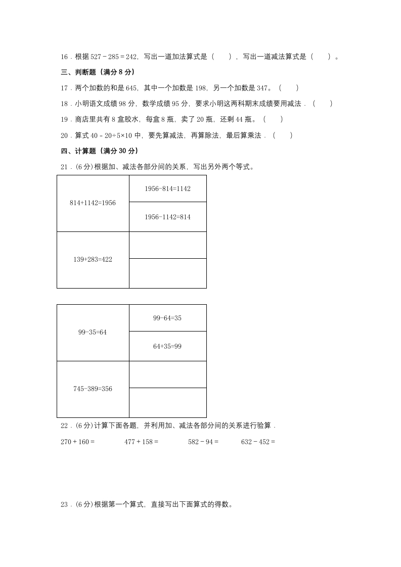 【分层训练】四年级下册数学单元测试-第一单元四则运算(基础卷)人教版(含答案)芝士老师1年前发布关注私信0.37MB9页779210【分层训练】四年级下册数学单元测试-第一单元四则运算(基础卷)人教版(含答案)此内容为免费资源,请登录后查看芝士0 登录查看强烈推荐123网盘下载,非会员不限速如果下载链接失效请联系客服补发如需手机上下载打印,请用手机浏览器打开本站免费资源 第1页 / 共9页 第2页 / 共9页 第3页 / 共9页 该文档为免费文档,您可直接下载完整版进行阅读 © 版权声明 1 如果您找不到想要的资料, 点击这儿 可以查看网站使用手册! 2 可能会帮助到你: 网址导航 | 网站入门 | 获取邀请码 3 如果遇到付费才能看或下载的文章,建议您升级本站VIP会员;全站所有资源任意下,免费看。 4本站资源部分来自网络,由多位老师收集整理,如有侵犯你的权益请 联系站长,我们会第一时间进行审核删除。 5 站内资源为网友个人学习或测试研究使用,未经原版权作者许可,禁止用于任何商业途径!请在下载24小时内删除! THE END四年级资料专区 这套资料真的不错,快分享给您身边最好的朋友吧^_^点赞210 分享QQ空间微博QQ好友海报分享复制链接收藏 可以按Ctrl+D收藏此页面 HI!请登录 登录 注册 搜索 开启精彩搜索 免费内容强烈推荐123网盘下载,非会员不限速如果下载链接失效请联系客服补发如需手机上下载打印,请用手机浏览器打开本站 登录查看默写 (12)高频考点 (1)高分必刷 (0)高中语文 (5)高中英语 (7)高中生物 (5)高中数学 (12)高中地理 (5)高中历史 (5)高中化学 (5)预习 (2)音标 (1)雷锋 (0)阅读 (0)阅兵 (5)钱 (6)量词 (3)部首 (1)逻辑 (12)通用 (0) 小吖麻麻关注 这家伙很懒,什么都没有写... kele关注 这家伙很懒,什么都没有写... 燕子关注 这家伙很懒,什么都没有写... 四爷关注 这家伙很懒,什么都没有写... 小豆点sun关注 这家伙很懒,什么都没有写... Mouse Dad关注 这家伙很懒,什么都没有写... kuan关注 这家伙很懒,什么都没有写... Wxx08关注 这家伙很懒,什么都没有写... 领取5000T网盘资源 百度网盘5000T网红资源 立即领取 在手机上浏览此页面 登录没有账号?立即注册手机号或邮箱图形验证码验证码发送验证码记住登录账号密码登录 登录用户名/手机号/邮箱登录密码图形验证码记住登录找回密码 | 免密登录 登录注册已有账号,立即登录设置用户名手机号图形验证码验证码发送验证码设置密码重复密码邀请码(选填)注册已阅读并同意用户协议、隐私声明