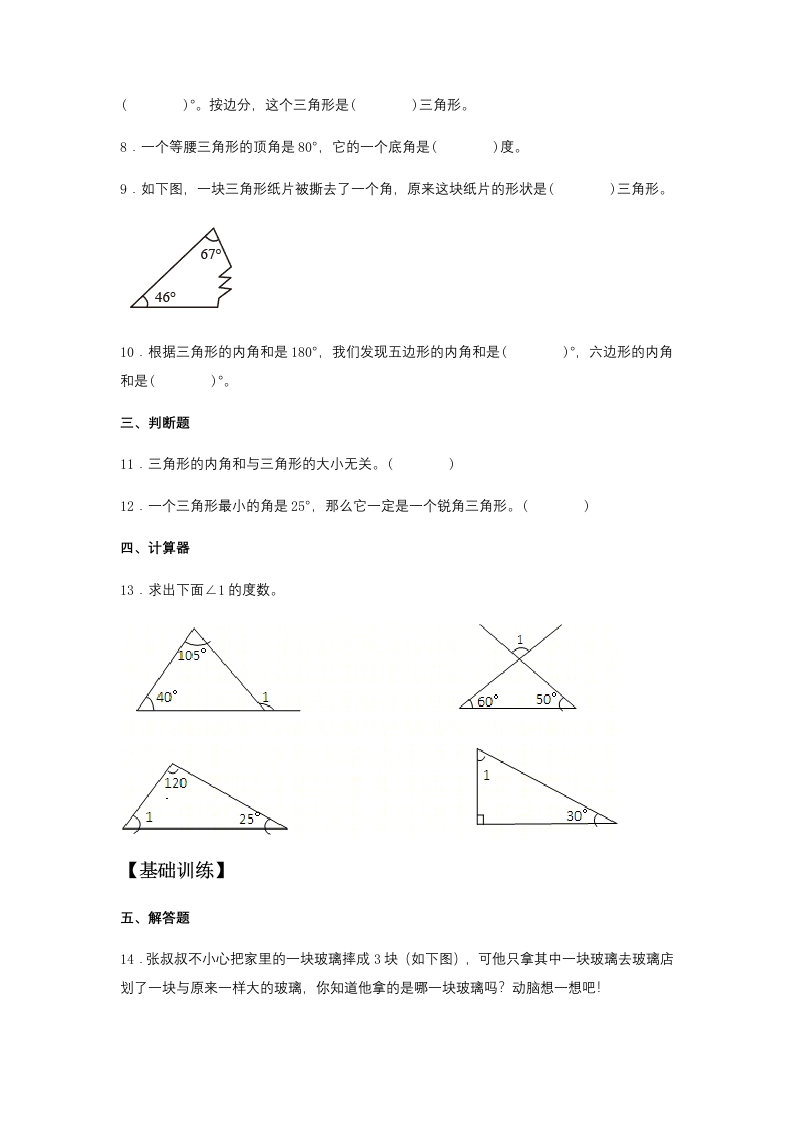 【分层训练】5.3三角形的内角和四年级下册数学同步练习人教版(含答案)芝士老师1年前发布关注私信85.28KB4页538161【分层训练】5.3三角形的内角和四年级下册数学同步练习人教版(含答案)此内容为免费资源,请登录后查看芝士0 登录查看强烈推荐123网盘下载,非会员不限速如果下载链接失效请联系客服补发如需手机上下载打印,请用手机浏览器打开本站免费资源 第1页 / 共4页 第2页 / 共4页 第3页 / 共4页 该文档为免费文档,您可直接下载完整版进行阅读 © 版权声明 1 如果您找不到想要的资料, 点击这儿 可以查看网站使用手册! 2 可能会帮助到你: 网址导航 | 网站入门 | 获取邀请码 3 如果遇到付费才能看或下载的文章,建议您升级本站VIP会员;全站所有资源任意下,免费看。 4本站资源部分来自网络,由多位老师收集整理,如有侵犯你的权益请 联系站长,我们会第一时间进行审核删除。 5 站内资源为网友个人学习或测试研究使用,未经原版权作者许可,禁止用于任何商业途径!请在下载24小时内删除! THE END四年级资料专区 这套资料真的不错,快分享给您身边最好的朋友吧^_^点赞161 分享QQ空间微博QQ好友海报分享复制链接收藏 可以按Ctrl+D收藏此页面 HI!请登录 登录 注册 搜索 开启精彩搜索 免费内容强烈推荐123网盘下载,非会员不限速如果下载链接失效请联系客服补发如需手机上下载打印,请用手机浏览器打开本站 登录查看默写 (12)高频考点 (1)高分必刷 (0)高中语文 (5)高中英语 (7)高中生物 (5)高中数学 (12)高中地理 (5)高中历史 (5)高中化学 (5)预习 (2)音标 (1)雷锋 (0)阅读 (0)阅兵 (5)钱 (6)量词 (3)部首 (1)逻辑 (12)通用 (0) 小吖麻麻关注 这家伙很懒,什么都没有写... s_juan1关注 这家伙很懒,什么都没有写... kuan关注 这家伙很懒,什么都没有写... evawawawa关注 这家伙很懒,什么都没有写... kele关注 这家伙很懒,什么都没有写... 燕子关注 这家伙很懒,什么都没有写... 四爷关注 这家伙很懒,什么都没有写... 小豆点sun关注 这家伙很懒,什么都没有写... 领取5000T网盘资源 百度网盘5000T网红资源 立即领取 在手机上浏览此页面 登录没有账号?立即注册手机号或邮箱图形验证码验证码发送验证码记住登录账号密码登录 登录用户名/手机号/邮箱登录密码图形验证码记住登录找回密码 | 免密登录 登录注册已有账号,立即登录设置用户名手机号图形验证码验证码发送验证码设置密码重复密码邀请码(选填)注册已阅读并同意用户协议、隐私声明