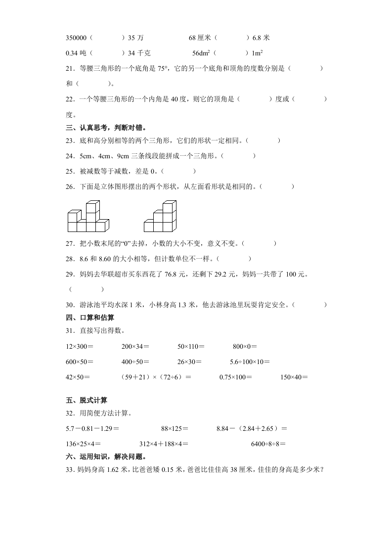 人教版四年级数学下册期末全真模拟卷(四)(含答案)芝士老师1年前发布关注私信0.18MB10页798165人教版四年级数学下册期末全真模拟卷(四)(含答案)此内容为免费资源,请登录后查看芝士0 登录查看强烈推荐123网盘下载,非会员不限速如果下载链接失效请联系客服补发如需手机上下载打印,请用手机浏览器打开本站免费资源 第1页 / 共10页 第2页 / 共10页 第3页 / 共10页 该文档为免费文档,您可直接下载完整版进行阅读 © 版权声明 1 如果您找不到想要的资料, 点击这儿 可以查看网站使用手册! 2 可能会帮助到你: 网址导航 | 网站入门 | 获取邀请码 3 如果遇到付费才能看或下载的文章,建议您升级本站VIP会员;全站所有资源任意下,免费看。 4本站资源部分来自网络,由多位老师收集整理,如有侵犯你的权益请 联系站长,我们会第一时间进行审核删除。 5 站内资源为网友个人学习或测试研究使用,未经原版权作者许可,禁止用于任何商业途径!请在下载24小时内删除! THE END四年级资料专区 这套资料真的不错,快分享给您身边最好的朋友吧^_^点赞165 分享QQ空间微博QQ好友海报分享复制链接收藏 可以按Ctrl+D收藏此页面 HI!请登录 登录 注册 搜索 开启精彩搜索 免费内容强烈推荐123网盘下载,非会员不限速如果下载链接失效请联系客服补发如需手机上下载打印,请用手机浏览器打开本站 登录查看默写 (12)高频考点 (1)高分必刷 (0)高中语文 (5)高中英语 (7)高中生物 (5)高中数学 (12)高中地理 (5)高中历史 (5)高中化学 (5)预习 (2)音标 (1)雷锋 (0)阅读 (0)阅兵 (5)钱 (6)量词 (3)部首 (1)逻辑 (12)通用 (0) s_juan1关注 这家伙很懒,什么都没有写... 小吖麻麻关注 这家伙很懒,什么都没有写... kele关注 这家伙很懒,什么都没有写... 燕子关注 这家伙很懒,什么都没有写... 四爷关注 这家伙很懒,什么都没有写... 小豆点sun关注 这家伙很懒,什么都没有写... Mouse Dad关注 这家伙很懒,什么都没有写... kuan关注 这家伙很懒,什么都没有写... 领取5000T网盘资源 百度网盘5000T网红资源 立即领取 在手机上浏览此页面 登录没有账号?立即注册手机号或邮箱图形验证码验证码发送验证码记住登录账号密码登录 登录用户名/手机号/邮箱登录密码图形验证码记住登录找回密码 | 免密登录 登录注册已有账号,立即登录设置用户名手机号图形验证码验证码发送验证码设置密码重复密码邀请码(选填)注册已阅读并同意用户协议、隐私声明