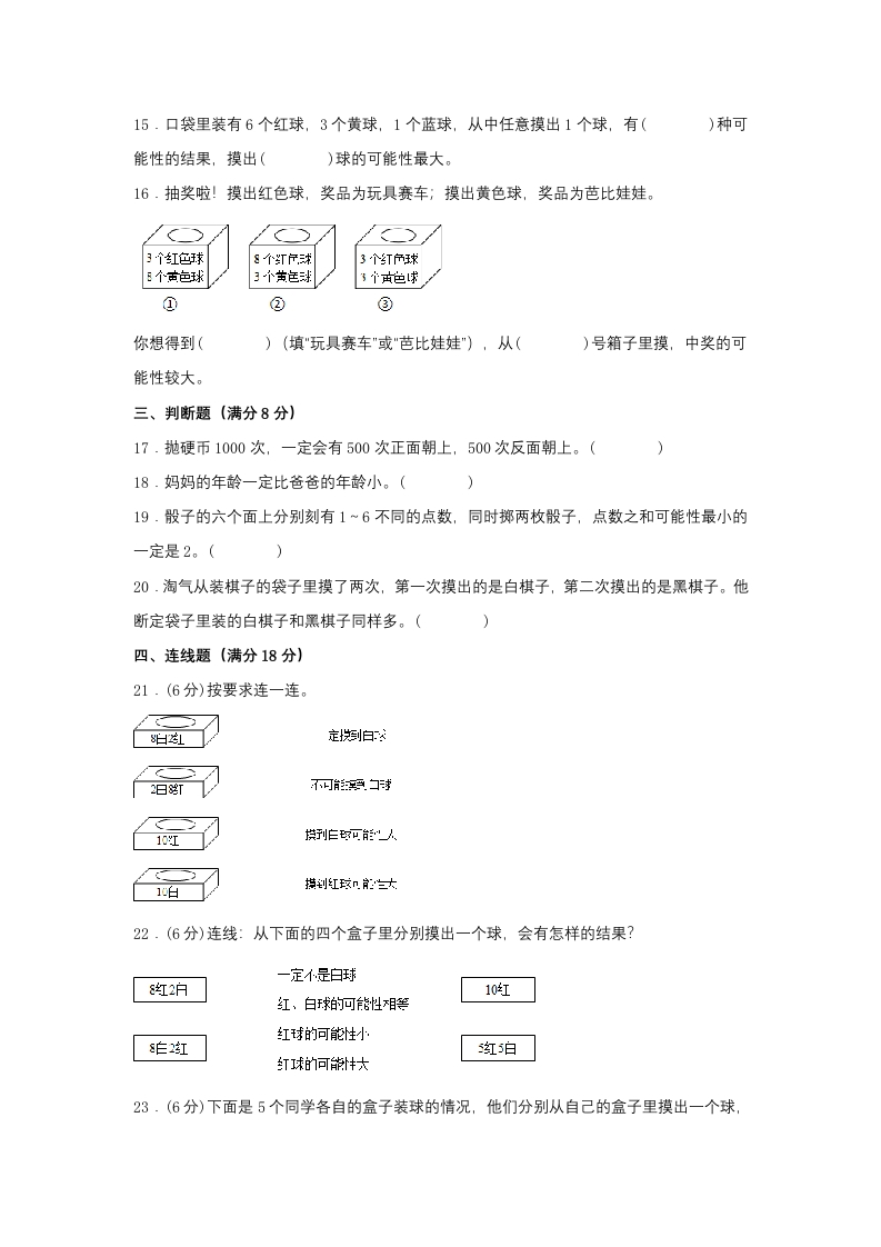 【单元AB卷】五年级上册数学分层训练A卷-第四单元可能性(单元测试)(人教版,含答案)芝士老师1年前发布关注私信0.30MB21页522276【单元AB卷】五年级上册数学分层训练A卷-第四单元可能性(单元测试)(人教版,含答案)此内容为免费资源,请登录后查看芝士0 登录查看强烈推荐123网盘下载,非会员不限速如果下载链接失效请联系客服补发如需手机上下载打印,请用手机浏览器打开本站免费资源 第1页 / 共21页 第2页 / 共21页 第3页 / 共21页 该文档为免费文档,您可直接下载完整版进行阅读 © 版权声明 1 如果您找不到想要的资料, 点击这儿 可以查看网站使用手册! 2 可能会帮助到你: 网址导航 | 网站入门 | 获取邀请码 3 如果遇到付费才能看或下载的文章,建议您升级本站VIP会员;全站所有资源任意下,免费看。 4本站资源部分来自网络,由多位老师收集整理,如有侵犯你的权益请 联系站长,我们会第一时间进行审核删除。 5 站内资源为网友个人学习或测试研究使用,未经原版权作者许可,禁止用于任何商业途径!请在下载24小时内删除! THE END五年级资料专区 这套资料真的不错,快分享给您身边最好的朋友吧^_^点赞276 分享QQ空间微博QQ好友海报分享复制链接收藏 可以按Ctrl+D收藏此页面 HI!请登录 登录 注册 搜索 开启精彩搜索 免费内容强烈推荐123网盘下载,非会员不限速如果下载链接失效请联系客服补发如需手机上下载打印,请用手机浏览器打开本站 登录查看默写 (12)高频考点 (1)高分必刷 (0)高中语文 (5)高中英语 (7)高中生物 (5)高中数学 (12)高中地理 (5)高中历史 (5)高中化学 (5)预习 (2)音标 (1)雷锋 (0)阅读 (0)阅兵 (5)钱 (6)量词 (3)部首 (1)逻辑 (12)通用 (0) 小吖麻麻关注 这家伙很懒,什么都没有写... s_juan1关注 这家伙很懒,什么都没有写... kuan关注 这家伙很懒,什么都没有写... evawawawa关注 这家伙很懒,什么都没有写... kele关注 这家伙很懒,什么都没有写... 燕子关注 这家伙很懒,什么都没有写... 四爷关注 这家伙很懒,什么都没有写... 小豆点sun关注 这家伙很懒,什么都没有写... 领取5000T网盘资源 百度网盘5000T网红资源 立即领取 在手机上浏览此页面 登录没有账号?立即注册手机号或邮箱图形验证码验证码发送验证码记住登录账号密码登录 登录用户名/手机号/邮箱登录密码图形验证码记住登录找回密码 | 免密登录 登录注册已有账号,立即登录设置用户名手机号图形验证码验证码发送验证码设置密码重复密码邀请码(选填)注册已阅读并同意用户协议、隐私声明