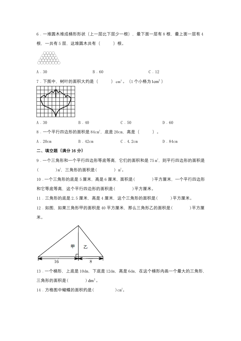 【单元AB卷】五年级上册数学分层训练B卷-第六单元多边形的面积(单元测试)(人教版,含答案)芝士老师1年前发布关注私信0.90MB16页791184【单元AB卷】五年级上册数学分层训练B卷-第六单元多边形的面积(单元测试)(人教版,含答案)此内容为免费资源,请登录后查看芝士0 登录查看强烈推荐123网盘下载,非会员不限速如果下载链接失效请联系客服补发如需手机上下载打印,请用手机浏览器打开本站免费资源 第1页 / 共16页 第2页 / 共16页 第3页 / 共16页 该文档为免费文档,您可直接下载完整版进行阅读 © 版权声明 1 如果您找不到想要的资料, 点击这儿 可以查看网站使用手册! 2 可能会帮助到你: 网址导航 | 网站入门 | 获取邀请码 3 如果遇到付费才能看或下载的文章,建议您升级本站VIP会员;全站所有资源任意下,免费看。 4本站资源部分来自网络,由多位老师收集整理,如有侵犯你的权益请 联系站长,我们会第一时间进行审核删除。 5 站内资源为网友个人学习或测试研究使用,未经原版权作者许可,禁止用于任何商业途径!请在下载24小时内删除! THE END五年级资料专区 这套资料真的不错,快分享给您身边最好的朋友吧^_^点赞184 分享QQ空间微博QQ好友海报分享复制链接收藏 可以按Ctrl+D收藏此页面 HI!请登录 登录 注册 搜索 开启精彩搜索 免费内容强烈推荐123网盘下载,非会员不限速如果下载链接失效请联系客服补发如需手机上下载打印,请用手机浏览器打开本站 登录查看默写 (12)高频考点 (1)高分必刷 (0)高中语文 (5)高中英语 (7)高中生物 (5)高中数学 (12)高中地理 (5)高中历史 (5)高中化学 (5)预习 (2)音标 (1)雷锋 (0)阅读 (0)阅兵 (5)钱 (6)量词 (3)部首 (1)逻辑 (12)通用 (0) 小吖麻麻关注 这家伙很懒,什么都没有写... evawawawa关注 这家伙很懒,什么都没有写... s_juan1关注 这家伙很懒,什么都没有写... kele关注 这家伙很懒,什么都没有写... 燕子关注 这家伙很懒,什么都没有写... 四爷关注 这家伙很懒,什么都没有写... 小豆点sun关注 这家伙很懒,什么都没有写... Mouse Dad关注 这家伙很懒,什么都没有写... 领取5000T网盘资源 百度网盘5000T网红资源 立即领取 在手机上浏览此页面 登录没有账号?立即注册手机号或邮箱图形验证码验证码发送验证码记住登录账号密码登录 登录用户名/手机号/邮箱登录密码图形验证码记住登录找回密码 | 免密登录 登录注册已有账号,立即登录设置用户名手机号图形验证码验证码发送验证码设置密码重复密码邀请码(选填)注册已阅读并同意用户协议、隐私声明
