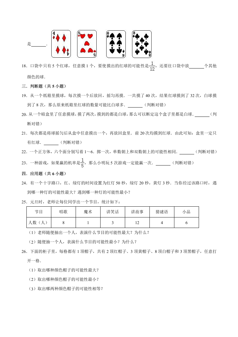 五年上数学人教第4章可能性单元测试题芝士老师1年前发布关注私信0.15MB14页788249五年上数学人教第4章可能性单元测试题此内容为免费资源,请登录后查看芝士0 登录查看强烈推荐123网盘下载,非会员不限速如果下载链接失效请联系客服补发如需手机上下载打印,请用手机浏览器打开本站免费资源 第1页 / 共14页 第2页 / 共14页 第3页 / 共14页 该文档为免费文档,您可直接下载完整版进行阅读 © 版权声明 1 如果您找不到想要的资料, 点击这儿 可以查看网站使用手册! 2 可能会帮助到你: 网址导航 | 网站入门 | 获取邀请码 3 如果遇到付费才能看或下载的文章,建议您升级本站VIP会员;全站所有资源任意下,免费看。 4本站资源部分来自网络,由多位老师收集整理,如有侵犯你的权益请 联系站长,我们会第一时间进行审核删除。 5 站内资源为网友个人学习或测试研究使用,未经原版权作者许可,禁止用于任何商业途径!请在下载24小时内删除! THE END五年级资料专区 这套资料真的不错,快分享给您身边最好的朋友吧^_^点赞249 分享QQ空间微博QQ好友海报分享复制链接收藏 可以按Ctrl+D收藏此页面 HI!请登录 登录 注册 搜索 开启精彩搜索 免费内容强烈推荐123网盘下载,非会员不限速如果下载链接失效请联系客服补发如需手机上下载打印,请用手机浏览器打开本站 登录查看默写 (12)高频考点 (1)高分必刷 (0)高中语文 (5)高中英语 (7)高中生物 (5)高中数学 (12)高中地理 (5)高中历史 (5)高中化学 (5)预习 (2)音标 (1)雷锋 (0)阅读 (0)阅兵 (5)钱 (6)量词 (3)部首 (1)逻辑 (12)通用 (0) 小吖麻麻关注 这家伙很懒,什么都没有写... evawawawa关注 这家伙很懒,什么都没有写... s_juan1关注 这家伙很懒,什么都没有写... kele关注 这家伙很懒,什么都没有写... 燕子关注 这家伙很懒,什么都没有写... 四爷关注 这家伙很懒,什么都没有写... 小豆点sun关注 这家伙很懒,什么都没有写... Mouse Dad关注 这家伙很懒,什么都没有写... 领取5000T网盘资源 百度网盘5000T网红资源 立即领取 在手机上浏览此页面 登录没有账号?立即注册手机号或邮箱图形验证码验证码发送验证码记住登录账号密码登录 登录用户名/手机号/邮箱登录密码图形验证码记住登录找回密码 | 免密登录 登录注册已有账号,立即登录设置用户名手机号图形验证码验证码发送验证码设置密码重复密码邀请码(选填)注册已阅读并同意用户协议、隐私声明
