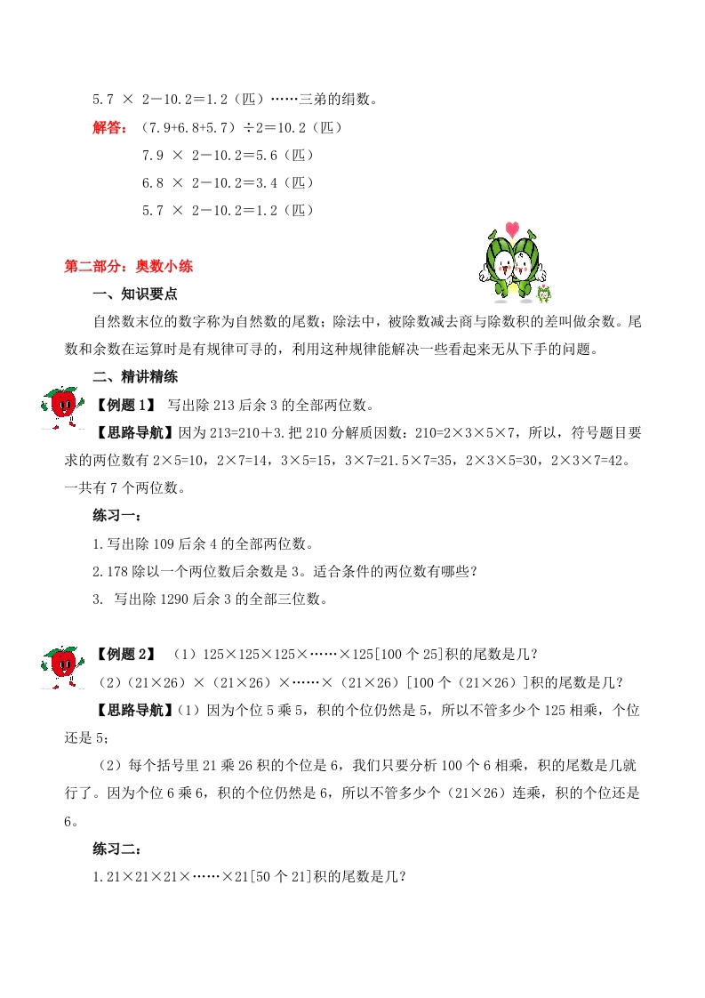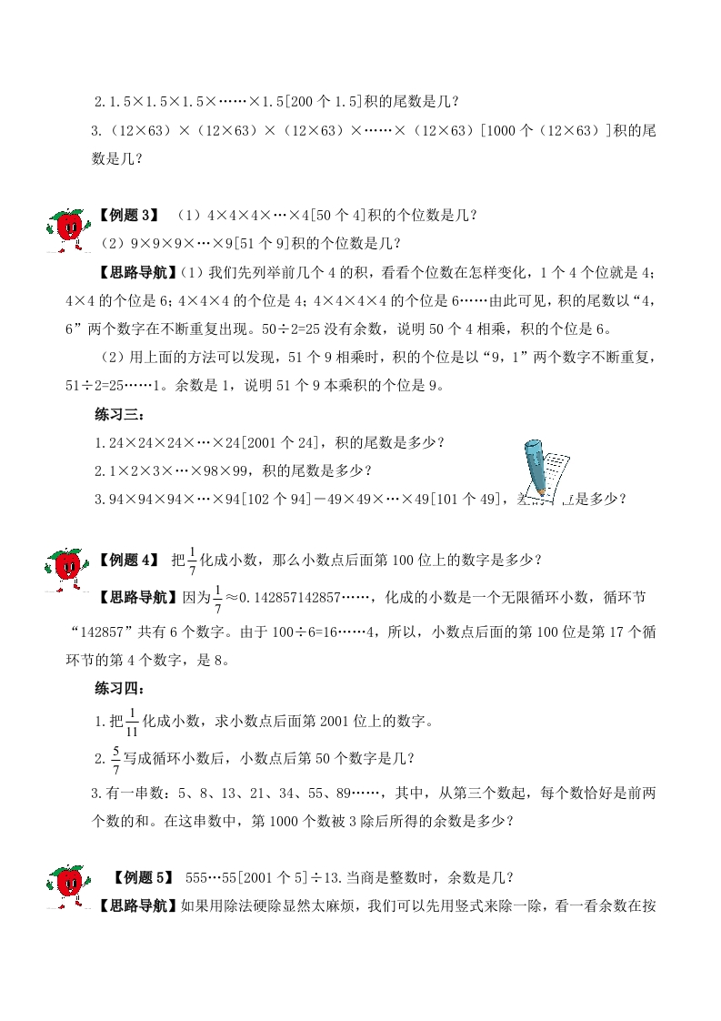 【精品奥数】五年级上册数学思维训练讲义-第一讲尾数和余数人教版(含答案)芝士老师1年前发布关注私信0.25MB6页647276【精品奥数】五年级上册数学思维训练讲义-第一讲尾数和余数人教版(含答案)此内容为免费资源,请登录后查看芝士0 登录查看强烈推荐123网盘下载,非会员不限速如果下载链接失效请联系客服补发如需手机上下载打印,请用手机浏览器打开本站免费资源 第1页 / 共6页 第2页 / 共6页 第3页 / 共6页 该文档为免费文档,您可直接下载完整版进行阅读 © 版权声明 1 如果您找不到想要的资料, 点击这儿 可以查看网站使用手册! 2 可能会帮助到你: 网址导航 | 网站入门 | 获取邀请码 3 如果遇到付费才能看或下载的文章,建议您升级本站VIP会员;全站所有资源任意下,免费看。 4本站资源部分来自网络,由多位老师收集整理,如有侵犯你的权益请 联系站长,我们会第一时间进行审核删除。 5 站内资源为网友个人学习或测试研究使用,未经原版权作者许可,禁止用于任何商业途径!请在下载24小时内删除! THE END五年级资料专区 这套资料真的不错,快分享给您身边最好的朋友吧^_^点赞276 分享QQ空间微博QQ好友海报分享复制链接收藏 可以按Ctrl+D收藏此页面 HI!请登录 登录 注册 搜索 开启精彩搜索 免费内容强烈推荐123网盘下载,非会员不限速如果下载链接失效请联系客服补发如需手机上下载打印,请用手机浏览器打开本站 登录查看默写 (12)高频考点 (1)高分必刷 (0)高中语文 (5)高中英语 (7)高中生物 (5)高中数学 (12)高中地理 (5)高中历史 (5)高中化学 (5)预习 (2)音标 (1)雷锋 (0)阅读 (0)阅兵 (5)钱 (6)量词 (3)部首 (1)逻辑 (12)通用 (0) 小吖麻麻关注 这家伙很懒,什么都没有写... evawawawa关注 这家伙很懒,什么都没有写... s_juan1关注 这家伙很懒,什么都没有写... kele关注 这家伙很懒,什么都没有写... 燕子关注 这家伙很懒,什么都没有写... 四爷关注 这家伙很懒,什么都没有写... 小豆点sun关注 这家伙很懒,什么都没有写... Mouse Dad关注 这家伙很懒,什么都没有写... 领取5000T网盘资源 百度网盘5000T网红资源 立即领取 在手机上浏览此页面 登录没有账号?立即注册手机号或邮箱图形验证码验证码发送验证码记住登录账号密码登录 登录用户名/手机号/邮箱登录密码图形验证码记住登录找回密码 | 免密登录 登录注册已有账号,立即登录设置用户名手机号图形验证码验证码发送验证码设置密码重复密码邀请码(选填)注册已阅读并同意用户协议、隐私声明