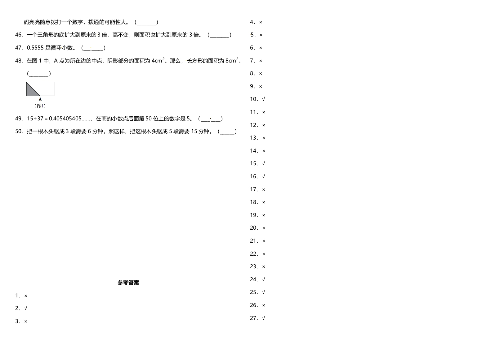 五年级上册数学试题–5《判断题》人教版(含答案)芝士老师1年前发布关注私信0.12MB4页768206五年级上册数学试题–5《判断题》人教版(含答案)此内容为免费资源,请登录后查看芝士0 登录查看强烈推荐123网盘下载,非会员不限速如果下载链接失效请联系客服补发如需手机上下载打印,请用手机浏览器打开本站免费资源 第1页 / 共4页 第2页 / 共4页 第3页 / 共4页 该文档为免费文档,您可直接下载完整版进行阅读 © 版权声明 1 如果您找不到想要的资料, 点击这儿 可以查看网站使用手册! 2 可能会帮助到你: 网址导航 | 网站入门 | 获取邀请码 3 如果遇到付费才能看或下载的文章,建议您升级本站VIP会员;全站所有资源任意下,免费看。 4本站资源部分来自网络,由多位老师收集整理,如有侵犯你的权益请 联系站长,我们会第一时间进行审核删除。 5 站内资源为网友个人学习或测试研究使用,未经原版权作者许可,禁止用于任何商业途径!请在下载24小时内删除! THE END五年级资料专区 这套资料真的不错,快分享给您身边最好的朋友吧^_^点赞206 分享QQ空间微博QQ好友海报分享复制链接收藏 可以按Ctrl+D收藏此页面 HI!请登录 登录 注册 搜索 开启精彩搜索 免费内容强烈推荐123网盘下载,非会员不限速如果下载链接失效请联系客服补发如需手机上下载打印,请用手机浏览器打开本站 登录查看默写 (12)高频考点 (1)高分必刷 (0)高中语文 (5)高中英语 (7)高中生物 (5)高中数学 (12)高中地理 (5)高中历史 (5)高中化学 (5)预习 (2)音标 (1)雷锋 (0)阅读 (0)阅兵 (5)钱 (6)量词 (3)部首 (1)逻辑 (12)通用 (0) 小吖麻麻关注 这家伙很懒,什么都没有写... evawawawa关注 这家伙很懒,什么都没有写... s_juan1关注 这家伙很懒,什么都没有写... kele关注 这家伙很懒,什么都没有写... 燕子关注 这家伙很懒,什么都没有写... 四爷关注 这家伙很懒,什么都没有写... 小豆点sun关注 这家伙很懒,什么都没有写... Mouse Dad关注 这家伙很懒,什么都没有写... 领取5000T网盘资源 百度网盘5000T网红资源 立即领取 在手机上浏览此页面 登录没有账号?立即注册手机号或邮箱图形验证码验证码发送验证码记住登录账号密码登录 登录用户名/手机号/邮箱登录密码图形验证码记住登录找回密码 | 免密登录 登录注册已有账号,立即登录设置用户名手机号图形验证码验证码发送验证码设置密码重复密码邀请码(选填)注册已阅读并同意用户协议、隐私声明