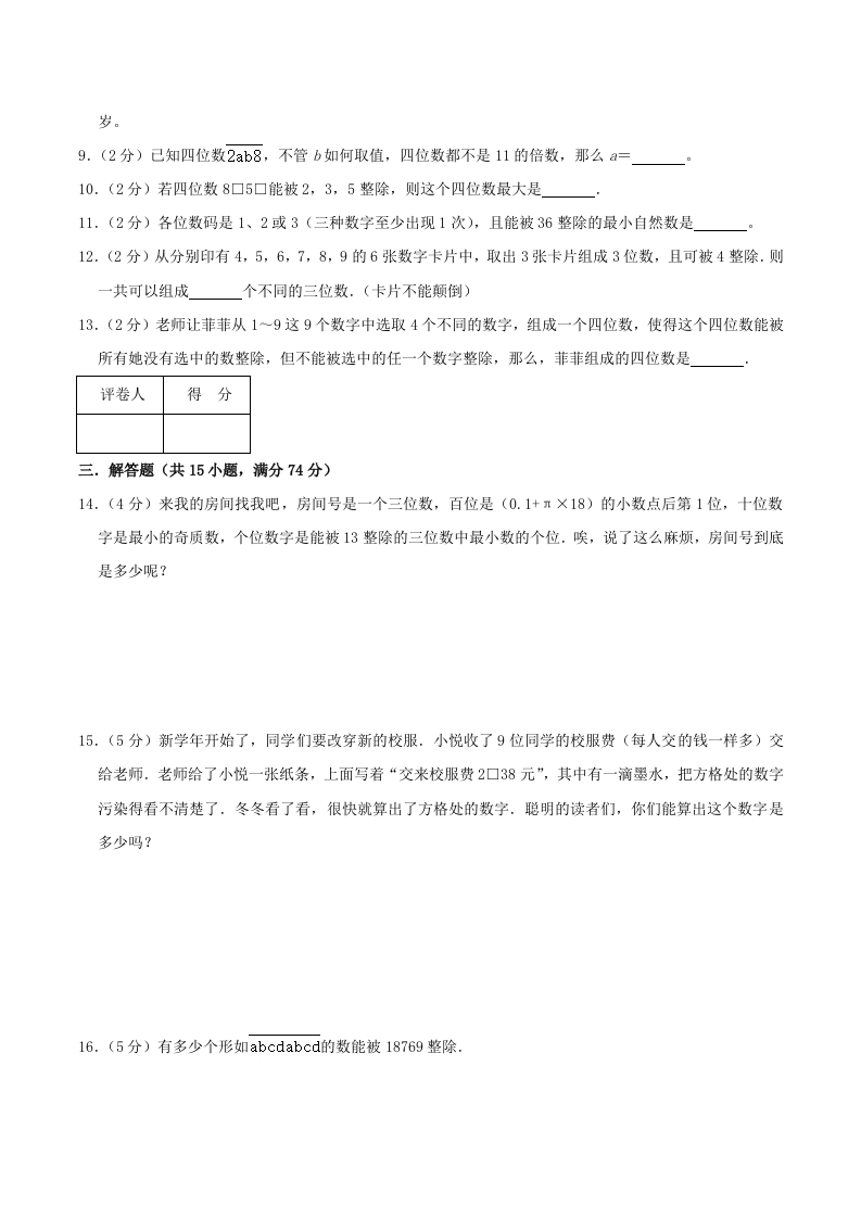五年级下奥数知识点《数的整除》原卷芝士老师1年前发布关注私信23.49KB6页781275五年级下奥数知识点《数的整除》原卷此内容为免费资源,请登录后查看芝士0 登录查看强烈推荐123网盘下载,非会员不限速如果下载链接失效请联系客服补发如需手机上下载打印,请用手机浏览器打开本站免费资源 第1页 / 共6页 第2页 / 共6页 第3页 / 共6页 该文档为免费文档,您可直接下载完整版进行阅读 © 版权声明 1 如果您找不到想要的资料, 点击这儿 可以查看网站使用手册! 2 可能会帮助到你: 网址导航 | 网站入门 | 获取邀请码 3 如果遇到付费才能看或下载的文章,建议您升级本站VIP会员;全站所有资源任意下,免费看。 4本站资源部分来自网络,由多位老师收集整理,如有侵犯你的权益请 联系站长,我们会第一时间进行审核删除。 5 站内资源为网友个人学习或测试研究使用,未经原版权作者许可,禁止用于任何商业途径!请在下载24小时内删除! THE END五年级资料专区 这套资料真的不错,快分享给您身边最好的朋友吧^_^点赞275 分享QQ空间微博QQ好友海报分享复制链接收藏 可以按Ctrl+D收藏此页面 HI!请登录 登录 注册 搜索 开启精彩搜索 免费内容强烈推荐123网盘下载,非会员不限速如果下载链接失效请联系客服补发如需手机上下载打印,请用手机浏览器打开本站 登录查看默写 (12)高频考点 (1)高分必刷 (0)高中语文 (5)高中英语 (7)高中生物 (5)高中数学 (12)高中地理 (5)高中历史 (5)高中化学 (5)预习 (2)音标 (1)雷锋 (0)阅读 (0)阅兵 (5)钱 (6)量词 (3)部首 (1)逻辑 (12)通用 (0) 小吖麻麻关注 这家伙很懒,什么都没有写... s_juan1关注 这家伙很懒,什么都没有写... kuan关注 这家伙很懒,什么都没有写... evawawawa关注 这家伙很懒,什么都没有写... kele关注 这家伙很懒,什么都没有写... 燕子关注 这家伙很懒,什么都没有写... 四爷关注 这家伙很懒,什么都没有写... 小豆点sun关注 这家伙很懒,什么都没有写... 领取5000T网盘资源 百度网盘5000T网红资源 立即领取 在手机上浏览此页面 登录没有账号?立即注册手机号或邮箱图形验证码验证码发送验证码记住登录账号密码登录 登录用户名/手机号/邮箱登录密码图形验证码记住登录找回密码 | 免密登录 登录注册已有账号,立即登录设置用户名手机号图形验证码验证码发送验证码设置密码重复密码邀请码(选填)注册已阅读并同意用户协议、隐私声明