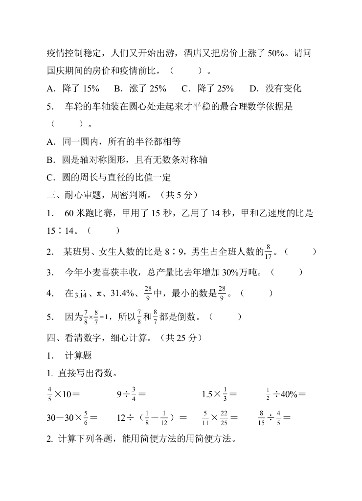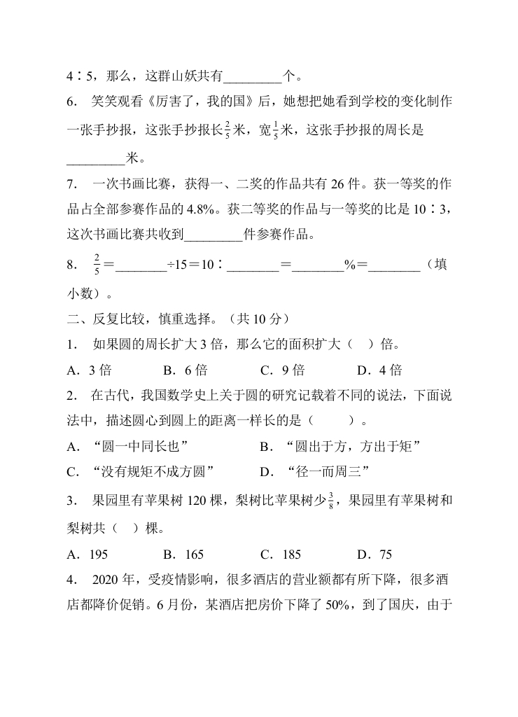 期末达标测试卷(试题)六年级上册数学人教版(1)芝士老师1年前发布关注私信0.11MB11页694228期末达标测试卷(试题)六年级上册数学人教版(1)此内容为免费资源,请登录后查看0积分 登录查看强烈推荐123网盘下载,非会员不限速如果下载链接失效请联系客服补发如需手机上下载打印,请用手机浏览器打开本站免费资源 第1页 / 共11页 第2页 / 共11页 第3页 / 共11页 该文档为免费文档,您可直接下载完整版进行阅读 © 版权声明 1 如果您找不到想要的资料, 点击这儿 可以查看网站使用手册! 2 可能会帮助到你: 网址导航 | 网站入门 | 获取邀请码 3 如果遇到付费才能看或下载的文章,建议您升级本站VIP会员;全站所有资源任意下,免费看。 4本站资源部分来自网络,由多位老师收集整理,如有侵犯你的权益请 联系站长,我们会第一时间进行审核删除。 5 站内资源为网友个人学习或测试研究使用,未经原版权作者许可,禁止用于任何商业途径!请在下载24小时内删除! THE END六年级资料专区 这套资料真的不错,快分享给您身边最好的朋友吧^_^点赞228 分享QQ空间微博QQ好友海报分享复制链接收藏 可以按Ctrl+D收藏此页面 HI!请登录 登录 注册 搜索 开启精彩搜索 免费内容强烈推荐123网盘下载,非会员不限速如果下载链接失效请联系客服补发如需手机上下载打印,请用手机浏览器打开本站 登录查看默写 (12)高频考点 (1)高分必刷 (0)高中语文 (5)高中英语 (7)高中生物 (5)高中数学 (12)高中地理 (5)高中历史 (5)高中化学 (5)预习 (2)音标 (1)雷锋 (0)阅读 (0)阅兵 (5)钱 (6)量词 (3)部首 (1)逻辑 (12)通用 (0) s_juan1关注 这家伙很懒,什么都没有写... kuan关注 这家伙很懒,什么都没有写... 小吖麻麻关注 这家伙很懒,什么都没有写... evawawawa关注 这家伙很懒,什么都没有写... kele关注 这家伙很懒,什么都没有写... 燕子关注 这家伙很懒,什么都没有写... 四爷关注 这家伙很懒,什么都没有写... 小豆点sun关注 这家伙很懒,什么都没有写... 领取5000T网盘资源 百度网盘5000T网红资源 立即领取 在手机上浏览此页面 登录没有账号?立即注册手机号或邮箱图形验证码验证码发送验证码记住登录账号密码登录 登录用户名/手机号/邮箱登录密码图形验证码记住登录找回密码 | 免密登录 登录注册已有账号,立即登录设置用户名手机号图形验证码验证码发送验证码设置密码重复密码邀请码(选填)注册已阅读并同意用户协议、隐私声明