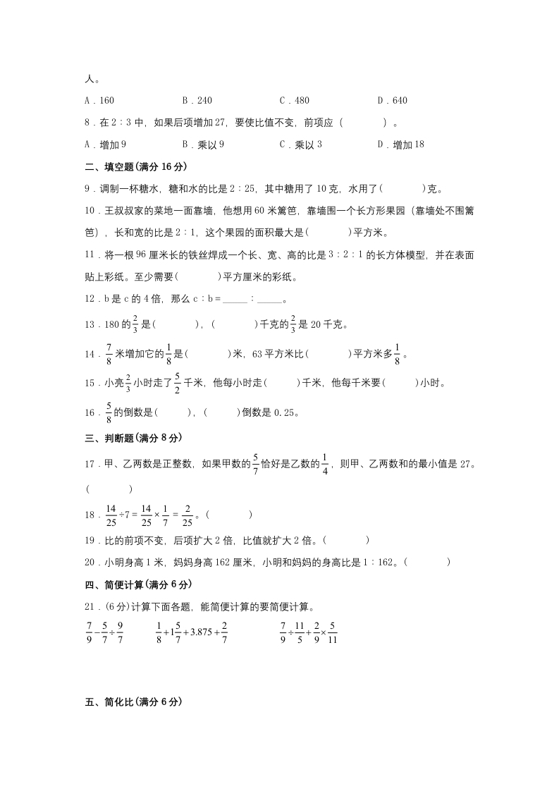 【阶段练习】六年级数学上册3-4单元测试题B卷人教版(含答案)芝士老师1年前发布关注私信0.43MB17页693181【阶段练习】六年级数学上册3-4单元测试题B卷人教版(含答案)此内容为免费资源,请登录后查看0积分 登录查看强烈推荐123网盘下载,非会员不限速如果下载链接失效请联系客服补发如需手机上下载打印,请用手机浏览器打开本站免费资源 第1页 / 共17页 第2页 / 共17页 第3页 / 共17页 该文档为免费文档,您可直接下载完整版进行阅读 © 版权声明 1 如果您找不到想要的资料, 点击这儿 可以查看网站使用手册! 2 可能会帮助到你: 网址导航 | 网站入门 | 获取邀请码 3 如果遇到付费才能看或下载的文章,建议您升级本站VIP会员;全站所有资源任意下,免费看。 4本站资源部分来自网络,由多位老师收集整理,如有侵犯你的权益请 联系站长,我们会第一时间进行审核删除。 5 站内资源为网友个人学习或测试研究使用,未经原版权作者许可,禁止用于任何商业途径!请在下载24小时内删除! THE END六年级资料专区 这套资料真的不错,快分享给您身边最好的朋友吧^_^点赞181 分享QQ空间微博QQ好友海报分享复制链接收藏 可以按Ctrl+D收藏此页面 HI!请登录 登录 注册 搜索 开启精彩搜索 免费内容强烈推荐123网盘下载,非会员不限速如果下载链接失效请联系客服补发如需手机上下载打印,请用手机浏览器打开本站 登录查看默写 (12)高频考点 (1)高分必刷 (0)高中语文 (5)高中英语 (7)高中生物 (5)高中数学 (12)高中地理 (5)高中历史 (5)高中化学 (5)预习 (2)音标 (1)雷锋 (0)阅读 (0)阅兵 (5)钱 (6)量词 (3)部首 (1)逻辑 (12)通用 (0) 非凡的驴关注 这家伙很懒,什么都没有写... s_juan1关注 这家伙很懒,什么都没有写... 有有关注 这家伙很懒,什么都没有写... 考拉妈咪关注 这家伙很懒,什么都没有写... 好东西关注 这家伙很懒,什么都没有写... 张老师关注 这家伙很懒,什么都没有写... 我来了关注 这家伙很懒,什么都没有写... LLLLLSSSSS关注 这家伙很懒,什么都没有写... 领取5000T网盘资源 百度网盘5000T网红资源 立即领取 在手机上浏览此页面 登录没有账号?立即注册手机号或邮箱图形验证码验证码发送验证码记住登录账号密码登录 登录用户名/手机号/邮箱登录密码图形验证码记住登录找回密码 | 免密登录 登录注册已有账号,立即登录设置用户名手机号图形验证码验证码发送验证码设置密码重复密码邀请码(选填)注册已阅读并同意用户协议、隐私声明