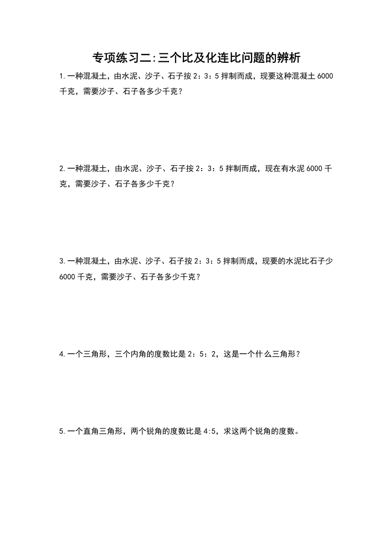 六年级数学上册典型例题系列之第四单元比:按比例分配应用题专项练习(原卷)芝士老师1年前发布关注私信16.46KB7页699133六年级数学上册典型例题系列之第四单元比:按比例分配应用题专项练习(原卷)此内容为免费资源,请登录后查看0积分 登录查看强烈推荐123网盘下载,非会员不限速如果下载链接失效请联系客服补发如需手机上下载打印,请用手机浏览器打开本站免费资源 第1页 / 共7页 第2页 / 共7页 第3页 / 共7页 该文档为免费文档,您可直接下载完整版进行阅读 © 版权声明 1 如果您找不到想要的资料, 点击这儿 可以查看网站使用手册! 2 可能会帮助到你: 网址导航 | 网站入门 | 获取邀请码 3 如果遇到付费才能看或下载的文章,建议您升级本站VIP会员;全站所有资源任意下,免费看。 4本站资源部分来自网络,由多位老师收集整理,如有侵犯你的权益请 联系站长,我们会第一时间进行审核删除。 5 站内资源为网友个人学习或测试研究使用,未经原版权作者许可,禁止用于任何商业途径!请在下载24小时内删除! THE END六年级资料专区 这套资料真的不错,快分享给您身边最好的朋友吧^_^点赞133 分享QQ空间微博QQ好友海报分享复制链接收藏 可以按Ctrl+D收藏此页面 HI!请登录 登录 注册 搜索 开启精彩搜索 免费内容强烈推荐123网盘下载,非会员不限速如果下载链接失效请联系客服补发如需手机上下载打印,请用手机浏览器打开本站 登录查看默写 (12)高频考点 (1)高分必刷 (0)高中语文 (5)高中英语 (7)高中生物 (5)高中数学 (12)高中地理 (5)高中历史 (5)高中化学 (5)预习 (2)音标 (1)雷锋 (0)阅读 (0)阅兵 (5)钱 (6)量词 (3)部首 (1)逻辑 (12)通用 (0) 小吖麻麻关注 这家伙很懒,什么都没有写... s_juan1关注 这家伙很懒,什么都没有写... kuan关注 这家伙很懒,什么都没有写... evawawawa关注 这家伙很懒,什么都没有写... kele关注 这家伙很懒,什么都没有写... 燕子关注 这家伙很懒,什么都没有写... 四爷关注 这家伙很懒,什么都没有写... 小豆点sun关注 这家伙很懒,什么都没有写... 领取5000T网盘资源 百度网盘5000T网红资源 立即领取 在手机上浏览此页面 登录没有账号?立即注册手机号或邮箱图形验证码验证码发送验证码记住登录账号密码登录 登录用户名/手机号/邮箱登录密码图形验证码记住登录找回密码 | 免密登录 登录注册已有账号,立即登录设置用户名手机号图形验证码验证码发送验证码设置密码重复密码邀请码(选填)注册已阅读并同意用户协议、隐私声明