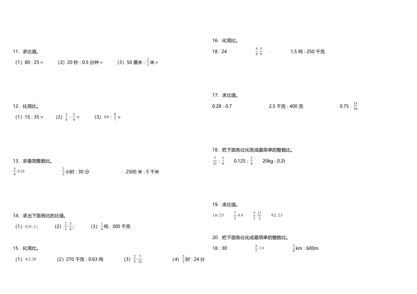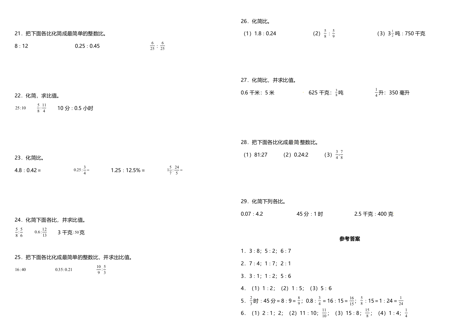 六年级上人教数学专项训练《化简比和求比值》人教版(含答案)芝士老师1年前发布关注私信0.33MB5页767198六年级上人教数学专项训练《化简比和求比值》人教版(含答案)此内容为免费资源,请登录后查看0积分 登录查看强烈推荐123网盘下载,非会员不限速如果下载链接失效请联系客服补发如需手机上下载打印,请用手机浏览器打开本站免费资源 第1页 / 共5页 第2页 / 共5页 第3页 / 共5页 该文档为免费文档,您可直接下载完整版进行阅读 © 版权声明 1 如果您找不到想要的资料, 点击这儿 可以查看网站使用手册! 2 可能会帮助到你: 网址导航 | 网站入门 | 获取邀请码 3 如果遇到付费才能看或下载的文章,建议您升级本站VIP会员;全站所有资源任意下,免费看。 4本站资源部分来自网络,由多位老师收集整理,如有侵犯你的权益请 联系站长,我们会第一时间进行审核删除。 5 站内资源为网友个人学习或测试研究使用,未经原版权作者许可,禁止用于任何商业途径!请在下载24小时内删除! THE END六年级资料专区 这套资料真的不错,快分享给您身边最好的朋友吧^_^点赞198 分享QQ空间微博QQ好友海报分享复制链接收藏 可以按Ctrl+D收藏此页面 HI!请登录 登录 注册 搜索 开启精彩搜索 免费内容强烈推荐123网盘下载,非会员不限速如果下载链接失效请联系客服补发如需手机上下载打印,请用手机浏览器打开本站 登录查看默写 (12)高频考点 (1)高分必刷 (0)高中语文 (5)高中英语 (7)高中生物 (5)高中数学 (12)高中地理 (5)高中历史 (5)高中化学 (5)预习 (2)音标 (1)雷锋 (0)阅读 (0)阅兵 (5)钱 (6)量词 (3)部首 (1)逻辑 (12)通用 (0) s_juan1关注 这家伙很懒,什么都没有写... kuan关注 这家伙很懒,什么都没有写... 小吖麻麻关注 这家伙很懒,什么都没有写... evawawawa关注 这家伙很懒,什么都没有写... kele关注 这家伙很懒,什么都没有写... 燕子关注 这家伙很懒,什么都没有写... 四爷关注 这家伙很懒,什么都没有写... 小豆点sun关注 这家伙很懒,什么都没有写... 领取5000T网盘资源 百度网盘5000T网红资源 立即领取 在手机上浏览此页面 登录没有账号?立即注册手机号或邮箱图形验证码验证码发送验证码记住登录账号密码登录 登录用户名/手机号/邮箱登录密码图形验证码记住登录找回密码 | 免密登录 登录注册已有账号,立即登录设置用户名手机号图形验证码验证码发送验证码设置密码重复密码邀请码(选填)注册已阅读并同意用户协议、隐私声明
