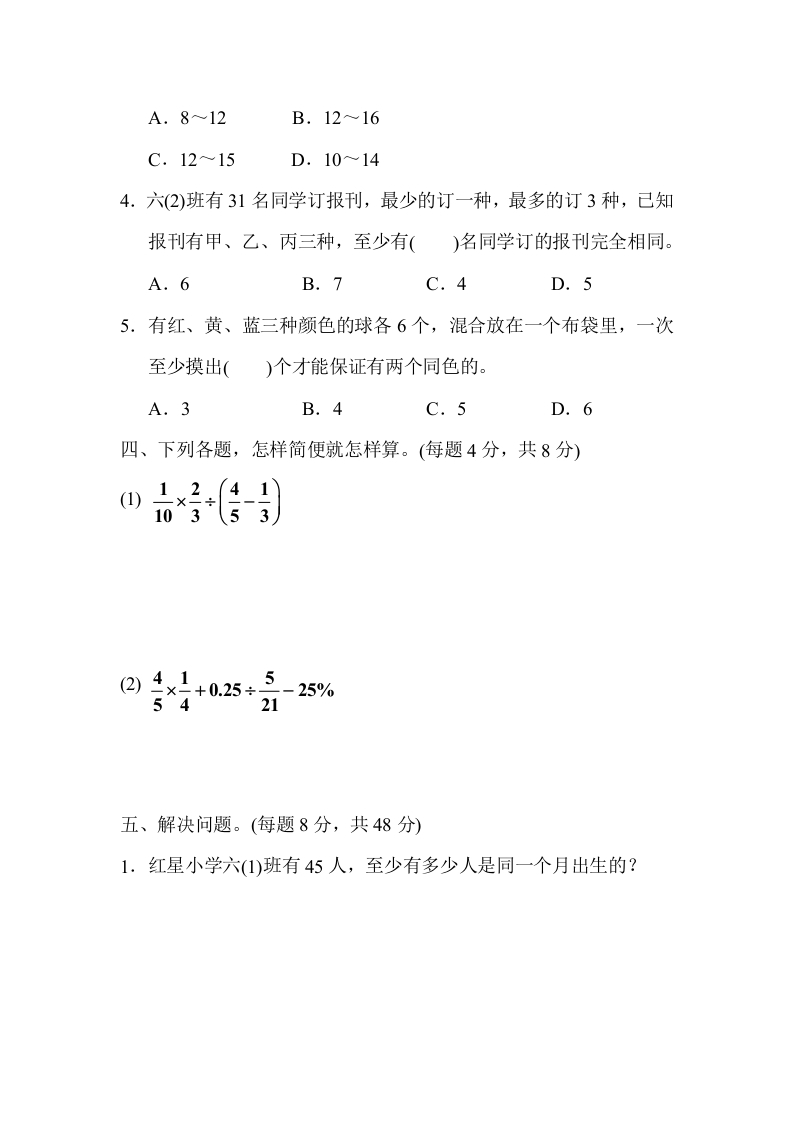 六年级下人教数学第五单元过关检测卷芝士老师1年前发布关注私信39.95KB7页786268六年级下人教数学第五单元过关检测卷此内容为免费资源,请登录后查看0积分 登录查看强烈推荐123网盘下载,非会员不限速如果下载链接失效请联系客服补发如需手机上下载打印,请用手机浏览器打开本站免费资源 第1页 / 共7页 第2页 / 共7页 第3页 / 共7页 该文档为免费文档,您可直接下载完整版进行阅读 © 版权声明 1 如果您找不到想要的资料, 点击这儿 可以查看网站使用手册! 2 可能会帮助到你: 网址导航 | 网站入门 | 获取邀请码 3 如果遇到付费才能看或下载的文章,建议您升级本站VIP会员;全站所有资源任意下,免费看。 4本站资源部分来自网络,由多位老师收集整理,如有侵犯你的权益请 联系站长,我们会第一时间进行审核删除。 5 站内资源为网友个人学习或测试研究使用,未经原版权作者许可,禁止用于任何商业途径!请在下载24小时内删除! THE END六年级资料专区 这套资料真的不错,快分享给您身边最好的朋友吧^_^点赞268 分享QQ空间微博QQ好友海报分享复制链接收藏 可以按Ctrl+D收藏此页面 HI!请登录 登录 注册 搜索 开启精彩搜索 免费内容强烈推荐123网盘下载,非会员不限速如果下载链接失效请联系客服补发如需手机上下载打印,请用手机浏览器打开本站 登录查看默写 (12)高频考点 (1)高分必刷 (0)高中语文 (5)高中英语 (7)高中生物 (5)高中数学 (12)高中地理 (5)高中历史 (5)高中化学 (5)预习 (2)音标 (1)雷锋 (0)阅读 (0)阅兵 (5)钱 (6)量词 (3)部首 (1)逻辑 (12)通用 (0) evawawawa关注 这家伙很懒,什么都没有写... s_juan1关注 这家伙很懒,什么都没有写... 小吖麻麻关注 这家伙很懒,什么都没有写... kele关注 这家伙很懒,什么都没有写... 燕子关注 这家伙很懒,什么都没有写... 四爷关注 这家伙很懒,什么都没有写... 小豆点sun关注 这家伙很懒,什么都没有写... Mouse Dad关注 这家伙很懒,什么都没有写... 领取5000T网盘资源 百度网盘5000T网红资源 立即领取 在手机上浏览此页面 登录没有账号?立即注册手机号或邮箱图形验证码验证码发送验证码记住登录账号密码登录 登录用户名/手机号/邮箱登录密码图形验证码记住登录找回密码 | 免密登录 登录注册已有账号,立即登录设置用户名手机号图形验证码验证码发送验证码设置密码重复密码邀请码(选填)注册已阅读并同意用户协议、隐私声明