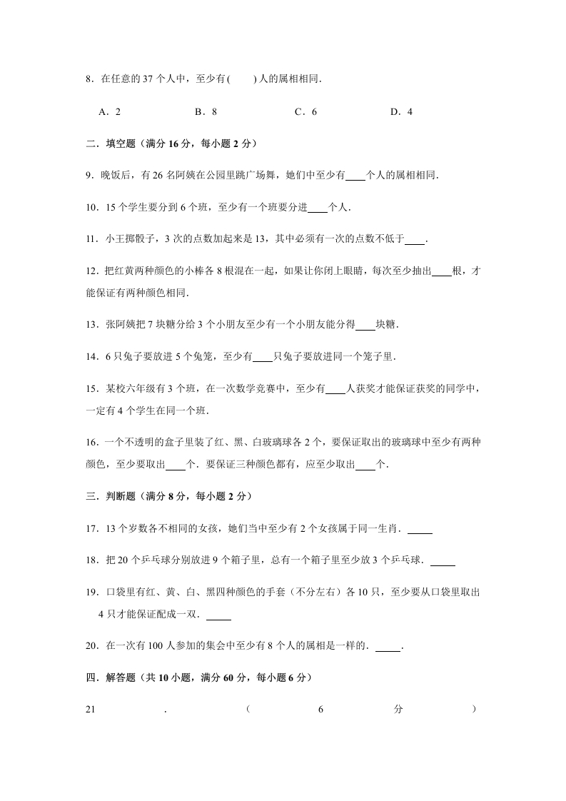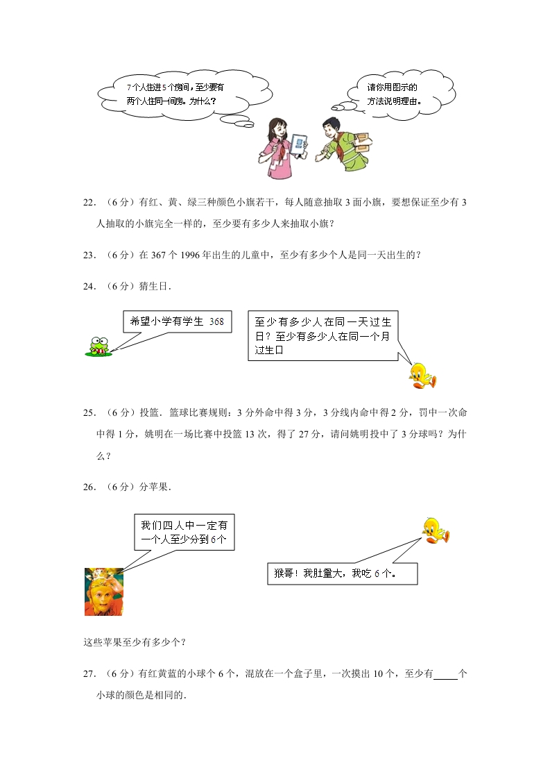 【分层训练】六年级下册数学单元测试-第五单元数学广角——鸽巢问题(基础卷)人教版(含答案)芝士老师1年前发布关注私信0.45MB12页574279【分层训练】六年级下册数学单元测试-第五单元数学广角——鸽巢问题(基础卷)人教版(含答案)此内容为免费资源,请登录后查看0积分 登录查看强烈推荐123网盘下载,非会员不限速如果下载链接失效请联系客服补发如需手机上下载打印,请用手机浏览器打开本站免费资源 第1页 / 共12页 第2页 / 共12页 第3页 / 共12页 该文档为免费文档,您可直接下载完整版进行阅读 © 版权声明 1 如果您找不到想要的资料, 点击这儿 可以查看网站使用手册! 2 可能会帮助到你: 网址导航 | 网站入门 | 获取邀请码 3 如果遇到付费才能看或下载的文章,建议您升级本站VIP会员;全站所有资源任意下,免费看。 4本站资源部分来自网络,由多位老师收集整理,如有侵犯你的权益请 联系站长,我们会第一时间进行审核删除。 5 站内资源为网友个人学习或测试研究使用,未经原版权作者许可,禁止用于任何商业途径!请在下载24小时内删除! THE END六年级资料专区 这套资料真的不错,快分享给您身边最好的朋友吧^_^点赞279 分享QQ空间微博QQ好友海报分享复制链接收藏 可以按Ctrl+D收藏此页面 HI!请登录 登录 注册 搜索 开启精彩搜索 免费内容强烈推荐123网盘下载,非会员不限速如果下载链接失效请联系客服补发如需手机上下载打印,请用手机浏览器打开本站 登录查看默写 (12)高频考点 (1)高分必刷 (0)高中语文 (5)高中英语 (7)高中生物 (5)高中数学 (12)高中地理 (5)高中历史 (5)高中化学 (5)预习 (2)音标 (1)雷锋 (0)阅读 (0)阅兵 (5)钱 (6)量词 (3)部首 (1)逻辑 (12)通用 (0) 小吖麻麻关注 这家伙很懒,什么都没有写... evawawawa关注 这家伙很懒,什么都没有写... s_juan1关注 这家伙很懒,什么都没有写... kele关注 这家伙很懒,什么都没有写... 燕子关注 这家伙很懒,什么都没有写... 四爷关注 这家伙很懒,什么都没有写... 小豆点sun关注 这家伙很懒,什么都没有写... Mouse Dad关注 这家伙很懒,什么都没有写... 领取5000T网盘资源 百度网盘5000T网红资源 立即领取 在手机上浏览此页面 登录没有账号?立即注册手机号或邮箱图形验证码验证码发送验证码记住登录账号密码登录 登录用户名/手机号/邮箱登录密码图形验证码记住登录找回密码 | 免密登录 登录注册已有账号,立即登录设置用户名手机号图形验证码验证码发送验证码设置密码重复密码邀请码(选填)注册已阅读并同意用户协议、隐私声明