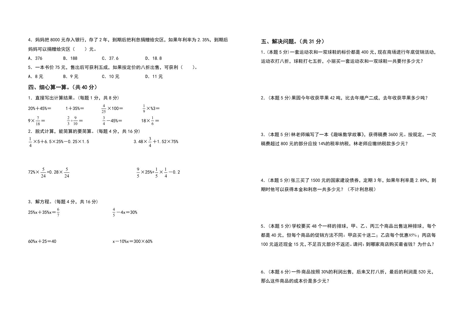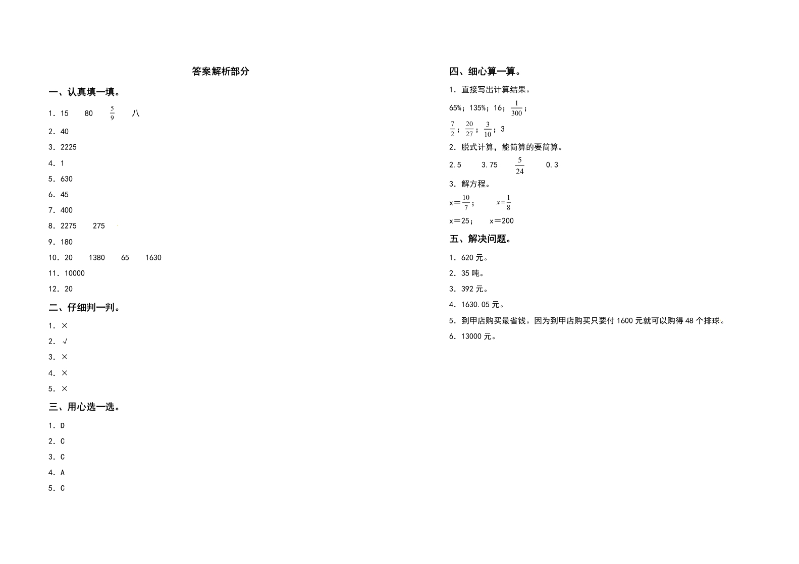六年级数学下册第二单元百分数(二)检测卷(提高卷)(含答案)人教版芝士老师1年前发布关注私信60.68KB4页578282六年级数学下册第二单元百分数(二)检测卷(提高卷)(含答案)人教版此内容为免费资源,请登录后查看0积分 登录查看强烈推荐123网盘下载,非会员不限速如果下载链接失效请联系客服补发如需手机上下载打印,请用手机浏览器打开本站免费资源 第1页 / 共4页 第2页 / 共4页 第3页 / 共4页 该文档为免费文档,您可直接下载完整版进行阅读 © 版权声明 1 如果您找不到想要的资料, 点击这儿 可以查看网站使用手册! 2 可能会帮助到你: 网址导航 | 网站入门 | 获取邀请码 3 如果遇到付费才能看或下载的文章,建议您升级本站VIP会员;全站所有资源任意下,免费看。 4本站资源部分来自网络,由多位老师收集整理,如有侵犯你的权益请 联系站长,我们会第一时间进行审核删除。 5 站内资源为网友个人学习或测试研究使用,未经原版权作者许可,禁止用于任何商业途径!请在下载24小时内删除! THE END六年级资料专区 这套资料真的不错,快分享给您身边最好的朋友吧^_^点赞282 分享QQ空间微博QQ好友海报分享复制链接收藏 可以按Ctrl+D收藏此页面 HI!请登录 登录 注册 搜索 开启精彩搜索 免费内容强烈推荐123网盘下载,非会员不限速如果下载链接失效请联系客服补发如需手机上下载打印,请用手机浏览器打开本站 登录查看默写 (12)高频考点 (1)高分必刷 (0)高中语文 (5)高中英语 (7)高中生物 (5)高中数学 (12)高中地理 (5)高中历史 (5)高中化学 (5)预习 (2)音标 (1)雷锋 (0)阅读 (0)阅兵 (5)钱 (6)量词 (3)部首 (1)逻辑 (12)通用 (0) 小吖麻麻关注 这家伙很懒,什么都没有写... evawawawa关注 这家伙很懒,什么都没有写... s_juan1关注 这家伙很懒,什么都没有写... kele关注 这家伙很懒,什么都没有写... 燕子关注 这家伙很懒,什么都没有写... 四爷关注 这家伙很懒,什么都没有写... 小豆点sun关注 这家伙很懒,什么都没有写... Mouse Dad关注 这家伙很懒,什么都没有写... 领取5000T网盘资源 百度网盘5000T网红资源 立即领取 在手机上浏览此页面 登录没有账号?立即注册手机号或邮箱图形验证码验证码发送验证码记住登录账号密码登录 登录用户名/手机号/邮箱登录密码图形验证码记住登录找回密码 | 免密登录 登录注册已有账号,立即登录设置用户名手机号图形验证码验证码发送验证码设置密码重复密码邀请码(选填)注册已阅读并同意用户协议、隐私声明