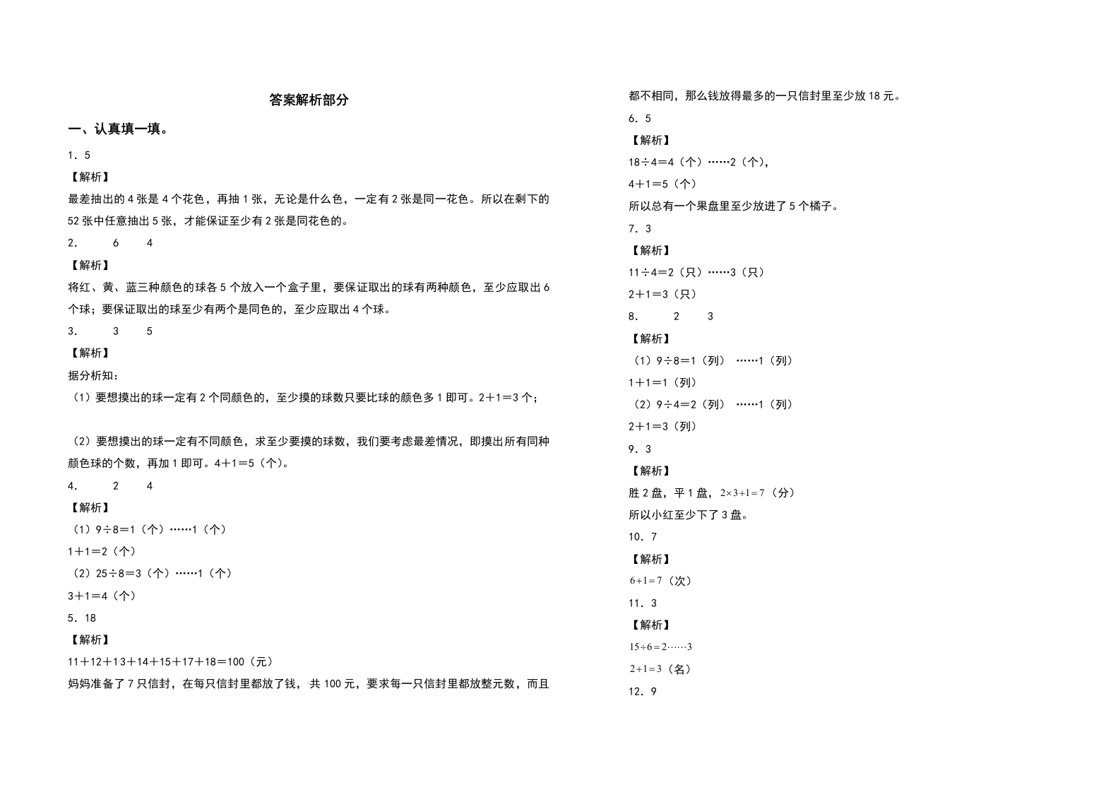 六年级数学下册第五单元数学广角—鸽巢问题检测卷(拓展卷)(含答案)人教版芝士老师1年前发布关注私信54.43KB7页572265六年级数学下册第五单元数学广角—鸽巢问题检测卷(拓展卷)(含答案)人教版此内容为免费资源,请登录后查看0积分 登录查看强烈推荐123网盘下载,非会员不限速如果下载链接失效请联系客服补发如需手机上下载打印,请用手机浏览器打开本站免费资源 第1页 / 共7页 第2页 / 共7页 第3页 / 共7页 该文档为免费文档,您可直接下载完整版进行阅读 © 版权声明 1 如果您找不到想要的资料, 点击这儿 可以查看网站使用手册! 2 可能会帮助到你: 网址导航 | 网站入门 | 获取邀请码 3 如果遇到付费才能看或下载的文章,建议您升级本站VIP会员;全站所有资源任意下,免费看。 4本站资源部分来自网络,由多位老师收集整理,如有侵犯你的权益请 联系站长,我们会第一时间进行审核删除。 5 站内资源为网友个人学习或测试研究使用,未经原版权作者许可,禁止用于任何商业途径!请在下载24小时内删除! THE END六年级资料专区 这套资料真的不错,快分享给您身边最好的朋友吧^_^点赞265 分享QQ空间微博QQ好友海报分享复制链接收藏 可以按Ctrl+D收藏此页面 HI!请登录 登录 注册 搜索 开启精彩搜索 免费内容强烈推荐123网盘下载,非会员不限速如果下载链接失效请联系客服补发如需手机上下载打印,请用手机浏览器打开本站 登录查看默写 (12)高频考点 (1)高分必刷 (0)高中语文 (5)高中英语 (7)高中生物 (5)高中数学 (12)高中地理 (5)高中历史 (5)高中化学 (5)预习 (2)音标 (1)雷锋 (0)阅读 (0)阅兵 (5)钱 (6)量词 (3)部首 (1)逻辑 (12)通用 (0) 非凡的驴关注 这家伙很懒,什么都没有写... s_juan1关注 这家伙很懒,什么都没有写... 有有关注 这家伙很懒,什么都没有写... 考拉妈咪关注 这家伙很懒,什么都没有写... 好东西关注 这家伙很懒,什么都没有写... 张老师关注 这家伙很懒,什么都没有写... 我来了关注 这家伙很懒,什么都没有写... LLLLLSSSSS关注 这家伙很懒,什么都没有写... 领取5000T网盘资源 百度网盘5000T网红资源 立即领取 在手机上浏览此页面 登录没有账号?立即注册手机号或邮箱图形验证码验证码发送验证码记住登录账号密码登录 登录用户名/手机号/邮箱登录密码图形验证码记住登录找回密码 | 免密登录 登录注册已有账号,立即登录设置用户名手机号图形验证码验证码发送验证码设置密码重复密码邀请码(选填)注册已阅读并同意用户协议、隐私声明