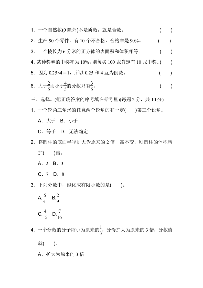 六年级下数学毕业会考模拟检测卷(1)芝士老师1年前发布关注私信33.49KB8页656223六年级下数学毕业会考模拟检测卷(1)此内容为免费资源,请登录后查看0积分 登录查看强烈推荐123网盘下载,非会员不限速如果下载链接失效请联系客服补发如需手机上下载打印,请用手机浏览器打开本站免费资源 第1页 / 共8页 第2页 / 共8页 第3页 / 共8页 该文档为免费文档,您可直接下载完整版进行阅读 © 版权声明 1 如果您找不到想要的资料, 点击这儿 可以查看网站使用手册! 2 可能会帮助到你: 网址导航 | 网站入门 | 获取邀请码 3 如果遇到付费才能看或下载的文章,建议您升级本站VIP会员;全站所有资源任意下,免费看。 4本站资源部分来自网络,由多位老师收集整理,如有侵犯你的权益请 联系站长,我们会第一时间进行审核删除。 5 站内资源为网友个人学习或测试研究使用,未经原版权作者许可,禁止用于任何商业途径!请在下载24小时内删除! THE END六年级资料专区 这套资料真的不错,快分享给您身边最好的朋友吧^_^点赞223 分享QQ空间微博QQ好友海报分享复制链接收藏 可以按Ctrl+D收藏此页面 HI!请登录 登录 注册 搜索 开启精彩搜索 免费内容强烈推荐123网盘下载,非会员不限速如果下载链接失效请联系客服补发如需手机上下载打印,请用手机浏览器打开本站 登录查看默写 (12)高频考点 (1)高分必刷 (0)高中语文 (5)高中英语 (7)高中生物 (5)高中数学 (12)高中地理 (5)高中历史 (5)高中化学 (5)预习 (2)音标 (1)雷锋 (0)阅读 (0)阅兵 (5)钱 (6)量词 (3)部首 (1)逻辑 (12)通用 (0) 小吖麻麻关注 这家伙很懒,什么都没有写... s_juan1关注 这家伙很懒,什么都没有写... kuan关注 这家伙很懒,什么都没有写... evawawawa关注 这家伙很懒,什么都没有写... kele关注 这家伙很懒,什么都没有写... 燕子关注 这家伙很懒,什么都没有写... 四爷关注 这家伙很懒,什么都没有写... 小豆点sun关注 这家伙很懒,什么都没有写... 领取5000T网盘资源 百度网盘5000T网红资源 立即领取 在手机上浏览此页面 登录没有账号?立即注册手机号或邮箱图形验证码验证码发送验证码记住登录账号密码登录 登录用户名/手机号/邮箱登录密码图形验证码记住登录找回密码 | 免密登录 登录注册已有账号,立即登录设置用户名手机号图形验证码验证码发送验证码设置密码重复密码邀请码(选填)注册已阅读并同意用户协议、隐私声明