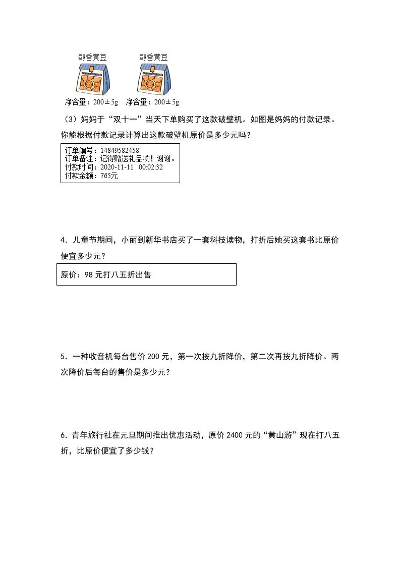 2021-2022学年六年级数学下册典型例题系列之期中专项练习:与百分数有关的生活实际问题(原卷版)人教版芝士老师1年前发布关注私信0.13MB11页6112012021-2022学年六年级数学下册典型例题系列之期中专项练习:与百分数有关的生活实际问题(原卷版)人教版此内容为免费资源,请登录后查看0积分 登录查看强烈推荐123网盘下载,非会员不限速如果下载链接失效请联系客服补发如需手机上下载打印,请用手机浏览器打开本站免费资源 第1页 / 共11页 第2页 / 共11页 第3页 / 共11页 该文档为免费文档,您可直接下载完整版进行阅读 © 版权声明 1 如果您找不到想要的资料, 点击这儿 可以查看网站使用手册! 2 可能会帮助到你: 网址导航 | 网站入门 | 获取邀请码 3 如果遇到付费才能看或下载的文章,建议您升级本站VIP会员;全站所有资源任意下,免费看。 4本站资源部分来自网络,由多位老师收集整理,如有侵犯你的权益请 联系站长,我们会第一时间进行审核删除。 5 站内资源为网友个人学习或测试研究使用,未经原版权作者许可,禁止用于任何商业途径!请在下载24小时内删除! THE END六年级资料专区 这套资料真的不错,快分享给您身边最好的朋友吧^_^点赞201 分享QQ空间微博QQ好友海报分享复制链接收藏 可以按Ctrl+D收藏此页面 HI!请登录 登录 注册 搜索 开启精彩搜索 免费内容强烈推荐123网盘下载,非会员不限速如果下载链接失效请联系客服补发如需手机上下载打印,请用手机浏览器打开本站 登录查看默写 (12)高频考点 (1)高分必刷 (0)高中语文 (5)高中英语 (7)高中生物 (5)高中数学 (12)高中地理 (5)高中历史 (5)高中化学 (5)预习 (2)音标 (1)雷锋 (0)阅读 (0)阅兵 (5)钱 (6)量词 (3)部首 (1)逻辑 (12)通用 (0) s_juan1关注 这家伙很懒,什么都没有写... kuan关注 这家伙很懒,什么都没有写... 小吖麻麻关注 这家伙很懒,什么都没有写... evawawawa关注 这家伙很懒,什么都没有写... kele关注 这家伙很懒,什么都没有写... 燕子关注 这家伙很懒,什么都没有写... 四爷关注 这家伙很懒,什么都没有写... 小豆点sun关注 这家伙很懒,什么都没有写... 领取5000T网盘资源 百度网盘5000T网红资源 立即领取 在手机上浏览此页面 登录没有账号?立即注册手机号或邮箱图形验证码验证码发送验证码记住登录账号密码登录 登录用户名/手机号/邮箱登录密码图形验证码记住登录找回密码 | 免密登录 登录注册已有账号,立即登录设置用户名手机号图形验证码验证码发送验证码设置密码重复密码邀请码(选填)注册已阅读并同意用户协议、隐私声明