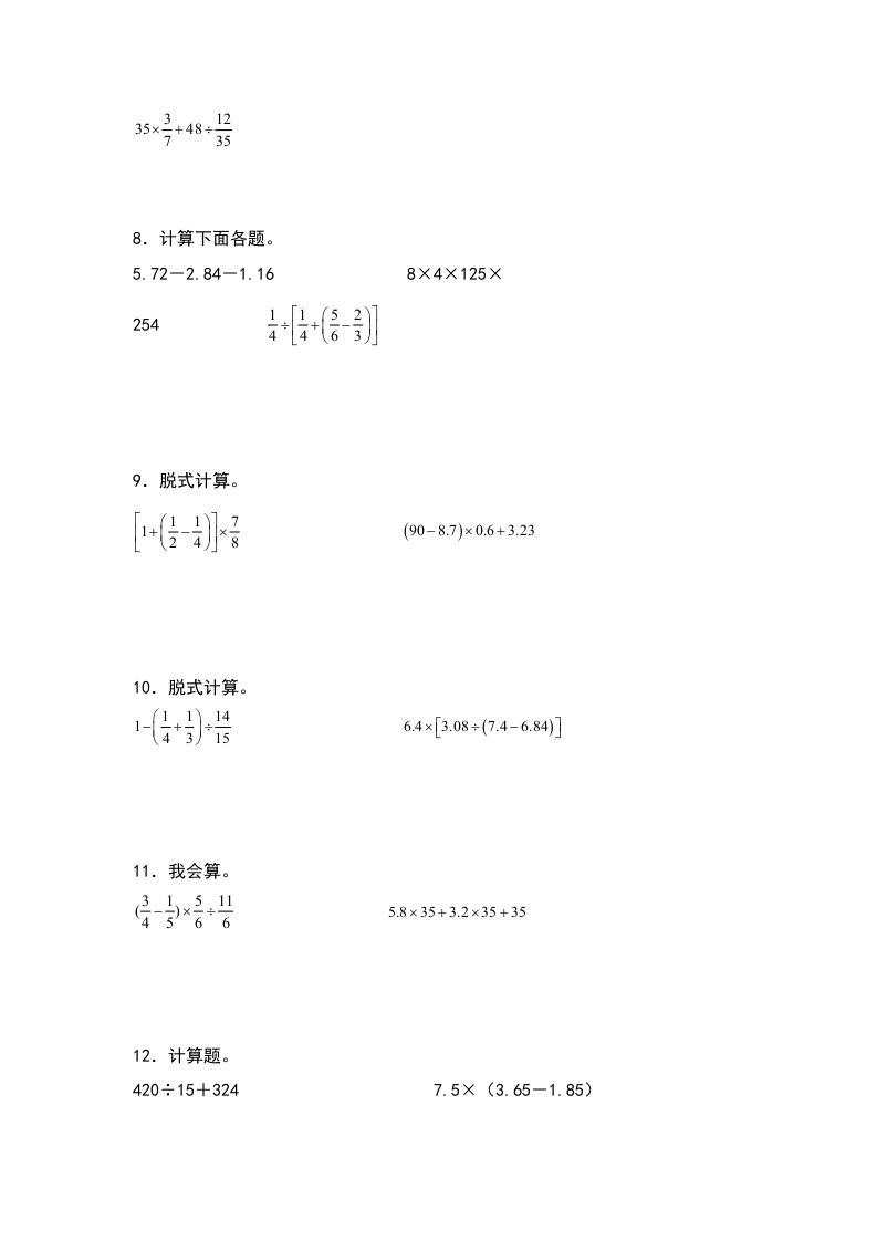 六年级数学下册典型例题系列之第六单元第一讲四则混合运算专项练习(原卷版)人教版芝士老师1年前发布关注私信0.14MB9页708138六年级数学下册典型例题系列之第六单元第一讲四则混合运算专项练习(原卷版)人教版此内容为免费资源,请登录后查看0积分 登录查看强烈推荐123网盘下载,非会员不限速如果下载链接失效请联系客服补发如需手机上下载打印,请用手机浏览器打开本站免费资源 第1页 / 共9页 第2页 / 共9页 第3页 / 共9页 该文档为免费文档,您可直接下载完整版进行阅读 © 版权声明 1 如果您找不到想要的资料, 点击这儿 可以查看网站使用手册! 2 可能会帮助到你: 网址导航 | 网站入门 | 获取邀请码 3 如果遇到付费才能看或下载的文章,建议您升级本站VIP会员;全站所有资源任意下,免费看。 4本站资源部分来自网络,由多位老师收集整理,如有侵犯你的权益请 联系站长,我们会第一时间进行审核删除。 5 站内资源为网友个人学习或测试研究使用,未经原版权作者许可,禁止用于任何商业途径!请在下载24小时内删除! THE END六年级资料专区 这套资料真的不错,快分享给您身边最好的朋友吧^_^点赞138 分享QQ空间微博QQ好友海报分享复制链接收藏 可以按Ctrl+D收藏此页面 HI!请登录 登录 注册 搜索 开启精彩搜索 免费内容强烈推荐123网盘下载,非会员不限速如果下载链接失效请联系客服补发如需手机上下载打印,请用手机浏览器打开本站 登录查看默写 (12)高频考点 (1)高分必刷 (0)高中语文 (5)高中英语 (7)高中生物 (5)高中数学 (12)高中地理 (5)高中历史 (5)高中化学 (5)预习 (2)音标 (1)雷锋 (0)阅读 (0)阅兵 (5)钱 (6)量词 (3)部首 (1)逻辑 (12)通用 (0) s_juan1关注 这家伙很懒,什么都没有写... kuan关注 这家伙很懒,什么都没有写... 小吖麻麻关注 这家伙很懒,什么都没有写... evawawawa关注 这家伙很懒,什么都没有写... kele关注 这家伙很懒,什么都没有写... 燕子关注 这家伙很懒,什么都没有写... 四爷关注 这家伙很懒,什么都没有写... 小豆点sun关注 这家伙很懒,什么都没有写... 领取5000T网盘资源 百度网盘5000T网红资源 立即领取 在手机上浏览此页面 登录没有账号?立即注册手机号或邮箱图形验证码验证码发送验证码记住登录账号密码登录 登录用户名/手机号/邮箱登录密码图形验证码记住登录找回密码 | 免密登录 登录注册已有账号,立即登录设置用户名手机号图形验证码验证码发送验证码设置密码重复密码邀请码(选填)注册已阅读并同意用户协议、隐私声明