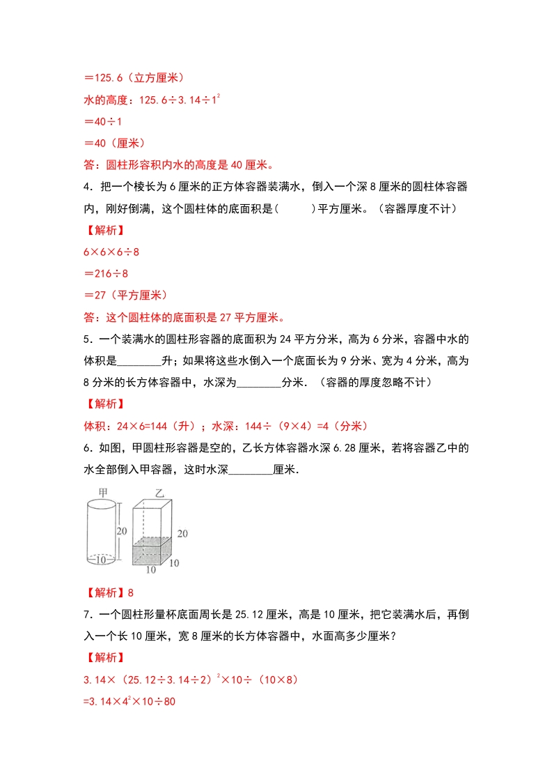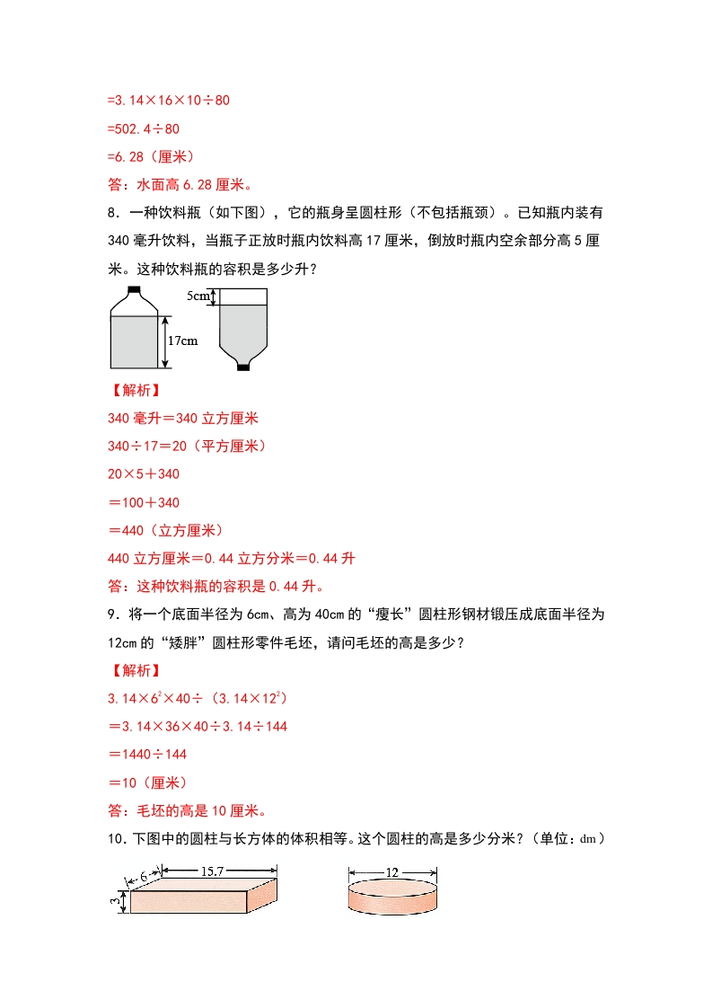 六年级数学下册典型例题系列之第三单元:圆柱体积的等积转化问题专项练习(解析版)芝士老师1年前发布关注私信0.19MB6页502295六年级数学下册典型例题系列之第三单元:圆柱体积的等积转化问题专项练习(解析版)此内容为免费资源,请登录后查看0积分 登录查看强烈推荐123网盘下载,非会员不限速如果下载链接失效请联系客服补发如需手机上下载打印,请用手机浏览器打开本站免费资源 第1页 / 共6页 第2页 / 共6页 第3页 / 共6页 该文档为免费文档,您可直接下载完整版进行阅读 © 版权声明 1 如果您找不到想要的资料, 点击这儿 可以查看网站使用手册! 2 可能会帮助到你: 网址导航 | 网站入门 | 获取邀请码 3 如果遇到付费才能看或下载的文章,建议您升级本站VIP会员;全站所有资源任意下,免费看。 4本站资源部分来自网络,由多位老师收集整理,如有侵犯你的权益请 联系站长,我们会第一时间进行审核删除。 5 站内资源为网友个人学习或测试研究使用,未经原版权作者许可,禁止用于任何商业途径!请在下载24小时内删除! THE END六年级资料专区 这套资料真的不错,快分享给您身边最好的朋友吧^_^点赞295 分享QQ空间微博QQ好友海报分享复制链接收藏 可以按Ctrl+D收藏此页面 HI!请登录 登录 注册 搜索 开启精彩搜索 免费内容强烈推荐123网盘下载,非会员不限速如果下载链接失效请联系客服补发如需手机上下载打印,请用手机浏览器打开本站 登录查看默写 (12)高频考点 (1)高分必刷 (0)高中语文 (5)高中英语 (7)高中生物 (5)高中数学 (12)高中地理 (5)高中历史 (5)高中化学 (5)预习 (2)音标 (1)雷锋 (0)阅读 (0)阅兵 (5)钱 (6)量词 (3)部首 (1)逻辑 (12)通用 (0) 琦琦关注 这家伙很懒,什么都没有写... 123免费了关注 这家伙很懒,什么都没有写... s_juan1关注 这家伙很懒,什么都没有写... 非凡的驴关注 这家伙很懒,什么都没有写... 有有关注 这家伙很懒,什么都没有写... 考拉妈咪关注 这家伙很懒,什么都没有写... 好东西关注 这家伙很懒,什么都没有写... 张老师关注 这家伙很懒,什么都没有写... 领取5000T网盘资源 百度网盘5000T网红资源 立即领取 在手机上浏览此页面 登录没有账号?立即注册手机号或邮箱图形验证码验证码发送验证码记住登录账号密码登录 登录用户名/手机号/邮箱登录密码图形验证码记住登录找回密码 | 免密登录 登录注册已有账号,立即登录设置用户名手机号图形验证码验证码发送验证码设置密码重复密码邀请码(选填)注册已阅读并同意用户协议、隐私声明