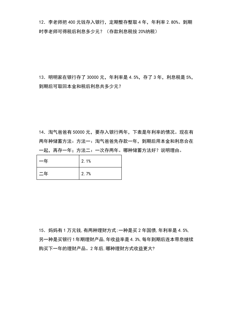 【典型例题系列】六年级数学下册典型例题系列之第二单元:利率问题专项练习(含答案)人教版芝士老师1年前发布关注私信24.83KB11页581198【典型例题系列】六年级数学下册典型例题系列之第二单元:利率问题专项练习(含答案)人教版此内容为免费资源,请登录后查看0积分 登录查看强烈推荐123网盘下载,非会员不限速如果下载链接失效请联系客服补发如需手机上下载打印,请用手机浏览器打开本站免费资源 第1页 / 共11页 第2页 / 共11页 第3页 / 共11页 该文档为免费文档,您可直接下载完整版进行阅读 © 版权声明 1 如果您找不到想要的资料, 点击这儿 可以查看网站使用手册! 2 可能会帮助到你: 网址导航 | 网站入门 | 获取邀请码 3 如果遇到付费才能看或下载的文章,建议您升级本站VIP会员;全站所有资源任意下,免费看。 4本站资源部分来自网络,由多位老师收集整理,如有侵犯你的权益请 联系站长,我们会第一时间进行审核删除。 5 站内资源为网友个人学习或测试研究使用,未经原版权作者许可,禁止用于任何商业途径!请在下载24小时内删除! THE END六年级资料专区 这套资料真的不错,快分享给您身边最好的朋友吧^_^点赞198 分享QQ空间微博QQ好友海报分享复制链接收藏 可以按Ctrl+D收藏此页面 HI!请登录 登录 注册 搜索 开启精彩搜索 免费内容强烈推荐123网盘下载,非会员不限速如果下载链接失效请联系客服补发如需手机上下载打印,请用手机浏览器打开本站 登录查看默写 (12)高频考点 (1)高分必刷 (0)高中语文 (5)高中英语 (7)高中生物 (5)高中数学 (12)高中地理 (5)高中历史 (5)高中化学 (5)预习 (2)音标 (1)雷锋 (0)阅读 (0)阅兵 (5)钱 (6)量词 (3)部首 (1)逻辑 (12)通用 (0) 小吖麻麻关注 这家伙很懒,什么都没有写... evawawawa关注 这家伙很懒,什么都没有写... s_juan1关注 这家伙很懒,什么都没有写... kele关注 这家伙很懒,什么都没有写... 燕子关注 这家伙很懒,什么都没有写... 四爷关注 这家伙很懒,什么都没有写... 小豆点sun关注 这家伙很懒,什么都没有写... Mouse Dad关注 这家伙很懒,什么都没有写... 领取5000T网盘资源 百度网盘5000T网红资源 立即领取 在手机上浏览此页面 登录没有账号?立即注册手机号或邮箱图形验证码验证码发送验证码记住登录账号密码登录 登录用户名/手机号/邮箱登录密码图形验证码记住登录找回密码 | 免密登录 登录注册已有账号,立即登录设置用户名手机号图形验证码验证码发送验证码设置密码重复密码邀请码(选填)注册已阅读并同意用户协议、隐私声明