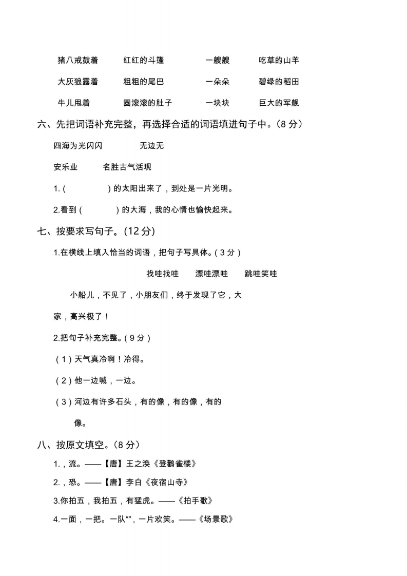 二年级上册语文部编版期末真题卷2芝士老师1年前更新关注私信1.06MB4页576146二年级上册语文部编版期末真题卷2此内容为免费资源,请登录后查看0积分 登录查看强烈推荐123网盘下载,非会员不限速如果下载链接失效请联系客服补发如需手机上下载打印,请用手机浏览器打开本站大小MB加入VIP会员,畅享海量精品教育资源,同步教材更新,再赠送5000T精品热门网课!免费资源 第1页 / 共4页 第2页 / 共4页 该文档为免费文档,您可直接下载完整版进行阅读 © 版权声明 1 如果您找不到想要的资料, 点击这儿 可以查看网站使用手册! 2 可能会帮助到你: 网址导航 | 网站入门 | 获取邀请码 3 如果遇到付费才能看或下载的文章,建议您升级本站VIP会员;全站所有资源任意下,免费看。 4本站资源部分来自网络,由多位老师收集整理,如有侵犯你的权益请 联系站长,我们会第一时间进行审核删除。 5 站内资源为网友个人学习或测试研究使用,未经原版权作者许可,禁止用于任何商业途径!请在下载24小时内删除! THE END考试试卷专题二年级资料专区# 期末# 真题 这套资料真的不错,快分享给您身边最好的朋友吧^_^点赞146 分享QQ空间微博QQ好友海报分享复制链接收藏 可以按Ctrl+D收藏此页面 HI!请登录 登录 注册 搜索 开启精彩搜索 免费内容强烈推荐123网盘下载,非会员不限速如果下载链接失效请联系客服补发如需手机上下载打印,请用手机浏览器打开本站 登录查看大小MB加入VIP会员,畅享海量精品教育资源,同步教材更新,再赠送5000T精品热门网课!默写 (12)高频考点 (1)高分必刷 (0)高中语文 (5)高中英语 (7)高中生物 (5)高中数学 (12)高中地理 (5)高中历史 (5)高中化学 (5)预习 (2)音标 (1)雷锋 (0)阅读 (0)阅兵 (5)钱 (6)量词 (3)部首 (1)逻辑 (12)通用 (0) s_juan1关注 这家伙很懒,什么都没有写... 小吖麻麻关注 这家伙很懒,什么都没有写... kele关注 这家伙很懒,什么都没有写... 燕子关注 这家伙很懒,什么都没有写... 四爷关注 这家伙很懒,什么都没有写... 小豆点sun关注 这家伙很懒,什么都没有写... Mouse Dad关注 这家伙很懒,什么都没有写... kuan关注 这家伙很懒,什么都没有写... 领取5000T网盘资源 百度网盘5000T网红资源 立即领取 在手机上浏览此页面 登录没有账号?立即注册手机号或邮箱图形验证码验证码发送验证码记住登录账号密码登录 登录用户名/手机号/邮箱登录密码图形验证码记住登录找回密码 | 免密登录 登录注册已有账号,立即登录设置用户名手机号图形验证码验证码发送验证码设置密码重复密码邀请码(选填)注册已阅读并同意用户协议、隐私声明