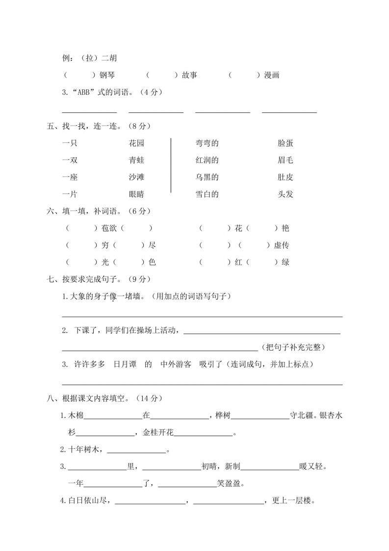 二年级上册语文部编版期中精选卷4(含答案)芝士老师1年前发布关注私信1.42MB6页774286二年级上册语文部编版期中精选卷4(含答案)此内容为免费资源,请登录后查看0积分 登录查看强烈推荐123网盘下载,非会员不限速如果下载链接失效请联系客服补发如需手机上下载打印,请用手机浏览器打开本站免费资源 第1页 / 共6页 第2页 / 共6页 该文档为免费文档,您可直接下载完整版进行阅读 © 版权声明 1 如果您找不到想要的资料, 点击这儿 可以查看网站使用手册! 2 可能会帮助到你: 网址导航 | 网站入门 | 获取邀请码 3 如果遇到付费才能看或下载的文章,建议您升级本站VIP会员;全站所有资源任意下,免费看。 4本站资源部分来自网络,由多位老师收集整理,如有侵犯你的权益请 联系站长,我们会第一时间进行审核删除。 5 站内资源为网友个人学习或测试研究使用,未经原版权作者许可,禁止用于任何商业途径!请在下载24小时内删除! THE END考试试卷专题二年级资料专区# 期中 这套资料真的不错,快分享给您身边最好的朋友吧^_^点赞286 分享QQ空间微博QQ好友海报分享复制链接收藏 可以按Ctrl+D收藏此页面 HI!请登录 登录 注册 搜索 开启精彩搜索 免费内容强烈推荐123网盘下载,非会员不限速如果下载链接失效请联系客服补发如需手机上下载打印,请用手机浏览器打开本站 登录查看默写 (12)高频考点 (1)高分必刷 (0)高中语文 (5)高中英语 (7)高中生物 (5)高中数学 (12)高中地理 (5)高中历史 (5)高中化学 (5)预习 (2)音标 (1)雷锋 (0)阅读 (0)阅兵 (5)钱 (6)量词 (3)部首 (1)逻辑 (12)通用 (0) 小吖麻麻关注 这家伙很懒,什么都没有写... evawawawa关注 这家伙很懒,什么都没有写... s_juan1关注 这家伙很懒,什么都没有写... kele关注 这家伙很懒,什么都没有写... 燕子关注 这家伙很懒,什么都没有写... 四爷关注 这家伙很懒,什么都没有写... 小豆点sun关注 这家伙很懒,什么都没有写... Mouse Dad关注 这家伙很懒,什么都没有写... 领取5000T网盘资源 百度网盘5000T网红资源 立即领取 在手机上浏览此页面 登录没有账号?立即注册手机号或邮箱图形验证码验证码发送验证码记住登录账号密码登录 登录用户名/手机号/邮箱登录密码图形验证码记住登录找回密码 | 免密登录 登录注册已有账号,立即登录设置用户名手机号图形验证码验证码发送验证码设置密码重复密码邀请码(选填)注册已阅读并同意用户协议、隐私声明