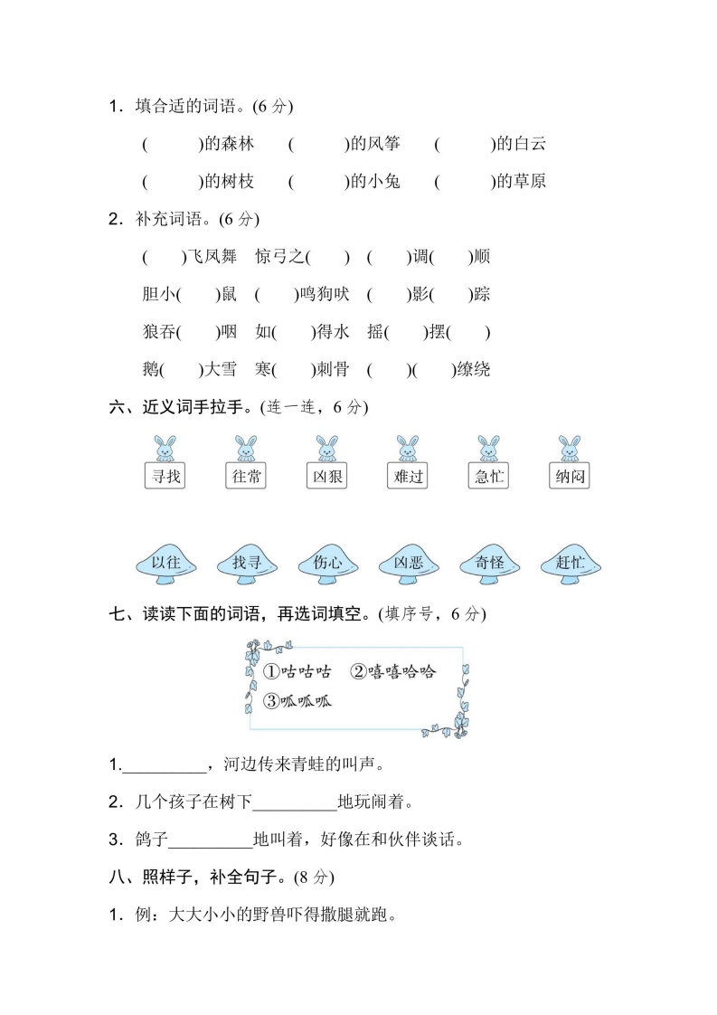 二年级上册语文部编版第4次月考卷(第7、8单元)(含答案)芝士老师1年前发布关注私信1.95MB8页708230二年级上册语文部编版第4次月考卷(第7、8单元)(含答案)此内容为免费资源,请登录后查看0积分 登录查看强烈推荐123网盘下载,非会员不限速如果下载链接失效请联系客服补发如需手机上下载打印,请用手机浏览器打开本站免费资源 第1页 / 共8页 第2页 / 共8页 该文档为免费文档,您可直接下载完整版进行阅读 © 版权声明 1 如果您找不到想要的资料, 点击这儿 可以查看网站使用手册! 2 可能会帮助到你: 网址导航 | 网站入门 | 获取邀请码 3 如果遇到付费才能看或下载的文章,建议您升级本站VIP会员;全站所有资源任意下,免费看。 4本站资源部分来自网络,由多位老师收集整理,如有侵犯你的权益请 联系站长,我们会第一时间进行审核删除。 5 站内资源为网友个人学习或测试研究使用,未经原版权作者许可,禁止用于任何商业途径!请在下载24小时内删除! THE END考试试卷专题二年级资料专区# 月考 这套资料真的不错,快分享给您身边最好的朋友吧^_^点赞230 分享QQ空间微博QQ好友海报分享复制链接收藏 可以按Ctrl+D收藏此页面 HI!请登录 登录 注册 搜索 开启精彩搜索 免费内容强烈推荐123网盘下载,非会员不限速如果下载链接失效请联系客服补发如需手机上下载打印,请用手机浏览器打开本站 登录查看默写 (12)高频考点 (1)高分必刷 (0)高中语文 (5)高中英语 (7)高中生物 (5)高中数学 (12)高中地理 (5)高中历史 (5)高中化学 (5)预习 (2)音标 (1)雷锋 (0)阅读 (0)阅兵 (5)钱 (6)量词 (3)部首 (1)逻辑 (12)通用 (0) s_juan1关注 这家伙很懒,什么都没有写... kuan关注 这家伙很懒,什么都没有写... 小吖麻麻关注 这家伙很懒,什么都没有写... evawawawa关注 这家伙很懒,什么都没有写... kele关注 这家伙很懒,什么都没有写... 燕子关注 这家伙很懒,什么都没有写... 四爷关注 这家伙很懒,什么都没有写... 小豆点sun关注 这家伙很懒,什么都没有写... 领取5000T网盘资源 百度网盘5000T网红资源 立即领取 在手机上浏览此页面 登录没有账号?立即注册手机号或邮箱图形验证码验证码发送验证码记住登录账号密码登录 登录用户名/手机号/邮箱登录密码图形验证码记住登录找回密码 | 免密登录 登录注册已有账号,立即登录设置用户名手机号图形验证码验证码发送验证码设置密码重复密码邀请码(选填)注册已阅读并同意用户协议、隐私声明