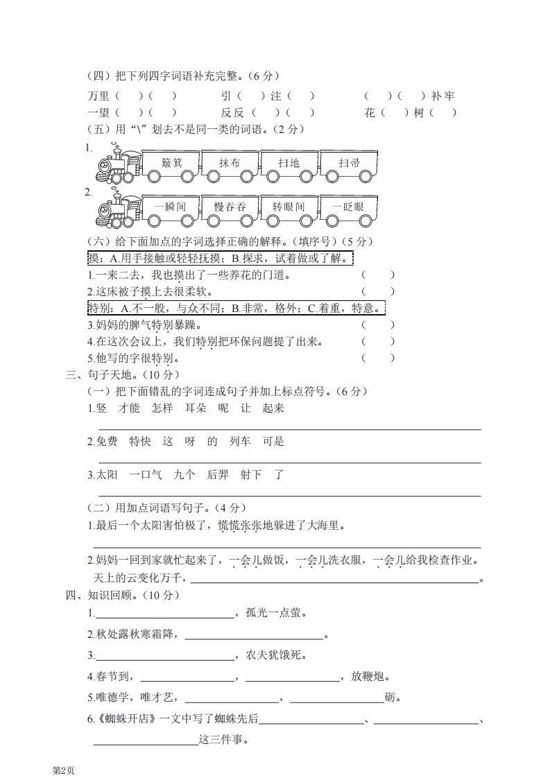 二年级下册语文部编版期末模拟卷4(含答案)芝士老师1年前发布关注私信0.45MB4页520226二年级下册语文部编版期末模拟卷4(含答案)此内容为免费资源,请登录后查看0积分 登录查看强烈推荐123网盘下载,非会员不限速如果下载链接失效请联系客服补发如需手机上下载打印,请用手机浏览器打开本站免费资源 第1页 / 共4页 第2页 / 共4页 该文档为免费文档,您可直接下载完整版进行阅读 © 版权声明 1 如果您找不到想要的资料, 点击这儿 可以查看网站使用手册! 2 可能会帮助到你: 网址导航 | 网站入门 | 获取邀请码 3 如果遇到付费才能看或下载的文章,建议您升级本站VIP会员;全站所有资源任意下,免费看。 4本站资源部分来自网络,由多位老师收集整理,如有侵犯你的权益请 联系站长,我们会第一时间进行审核删除。 5 站内资源为网友个人学习或测试研究使用,未经原版权作者许可,禁止用于任何商业途径!请在下载24小时内删除! THE END考试试卷专题二年级资料专区# 期末 这套资料真的不错,快分享给您身边最好的朋友吧^_^点赞226 分享QQ空间微博QQ好友海报分享复制链接收藏 可以按Ctrl+D收藏此页面 HI!请登录 登录 注册 搜索 开启精彩搜索 免费内容强烈推荐123网盘下载,非会员不限速如果下载链接失效请联系客服补发如需手机上下载打印,请用手机浏览器打开本站 登录查看默写 (12)高频考点 (1)高分必刷 (0)高中语文 (5)高中英语 (7)高中生物 (5)高中数学 (12)高中地理 (5)高中历史 (5)高中化学 (5)预习 (2)音标 (1)雷锋 (0)阅读 (0)阅兵 (5)钱 (6)量词 (3)部首 (1)逻辑 (12)通用 (0) s_juan1关注 这家伙很懒,什么都没有写... 小吖麻麻关注 这家伙很懒,什么都没有写... kele关注 这家伙很懒,什么都没有写... 燕子关注 这家伙很懒,什么都没有写... 四爷关注 这家伙很懒,什么都没有写... 小豆点sun关注 这家伙很懒,什么都没有写... Mouse Dad关注 这家伙很懒,什么都没有写... kuan关注 这家伙很懒,什么都没有写... 领取5000T网盘资源 百度网盘5000T网红资源 立即领取 在手机上浏览此页面 登录没有账号?立即注册手机号或邮箱图形验证码验证码发送验证码记住登录账号密码登录 登录用户名/手机号/邮箱登录密码图形验证码记住登录找回密码 | 免密登录 登录注册已有账号,立即登录设置用户名手机号图形验证码验证码发送验证码设置密码重复密码邀请码(选填)注册已阅读并同意用户协议、隐私声明