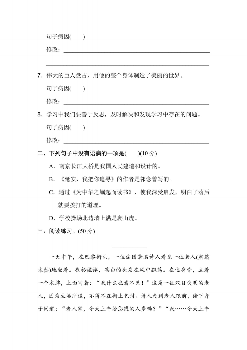 四年级上册语文部编版期末专项训练卷13修改病句(含答案)芝士老师1年前发布关注私信1.48MB6页736282四年级上册语文部编版期末专项训练卷13修改病句(含答案)此内容为免费资源,请登录后查看0积分 登录查看强烈推荐123网盘下载,非会员不限速如果下载链接失效请联系客服补发如需手机上下载打印,请用手机浏览器打开本站免费资源 第1页 / 共6页 第2页 / 共6页 该文档为免费文档,您可直接下载完整版进行阅读 © 版权声明 1 如果您找不到想要的资料, 点击这儿 可以查看网站使用手册! 2 可能会帮助到你: 网址导航 | 网站入门 | 获取邀请码 3 如果遇到付费才能看或下载的文章,建议您升级本站VIP会员;全站所有资源任意下,免费看。 4本站资源部分来自网络,由多位老师收集整理,如有侵犯你的权益请 联系站长,我们会第一时间进行审核删除。 5 站内资源为网友个人学习或测试研究使用,未经原版权作者许可,禁止用于任何商业途径!请在下载24小时内删除! THE END考试试卷专题四年级资料专区# 期末 这套资料真的不错,快分享给您身边最好的朋友吧^_^点赞282 分享QQ空间微博QQ好友海报分享复制链接收藏 可以按Ctrl+D收藏此页面 HI!请登录 登录 注册 搜索 开启精彩搜索 免费内容强烈推荐123网盘下载,非会员不限速如果下载链接失效请联系客服补发如需手机上下载打印,请用手机浏览器打开本站 登录查看默写 (12)高频考点 (1)高分必刷 (0)高中语文 (5)高中英语 (7)高中生物 (5)高中数学 (12)高中地理 (5)高中历史 (5)高中化学 (5)预习 (2)音标 (1)雷锋 (0)阅读 (0)阅兵 (5)钱 (6)量词 (3)部首 (1)逻辑 (12)通用 (0) 小吖麻麻关注 这家伙很懒,什么都没有写... evawawawa关注 这家伙很懒,什么都没有写... s_juan1关注 这家伙很懒,什么都没有写... kele关注 这家伙很懒,什么都没有写... 燕子关注 这家伙很懒,什么都没有写... 四爷关注 这家伙很懒,什么都没有写... 小豆点sun关注 这家伙很懒,什么都没有写... Mouse Dad关注 这家伙很懒,什么都没有写... 领取5000T网盘资源 百度网盘5000T网红资源 立即领取 在手机上浏览此页面 登录没有账号?立即注册手机号或邮箱图形验证码验证码发送验证码记住登录账号密码登录 登录用户名/手机号/邮箱登录密码图形验证码记住登录找回密码 | 免密登录 登录注册已有账号,立即登录设置用户名手机号图形验证码验证码发送验证码设置密码重复密码邀请码(选填)注册已阅读并同意用户协议、隐私声明