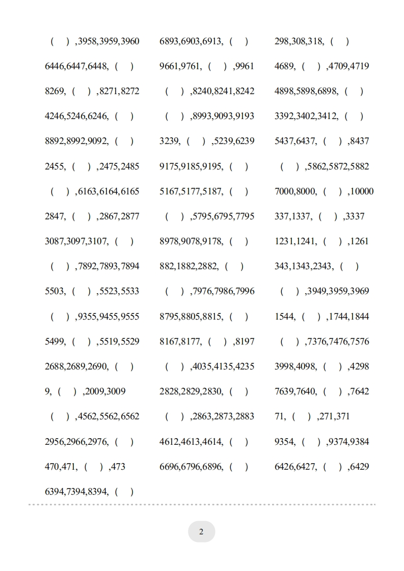 二年级下口算题(万以内数的认识)500题芝士老师1年前发布关注私信0.27MB10页568212二年级下口算题(万以内数的认识)500题此内容为付费资源,请付费后查看会员专属资源学期会员免费研学会员免费您暂无购买权限,请先开通会员开通会员强烈推荐123网盘下载,非会员不限速如果下载链接失效请联系客服补发如需手机上下载打印,请用手机浏览器打开本站付费资源 第1页 / 共10页 第2页 / 共10页 试读已结束,还剩8页,您可下载完整版后进行离线阅读 © 版权声明 1 如果您找不到想要的资料, 点击这儿 可以查看网站使用手册! 2 可能会帮助到你: 网址导航 | 网站入门 | 获取邀请码 3 如果遇到付费才能看或下载的文章,建议您升级本站VIP会员;全站所有资源任意下,免费看。 4本站资源部分来自网络,由多位老师收集整理,如有侵犯你的权益请 联系站长,我们会第一时间进行审核删除。 5 站内资源为网友个人学习或测试研究使用,未经原版权作者许可,禁止用于任何商业途径!请在下载24小时内删除! THE END二年级资料专区# 口算 这套资料真的不错,快分享给您身边最好的朋友吧^_^点赞212 分享QQ空间微博QQ好友海报分享复制链接收藏 可以按Ctrl+D收藏此页面 HI!请登录 登录 注册 搜索 开启精彩搜索 付费资源会员专属资源学期会员免费研学会员免费强烈推荐123网盘下载,非会员不限速如果下载链接失效请联系客服补发如需手机上下载打印,请用手机浏览器打开本站您暂无购买权限,请先开通会员开通会员默写 (12)高频考点 (1)高分必刷 (0)高中语文 (5)高中英语 (7)高中生物 (5)高中数学 (12)高中地理 (5)高中历史 (5)高中化学 (5)预习 (2)音标 (1)雷锋 (0)阅读 (0)阅兵 (5)钱 (6)量词 (3)部首 (1)逻辑 (12)通用 (0) 小吖麻麻关注 这家伙很懒,什么都没有写... s_juan1关注 这家伙很懒,什么都没有写... kele关注 这家伙很懒,什么都没有写... 燕子关注 这家伙很懒,什么都没有写... 四爷关注 这家伙很懒,什么都没有写... 小豆点sun关注 这家伙很懒,什么都没有写... Mouse Dad关注 这家伙很懒,什么都没有写... kuan关注 这家伙很懒,什么都没有写... 领取5000T网盘资源 百度网盘5000T网红资源 立即领取 在手机上浏览此页面 登录没有账号?立即注册手机号或邮箱图形验证码验证码发送验证码记住登录账号密码登录 登录用户名/手机号/邮箱登录密码图形验证码记住登录找回密码 | 免密登录 登录注册已有账号,立即登录设置用户名手机号图形验证码验证码发送验证码设置密码重复密码邀请码(选填)注册已阅读并同意用户协议、隐私声明