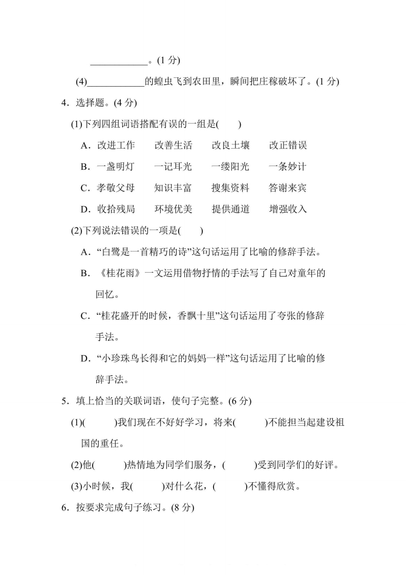 五年级上册语文部编版期中测试卷6(含答案)芝士老师1年前发布关注私信2.58MB9页643116五年级上册语文部编版期中测试卷6(含答案)此内容为免费资源,请登录后查看0积分 登录查看强烈推荐123网盘下载,非会员不限速如果下载链接失效请联系客服补发如需手机上下载打印,请用手机浏览器打开本站免费资源 第1页 / 共9页 第2页 / 共9页 该文档为免费文档,您可直接下载完整版进行阅读 © 版权声明 1 如果您找不到想要的资料, 点击这儿 可以查看网站使用手册! 2 可能会帮助到你: 网址导航 | 网站入门 | 获取邀请码 3 如果遇到付费才能看或下载的文章,建议您升级本站VIP会员;全站所有资源任意下,免费看。 4本站资源部分来自网络,由多位老师收集整理,如有侵犯你的权益请 联系站长,我们会第一时间进行审核删除。 5 站内资源为网友个人学习或测试研究使用,未经原版权作者许可,禁止用于任何商业途径!请在下载24小时内删除! THE END考试试卷专题五年级资料专区# 期中 这套资料真的不错,快分享给您身边最好的朋友吧^_^点赞116 分享QQ空间微博QQ好友海报分享复制链接收藏 可以按Ctrl+D收藏此页面 HI!请登录 登录 注册 搜索 开启精彩搜索 免费内容强烈推荐123网盘下载,非会员不限速如果下载链接失效请联系客服补发如需手机上下载打印,请用手机浏览器打开本站 登录查看默写 (12)高频考点 (1)高分必刷 (0)高中语文 (5)高中英语 (7)高中生物 (5)高中数学 (12)高中地理 (5)高中历史 (5)高中化学 (5)预习 (2)音标 (1)雷锋 (0)阅读 (0)阅兵 (5)钱 (6)量词 (3)部首 (1)逻辑 (12)通用 (0) 小吖麻麻关注 这家伙很懒,什么都没有写... evawawawa关注 这家伙很懒,什么都没有写... s_juan1关注 这家伙很懒,什么都没有写... kele关注 这家伙很懒,什么都没有写... 燕子关注 这家伙很懒,什么都没有写... 四爷关注 这家伙很懒,什么都没有写... 小豆点sun关注 这家伙很懒,什么都没有写... Mouse Dad关注 这家伙很懒,什么都没有写... 领取5000T网盘资源 百度网盘5000T网红资源 立即领取 在手机上浏览此页面 登录没有账号?立即注册手机号或邮箱图形验证码验证码发送验证码记住登录账号密码登录 登录用户名/手机号/邮箱登录密码图形验证码记住登录找回密码 | 免密登录 登录注册已有账号,立即登录设置用户名手机号图形验证码验证码发送验证码设置密码重复密码邀请码(选填)注册已阅读并同意用户协议、隐私声明