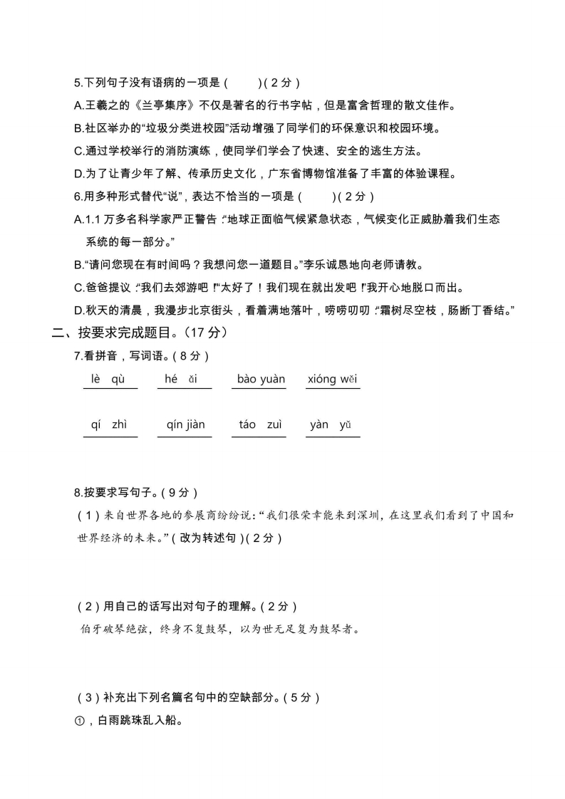 六年级上册语文部编版期末真题卷(二)(含答案)芝士老师1年前发布关注私信3.96MB8页657211六年级上册语文部编版期末真题卷(二)(含答案)此内容为免费资源,请登录后查看0积分 登录查看强烈推荐123网盘下载,非会员不限速如果下载链接失效请联系客服补发如需手机上下载打印,请用手机浏览器打开本站免费资源 第1页 / 共8页 第2页 / 共8页 该文档为免费文档,您可直接下载完整版进行阅读 © 版权声明 1 如果您找不到想要的资料, 点击这儿 可以查看网站使用手册! 2 可能会帮助到你: 网址导航 | 网站入门 | 获取邀请码 3 如果遇到付费才能看或下载的文章,建议您升级本站VIP会员;全站所有资源任意下,免费看。 4本站资源部分来自网络,由多位老师收集整理,如有侵犯你的权益请 联系站长,我们会第一时间进行审核删除。 5 站内资源为网友个人学习或测试研究使用,未经原版权作者许可,禁止用于任何商业途径!请在下载24小时内删除! THE END考试试卷专题六年级资料专区# 期末 这套资料真的不错,快分享给您身边最好的朋友吧^_^点赞211 分享QQ空间微博QQ好友海报分享复制链接收藏 可以按Ctrl+D收藏此页面 HI!请登录 登录 注册 搜索 开启精彩搜索 免费内容强烈推荐123网盘下载,非会员不限速如果下载链接失效请联系客服补发如需手机上下载打印,请用手机浏览器打开本站 登录查看默写 (12)高频考点 (1)高分必刷 (0)高中语文 (5)高中英语 (7)高中生物 (5)高中数学 (12)高中地理 (5)高中历史 (5)高中化学 (5)预习 (2)音标 (1)雷锋 (0)阅读 (0)阅兵 (5)钱 (6)量词 (3)部首 (1)逻辑 (12)通用 (0) 小吖麻麻关注 这家伙很懒,什么都没有写... evawawawa关注 这家伙很懒,什么都没有写... s_juan1关注 这家伙很懒,什么都没有写... kele关注 这家伙很懒,什么都没有写... 燕子关注 这家伙很懒,什么都没有写... 四爷关注 这家伙很懒,什么都没有写... 小豆点sun关注 这家伙很懒,什么都没有写... Mouse Dad关注 这家伙很懒,什么都没有写... 领取5000T网盘资源 百度网盘5000T网红资源 立即领取 在手机上浏览此页面 登录没有账号?立即注册手机号或邮箱图形验证码验证码发送验证码记住登录账号密码登录 登录用户名/手机号/邮箱登录密码图形验证码记住登录找回密码 | 免密登录 登录注册已有账号,立即登录设置用户名手机号图形验证码验证码发送验证码设置密码重复密码邀请码(选填)注册已阅读并同意用户协议、隐私声明