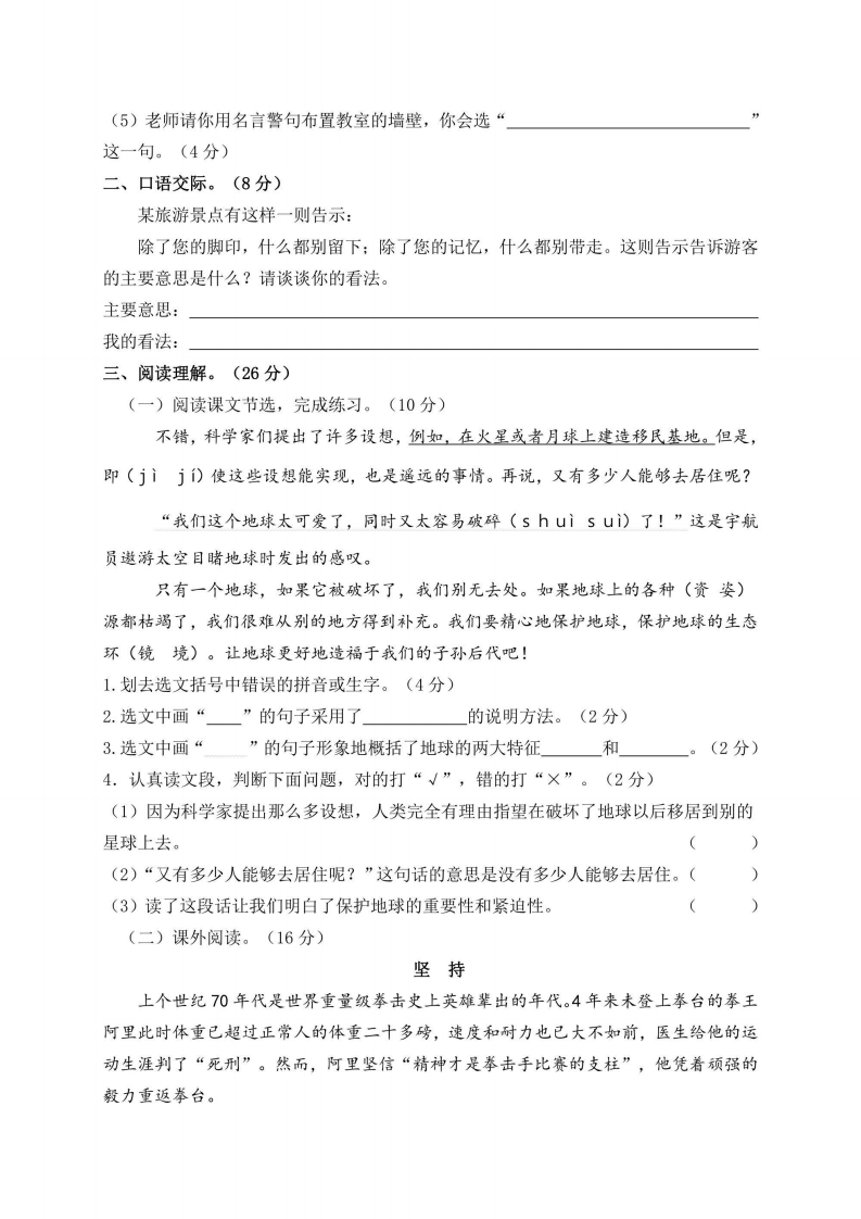六年级上册语文部编版期末精选卷(5)(含答案)芝士老师1年前发布关注私信1.73MB5页597149六年级上册语文部编版期末精选卷(5)(含答案)此内容为免费资源,请登录后查看0积分 登录查看强烈推荐123网盘下载,非会员不限速如果下载链接失效请联系客服补发如需手机上下载打印,请用手机浏览器打开本站免费资源 第1页 / 共5页 第2页 / 共5页 该文档为免费文档,您可直接下载完整版进行阅读 © 版权声明 1 如果您找不到想要的资料, 点击这儿 可以查看网站使用手册! 2 可能会帮助到你: 网址导航 | 网站入门 | 获取邀请码 3 如果遇到付费才能看或下载的文章,建议您升级本站VIP会员;全站所有资源任意下,免费看。 4本站资源部分来自网络,由多位老师收集整理,如有侵犯你的权益请 联系站长,我们会第一时间进行审核删除。 5 站内资源为网友个人学习或测试研究使用,未经原版权作者许可,禁止用于任何商业途径!请在下载24小时内删除! THE END考试试卷专题六年级资料专区# 期末 这套资料真的不错,快分享给您身边最好的朋友吧^_^点赞149 分享QQ空间微博QQ好友海报分享复制链接收藏 可以按Ctrl+D收藏此页面 HI!请登录 登录 注册 搜索 开启精彩搜索 免费内容强烈推荐123网盘下载,非会员不限速如果下载链接失效请联系客服补发如需手机上下载打印,请用手机浏览器打开本站 登录查看默写 (12)高频考点 (1)高分必刷 (0)高中语文 (5)高中英语 (7)高中生物 (5)高中数学 (12)高中地理 (5)高中历史 (5)高中化学 (5)预习 (2)音标 (1)雷锋 (0)阅读 (0)阅兵 (5)钱 (6)量词 (3)部首 (1)逻辑 (12)通用 (0) 小吖麻麻关注 这家伙很懒,什么都没有写... evawawawa关注 这家伙很懒,什么都没有写... s_juan1关注 这家伙很懒,什么都没有写... kele关注 这家伙很懒,什么都没有写... 燕子关注 这家伙很懒,什么都没有写... 四爷关注 这家伙很懒,什么都没有写... 小豆点sun关注 这家伙很懒,什么都没有写... Mouse Dad关注 这家伙很懒,什么都没有写... 领取5000T网盘资源 百度网盘5000T网红资源 立即领取 在手机上浏览此页面 登录没有账号?立即注册手机号或邮箱图形验证码验证码发送验证码记住登录账号密码登录 登录用户名/手机号/邮箱登录密码图形验证码记住登录找回密码 | 免密登录 登录注册已有账号,立即登录设置用户名手机号图形验证码验证码发送验证码设置密码重复密码邀请码(选填)注册已阅读并同意用户协议、隐私声明