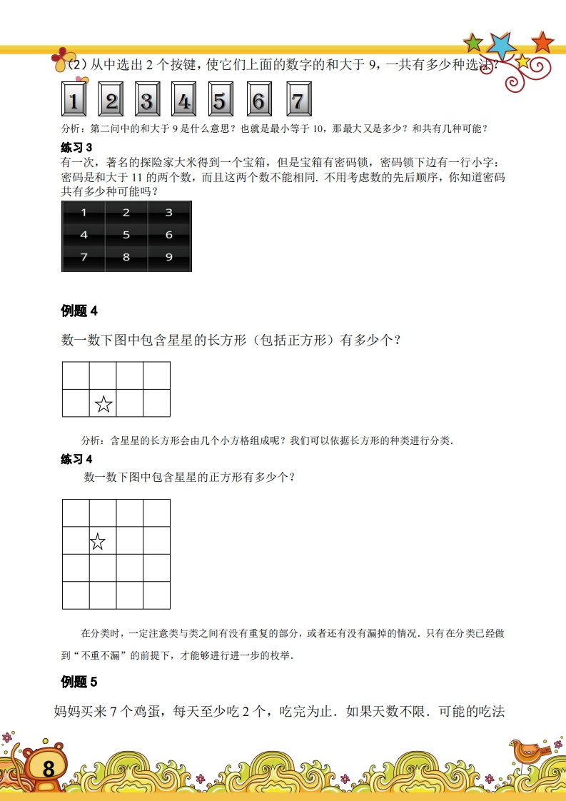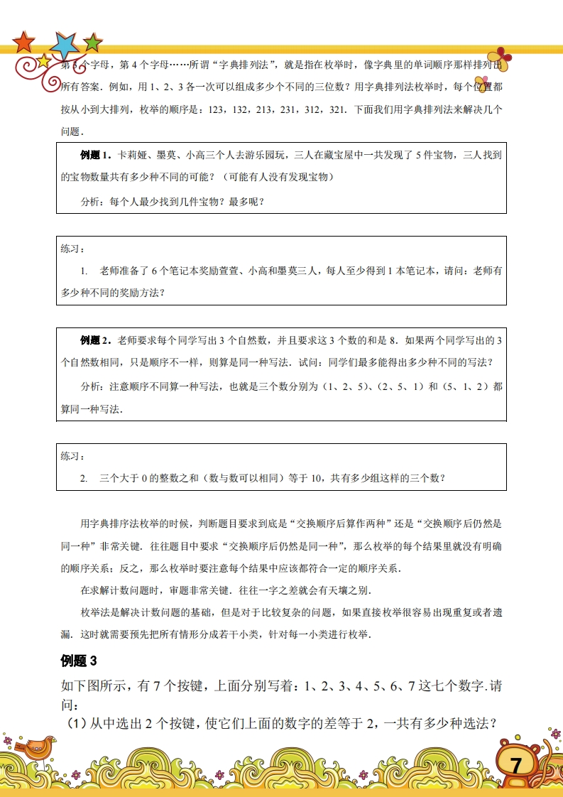 三年级奥数上第02讲-枚举法中的字典排列(带解析)芝士老师1年前发布关注私信1.49MB7页788225三年级奥数上第02讲-枚举法中的字典排列(带解析)此内容为付费资源,请付费后查看会员专属资源学期会员免费研学会员免费您暂无购买权限,请先开通会员开通会员强烈推荐123网盘下载,非会员不限速如果下载链接失效请联系客服补发如需手机上下载打印,请用手机浏览器打开本站付费资源 第1页 / 共7页 第2页 / 共7页 第3页 / 共7页 试读已结束,还剩4页,您可下载完整版后进行离线阅读 © 版权声明 1 如果您找不到想要的资料, 点击这儿 可以查看网站使用手册! 2 可能会帮助到你: 网址导航 | 网站入门 | 获取邀请码 3 如果遇到付费才能看或下载的文章,建议您升级本站VIP会员;全站所有资源任意下,免费看。 4本站资源部分来自网络,由多位老师收集整理,如有侵犯你的权益请 联系站长,我们会第一时间进行审核删除。 5 站内资源为网友个人学习或测试研究使用,未经原版权作者许可,禁止用于任何商业途径!请在下载24小时内删除! THE END小学奥数专题三年级资料专区# 奥数 这套资料真的不错,快分享给您身边最好的朋友吧^_^点赞225 分享QQ空间微博QQ好友海报分享复制链接收藏 可以按Ctrl+D收藏此页面 HI!请登录 登录 注册 搜索 开启精彩搜索 付费资源会员专属资源学期会员免费研学会员免费强烈推荐123网盘下载,非会员不限速如果下载链接失效请联系客服补发如需手机上下载打印,请用手机浏览器打开本站您暂无购买权限,请先开通会员开通会员默写 (12)高频考点 (1)高分必刷 (0)高中语文 (5)高中英语 (7)高中生物 (5)高中数学 (12)高中地理 (5)高中历史 (5)高中化学 (5)预习 (2)音标 (1)雷锋 (0)阅读 (0)阅兵 (5)钱 (6)量词 (3)部首 (1)逻辑 (12)通用 (0) 小吖麻麻关注 这家伙很懒,什么都没有写... s_juan1关注 这家伙很懒,什么都没有写... kele关注 这家伙很懒,什么都没有写... 燕子关注 这家伙很懒,什么都没有写... 四爷关注 这家伙很懒,什么都没有写... 小豆点sun关注 这家伙很懒,什么都没有写... Mouse Dad关注 这家伙很懒,什么都没有写... kuan关注 这家伙很懒,什么都没有写... 领取5000T网盘资源 百度网盘5000T网红资源 立即领取 在手机上浏览此页面 登录没有账号?立即注册手机号或邮箱图形验证码验证码发送验证码记住登录账号密码登录 登录用户名/手机号/邮箱登录密码图形验证码记住登录找回密码 | 免密登录 登录注册已有账号,立即登录设置用户名手机号图形验证码验证码发送验证码设置密码重复密码邀请码(选填)注册已阅读并同意用户协议、隐私声明