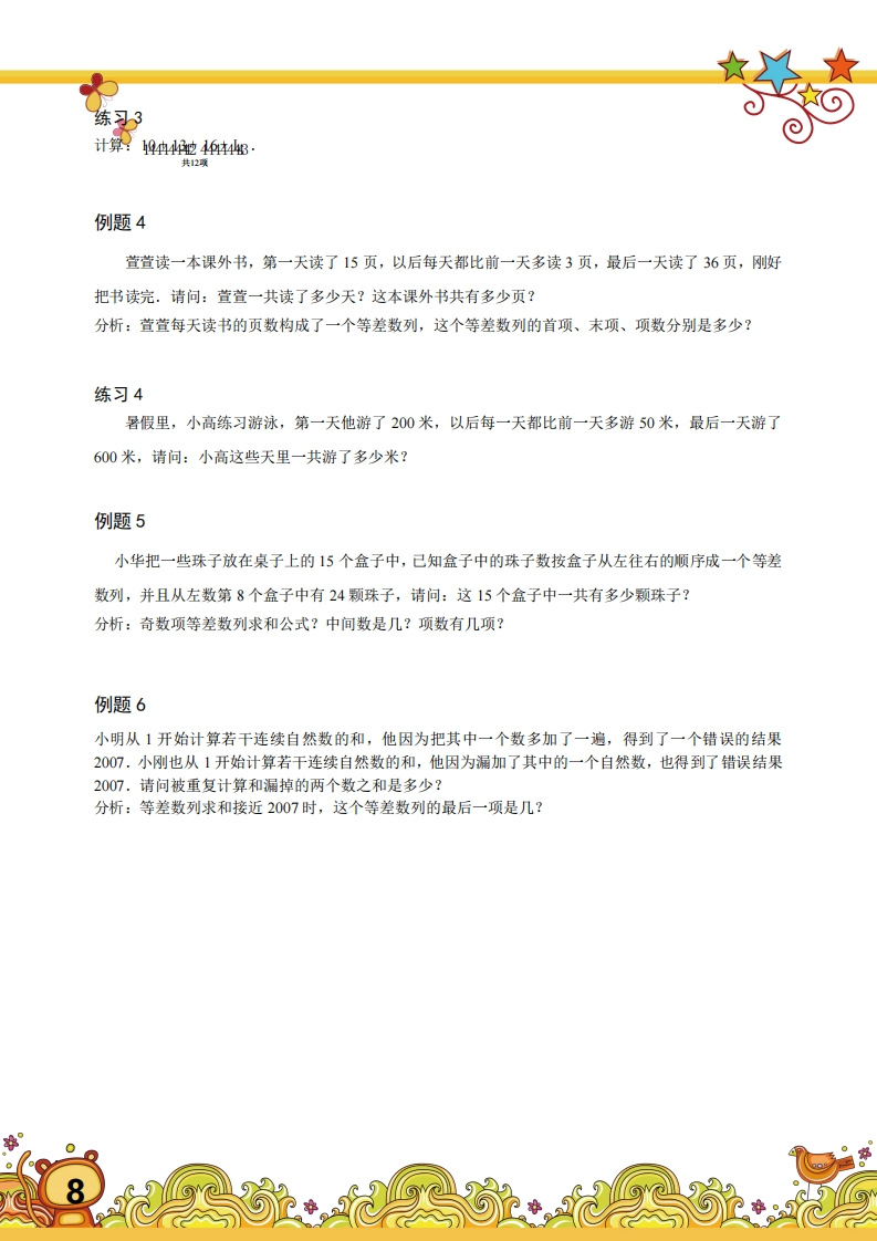 三年级奥数上第21讲-等差数列求和(带解析)芝士老师1年前发布关注私信0.86MB7页577198三年级奥数上第21讲-等差数列求和(带解析)此内容为付费资源,请付费后查看会员专属资源学期会员免费研学会员免费您暂无购买权限,请先开通会员开通会员强烈推荐123网盘下载,非会员不限速如果下载链接失效请联系客服补发如需手机上下载打印,请用手机浏览器打开本站付费资源 第1页 / 共7页 第2页 / 共7页 第3页 / 共7页 试读已结束,还剩4页,您可下载完整版后进行离线阅读 © 版权声明 1 如果您找不到想要的资料, 点击这儿 可以查看网站使用手册! 2 可能会帮助到你: 网址导航 | 网站入门 | 获取邀请码 3 如果遇到付费才能看或下载的文章,建议您升级本站VIP会员;全站所有资源任意下,免费看。 4本站资源部分来自网络,由多位老师收集整理,如有侵犯你的权益请 联系站长,我们会第一时间进行审核删除。 5 站内资源为网友个人学习或测试研究使用,未经原版权作者许可,禁止用于任何商业途径!请在下载24小时内删除! THE END小学奥数专题三年级资料专区# 奥数 这套资料真的不错,快分享给您身边最好的朋友吧^_^点赞198 分享QQ空间微博QQ好友海报分享复制链接收藏 可以按Ctrl+D收藏此页面 HI!请登录 登录 注册 搜索 开启精彩搜索 付费资源会员专属资源学期会员免费研学会员免费强烈推荐123网盘下载,非会员不限速如果下载链接失效请联系客服补发如需手机上下载打印,请用手机浏览器打开本站您暂无购买权限,请先开通会员开通会员默写 (12)高频考点 (1)高分必刷 (0)高中语文 (5)高中英语 (7)高中生物 (5)高中数学 (12)高中地理 (5)高中历史 (5)高中化学 (5)预习 (2)音标 (1)雷锋 (0)阅读 (0)阅兵 (5)钱 (6)量词 (3)部首 (1)逻辑 (12)通用 (0) s_juan1关注 这家伙很懒,什么都没有写... 小吖麻麻关注 这家伙很懒,什么都没有写... kele关注 这家伙很懒,什么都没有写... 燕子关注 这家伙很懒,什么都没有写... 四爷关注 这家伙很懒,什么都没有写... 小豆点sun关注 这家伙很懒,什么都没有写... Mouse Dad关注 这家伙很懒,什么都没有写... kuan关注 这家伙很懒,什么都没有写... 领取5000T网盘资源 百度网盘5000T网红资源 立即领取 在手机上浏览此页面 登录没有账号?立即注册手机号或邮箱图形验证码验证码发送验证码记住登录账号密码登录 登录用户名/手机号/邮箱登录密码图形验证码记住登录找回密码 | 免密登录 登录注册已有账号,立即登录设置用户名手机号图形验证码验证码发送验证码设置密码重复密码邀请码(选填)注册已阅读并同意用户协议、隐私声明
