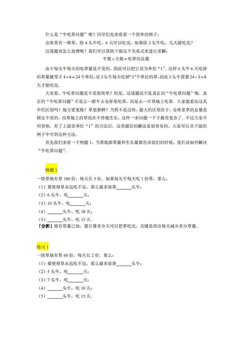 四年级奥数下第17讲-牛吃草问题(带解析)芝士老师1年前发布关注私信0.65MB11页686293四年级奥数下第17讲-牛吃草问题(带解析)此内容为付费资源,请付费后查看会员专属资源学期会员免费研学会员免费您暂无购买权限,请先开通会员开通会员强烈推荐123网盘下载,非会员不限速如果下载链接失效请联系客服补发如需手机上下载打印,请用手机浏览器打开本站付费资源 第1页 / 共11页 第2页 / 共11页 第3页 / 共11页 试读已结束,还剩8页,您可下载完整版后进行离线阅读 © 版权声明 1 如果您找不到想要的资料, 点击这儿 可以查看网站使用手册! 2 可能会帮助到你: 网址导航 | 网站入门 | 获取邀请码 3 如果遇到付费才能看或下载的文章,建议您升级本站VIP会员;全站所有资源任意下,免费看。 4本站资源部分来自网络,由多位老师收集整理,如有侵犯你的权益请 联系站长,我们会第一时间进行审核删除。 5 站内资源为网友个人学习或测试研究使用,未经原版权作者许可,禁止用于任何商业途径!请在下载24小时内删除! THE END小学奥数专题四年级资料专区# 奥数 这套资料真的不错,快分享给您身边最好的朋友吧^_^点赞293 分享QQ空间微博QQ好友海报分享复制链接收藏 可以按Ctrl+D收藏此页面 HI!请登录 登录 注册 搜索 开启精彩搜索 付费资源会员专属资源学期会员免费研学会员免费强烈推荐123网盘下载,非会员不限速如果下载链接失效请联系客服补发如需手机上下载打印,请用手机浏览器打开本站您暂无购买权限,请先开通会员开通会员默写 (12)高频考点 (1)高分必刷 (0)高中语文 (5)高中英语 (7)高中生物 (5)高中数学 (12)高中地理 (5)高中历史 (5)高中化学 (5)预习 (2)音标 (1)雷锋 (0)阅读 (0)阅兵 (5)钱 (6)量词 (3)部首 (1)逻辑 (12)通用 (0) s_juan1关注 这家伙很懒,什么都没有写... 小吖麻麻关注 这家伙很懒,什么都没有写... kele关注 这家伙很懒,什么都没有写... 燕子关注 这家伙很懒,什么都没有写... 四爷关注 这家伙很懒,什么都没有写... 小豆点sun关注 这家伙很懒,什么都没有写... Mouse Dad关注 这家伙很懒,什么都没有写... kuan关注 这家伙很懒,什么都没有写... 领取5000T网盘资源 百度网盘5000T网红资源 立即领取 在手机上浏览此页面 登录没有账号?立即注册手机号或邮箱图形验证码验证码发送验证码记住登录账号密码登录 登录用户名/手机号/邮箱登录密码图形验证码记住登录找回密码 | 免密登录 登录注册已有账号,立即登录设置用户名手机号图形验证码验证码发送验证码设置密码重复密码邀请码(选填)注册已阅读并同意用户协议、隐私声明