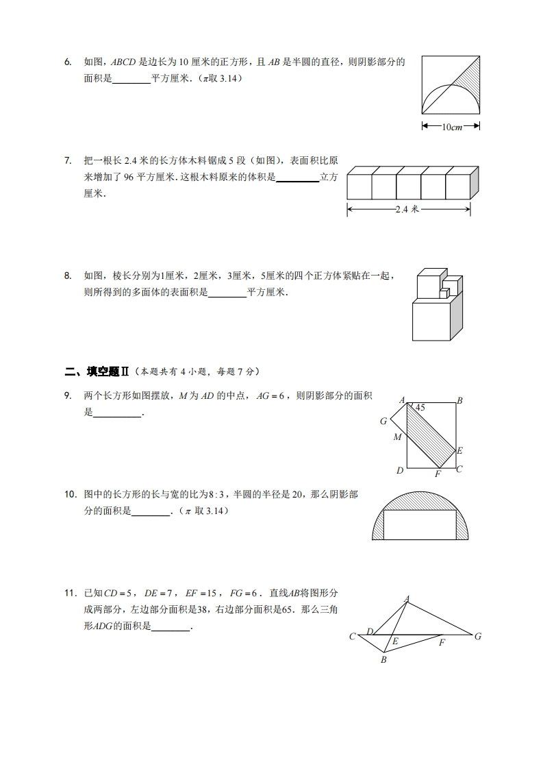 六年级奥数下第08讲-几何综合练习(带解析)芝士老师1年前发布关注私信0.43MB5页602216六年级奥数下第08讲-几何综合练习(带解析)此内容为付费资源,请付费后查看会员专属资源学期会员免费研学会员免费您暂无购买权限,请先开通会员开通会员强烈推荐123网盘下载,非会员不限速如果下载链接失效请联系客服补发如需手机上下载打印,请用手机浏览器打开本站付费资源 第1页 / 共5页 第2页 / 共5页 第3页 / 共5页 试读已结束,还剩2页,您可下载完整版后进行离线阅读 © 版权声明 1 如果您找不到想要的资料, 点击这儿 可以查看网站使用手册! 2 可能会帮助到你: 网址导航 | 网站入门 | 获取邀请码 3 如果遇到付费才能看或下载的文章,建议您升级本站VIP会员;全站所有资源任意下,免费看。 4本站资源部分来自网络,由多位老师收集整理,如有侵犯你的权益请 联系站长,我们会第一时间进行审核删除。 5 站内资源为网友个人学习或测试研究使用,未经原版权作者许可,禁止用于任何商业途径!请在下载24小时内删除! THE END小学奥数专题六年级资料专区# 奥数 这套资料真的不错,快分享给您身边最好的朋友吧^_^点赞216 分享QQ空间微博QQ好友海报分享复制链接收藏 可以按Ctrl+D收藏此页面 HI!请登录 登录 注册 搜索 开启精彩搜索 付费资源会员专属资源学期会员免费研学会员免费强烈推荐123网盘下载,非会员不限速如果下载链接失效请联系客服补发如需手机上下载打印,请用手机浏览器打开本站您暂无购买权限,请先开通会员开通会员默写 (12)高频考点 (1)高分必刷 (0)高中语文 (5)高中英语 (7)高中生物 (5)高中数学 (12)高中地理 (5)高中历史 (5)高中化学 (5)预习 (2)音标 (1)雷锋 (0)阅读 (0)阅兵 (5)钱 (6)量词 (3)部首 (1)逻辑 (12)通用 (0) 小吖麻麻关注 这家伙很懒,什么都没有写... kele关注 这家伙很懒,什么都没有写... 燕子关注 这家伙很懒,什么都没有写... 四爷关注 这家伙很懒,什么都没有写... 小豆点sun关注 这家伙很懒,什么都没有写... Mouse Dad关注 这家伙很懒,什么都没有写... kuan关注 这家伙很懒,什么都没有写... Wxx08关注 这家伙很懒,什么都没有写... 领取5000T网盘资源 百度网盘5000T网红资源 立即领取 在手机上浏览此页面 登录没有账号?立即注册手机号或邮箱图形验证码验证码发送验证码记住登录账号密码登录 登录用户名/手机号/邮箱登录密码图形验证码记住登录找回密码 | 免密登录 登录注册已有账号,立即登录设置用户名手机号图形验证码验证码发送验证码设置密码重复密码邀请码(选填)注册已阅读并同意用户协议、隐私声明