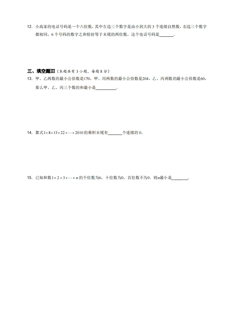 六年级奥数下第11讲-数论综合练习(带解析)芝士老师1年前发布关注私信0.33MB5页530207六年级奥数下第11讲-数论综合练习(带解析)此内容为付费资源,请付费后查看会员专属资源学期会员免费研学会员免费您暂无购买权限,请先开通会员开通会员强烈推荐123网盘下载,非会员不限速如果下载链接失效请联系客服补发如需手机上下载打印,请用手机浏览器打开本站付费资源 第1页 / 共5页 第2页 / 共5页 第3页 / 共5页 试读已结束,还剩2页,您可下载完整版后进行离线阅读 © 版权声明 1 如果您找不到想要的资料, 点击这儿 可以查看网站使用手册! 2 可能会帮助到你: 网址导航 | 网站入门 | 获取邀请码 3 如果遇到付费才能看或下载的文章,建议您升级本站VIP会员;全站所有资源任意下,免费看。 4本站资源部分来自网络,由多位老师收集整理,如有侵犯你的权益请 联系站长,我们会第一时间进行审核删除。 5 站内资源为网友个人学习或测试研究使用,未经原版权作者许可,禁止用于任何商业途径!请在下载24小时内删除! THE END小学奥数专题六年级资料专区# 奥数 这套资料真的不错,快分享给您身边最好的朋友吧^_^点赞207 分享QQ空间微博QQ好友海报分享复制链接收藏 可以按Ctrl+D收藏此页面 HI!请登录 登录 注册 搜索 开启精彩搜索 付费资源会员专属资源学期会员免费研学会员免费强烈推荐123网盘下载,非会员不限速如果下载链接失效请联系客服补发如需手机上下载打印,请用手机浏览器打开本站您暂无购买权限,请先开通会员开通会员默写 (12)高频考点 (1)高分必刷 (0)高中语文 (5)高中英语 (7)高中生物 (5)高中数学 (12)高中地理 (5)高中历史 (5)高中化学 (5)预习 (2)音标 (1)雷锋 (0)阅读 (0)阅兵 (5)钱 (6)量词 (3)部首 (1)逻辑 (12)通用 (0) 小吖麻麻关注 这家伙很懒,什么都没有写... kele关注 这家伙很懒,什么都没有写... 燕子关注 这家伙很懒,什么都没有写... 四爷关注 这家伙很懒,什么都没有写... 小豆点sun关注 这家伙很懒,什么都没有写... Mouse Dad关注 这家伙很懒,什么都没有写... kuan关注 这家伙很懒,什么都没有写... Wxx08关注 这家伙很懒,什么都没有写... 领取5000T网盘资源 百度网盘5000T网红资源 立即领取 在手机上浏览此页面 登录没有账号?立即注册手机号或邮箱图形验证码验证码发送验证码记住登录账号密码登录 登录用户名/手机号/邮箱登录密码图形验证码记住登录找回密码 | 免密登录 登录注册已有账号,立即登录设置用户名手机号图形验证码验证码发送验证码设置密码重复密码邀请码(选填)注册已阅读并同意用户协议、隐私声明