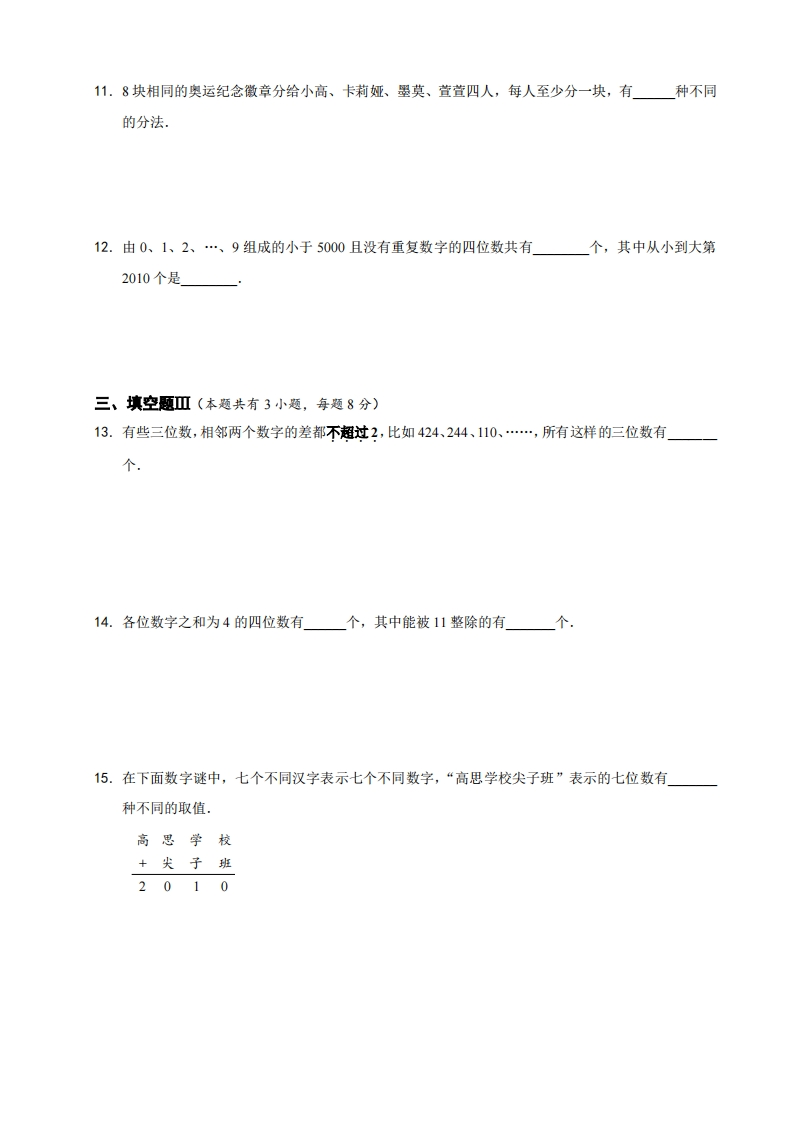 六年级奥数下第12讲-计数综合练习(带解析)芝士老师1年前发布关注私信0.37MB5页706195六年级奥数下第12讲-计数综合练习(带解析)此内容为付费资源,请付费后查看会员专属资源学期会员免费研学会员免费您暂无购买权限,请先开通会员开通会员强烈推荐123网盘下载,非会员不限速如果下载链接失效请联系客服补发如需手机上下载打印,请用手机浏览器打开本站付费资源 第1页 / 共5页 第2页 / 共5页 第3页 / 共5页 试读已结束,还剩2页,您可下载完整版后进行离线阅读 © 版权声明 1 如果您找不到想要的资料, 点击这儿 可以查看网站使用手册! 2 可能会帮助到你: 网址导航 | 网站入门 | 获取邀请码 3 如果遇到付费才能看或下载的文章,建议您升级本站VIP会员;全站所有资源任意下,免费看。 4本站资源部分来自网络,由多位老师收集整理,如有侵犯你的权益请 联系站长,我们会第一时间进行审核删除。 5 站内资源为网友个人学习或测试研究使用,未经原版权作者许可,禁止用于任何商业途径!请在下载24小时内删除! THE END小学奥数专题六年级资料专区# 奥数 这套资料真的不错,快分享给您身边最好的朋友吧^_^点赞195 分享QQ空间微博QQ好友海报分享复制链接收藏 可以按Ctrl+D收藏此页面 HI!请登录 登录 注册 搜索 开启精彩搜索 付费资源会员专属资源学期会员免费研学会员免费强烈推荐123网盘下载,非会员不限速如果下载链接失效请联系客服补发如需手机上下载打印,请用手机浏览器打开本站您暂无购买权限,请先开通会员开通会员默写 (12)高频考点 (1)高分必刷 (0)高中语文 (5)高中英语 (7)高中生物 (5)高中数学 (12)高中地理 (5)高中历史 (5)高中化学 (5)预习 (2)音标 (1)雷锋 (0)阅读 (0)阅兵 (5)钱 (6)量词 (3)部首 (1)逻辑 (12)通用 (0) 小吖麻麻关注 这家伙很懒,什么都没有写... kele关注 这家伙很懒,什么都没有写... 燕子关注 这家伙很懒,什么都没有写... 四爷关注 这家伙很懒,什么都没有写... 小豆点sun关注 这家伙很懒,什么都没有写... Mouse Dad关注 这家伙很懒,什么都没有写... kuan关注 这家伙很懒,什么都没有写... Wxx08关注 这家伙很懒,什么都没有写... 领取5000T网盘资源 百度网盘5000T网红资源 立即领取 在手机上浏览此页面 登录没有账号?立即注册手机号或邮箱图形验证码验证码发送验证码记住登录账号密码登录 登录用户名/手机号/邮箱登录密码图形验证码记住登录找回密码 | 免密登录 登录注册已有账号,立即登录设置用户名手机号图形验证码验证码发送验证码设置密码重复密码邀请码(选填)注册已阅读并同意用户协议、隐私声明