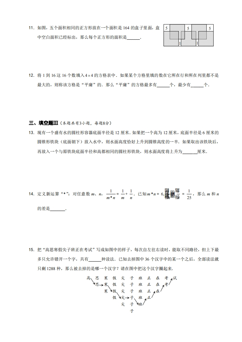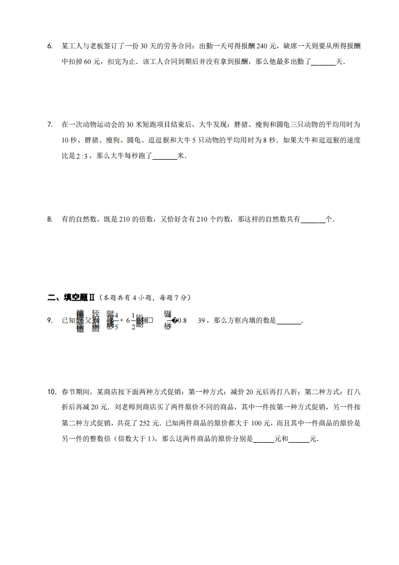 六年级奥数下第17讲-小升初总复习模拟测试四(带解析)芝士老师1年前发布关注私信0.45MB5页607234六年级奥数下第17讲-小升初总复习模拟测试四(带解析)此内容为付费资源,请付费后查看会员专属资源学期会员免费研学会员免费您暂无购买权限,请先开通会员开通会员强烈推荐123网盘下载,非会员不限速如果下载链接失效请联系客服补发如需手机上下载打印,请用手机浏览器打开本站付费资源 第1页 / 共5页 第2页 / 共5页 第3页 / 共5页 试读已结束,还剩2页,您可下载完整版后进行离线阅读 © 版权声明 1 如果您找不到想要的资料, 点击这儿 可以查看网站使用手册! 2 可能会帮助到你: 网址导航 | 网站入门 | 获取邀请码 3 如果遇到付费才能看或下载的文章,建议您升级本站VIP会员;全站所有资源任意下,免费看。 4本站资源部分来自网络,由多位老师收集整理,如有侵犯你的权益请 联系站长,我们会第一时间进行审核删除。 5 站内资源为网友个人学习或测试研究使用,未经原版权作者许可,禁止用于任何商业途径!请在下载24小时内删除! THE END小学奥数专题六年级资料专区# 奥数 这套资料真的不错,快分享给您身边最好的朋友吧^_^点赞234 分享QQ空间微博QQ好友海报分享复制链接收藏 可以按Ctrl+D收藏此页面 HI!请登录 登录 注册 搜索 开启精彩搜索 付费资源会员专属资源学期会员免费研学会员免费强烈推荐123网盘下载,非会员不限速如果下载链接失效请联系客服补发如需手机上下载打印,请用手机浏览器打开本站您暂无购买权限,请先开通会员开通会员默写 (12)高频考点 (1)高分必刷 (0)高中语文 (5)高中英语 (7)高中生物 (5)高中数学 (12)高中地理 (5)高中历史 (5)高中化学 (5)预习 (2)音标 (1)雷锋 (0)阅读 (0)阅兵 (5)钱 (6)量词 (3)部首 (1)逻辑 (12)通用 (0) 小吖麻麻关注 这家伙很懒,什么都没有写... kele关注 这家伙很懒,什么都没有写... 燕子关注 这家伙很懒,什么都没有写... 四爷关注 这家伙很懒,什么都没有写... 小豆点sun关注 这家伙很懒,什么都没有写... Mouse Dad关注 这家伙很懒,什么都没有写... kuan关注 这家伙很懒,什么都没有写... Wxx08关注 这家伙很懒,什么都没有写... 领取5000T网盘资源 百度网盘5000T网红资源 立即领取 在手机上浏览此页面 登录没有账号?立即注册手机号或邮箱图形验证码验证码发送验证码记住登录账号密码登录 登录用户名/手机号/邮箱登录密码图形验证码记住登录找回密码 | 免密登录 登录注册已有账号,立即登录设置用户名手机号图形验证码验证码发送验证码设置密码重复密码邀请码(选填)注册已阅读并同意用户协议、隐私声明